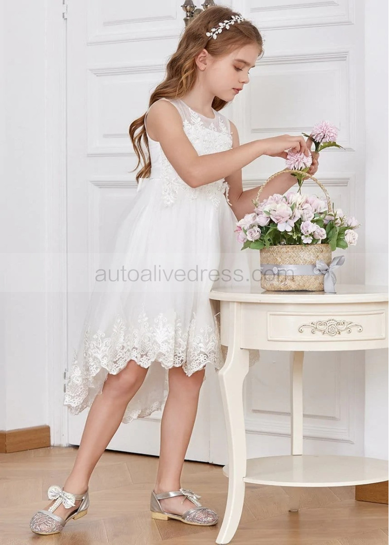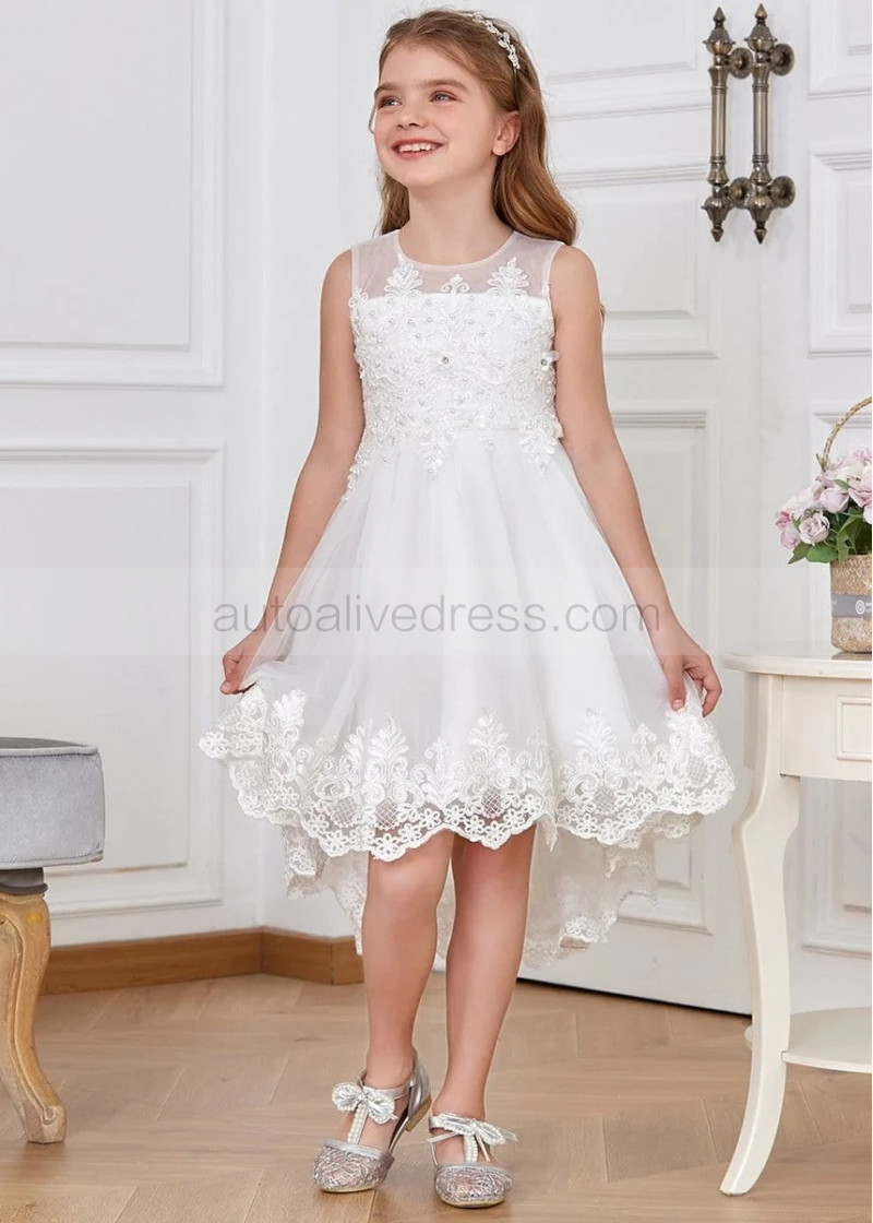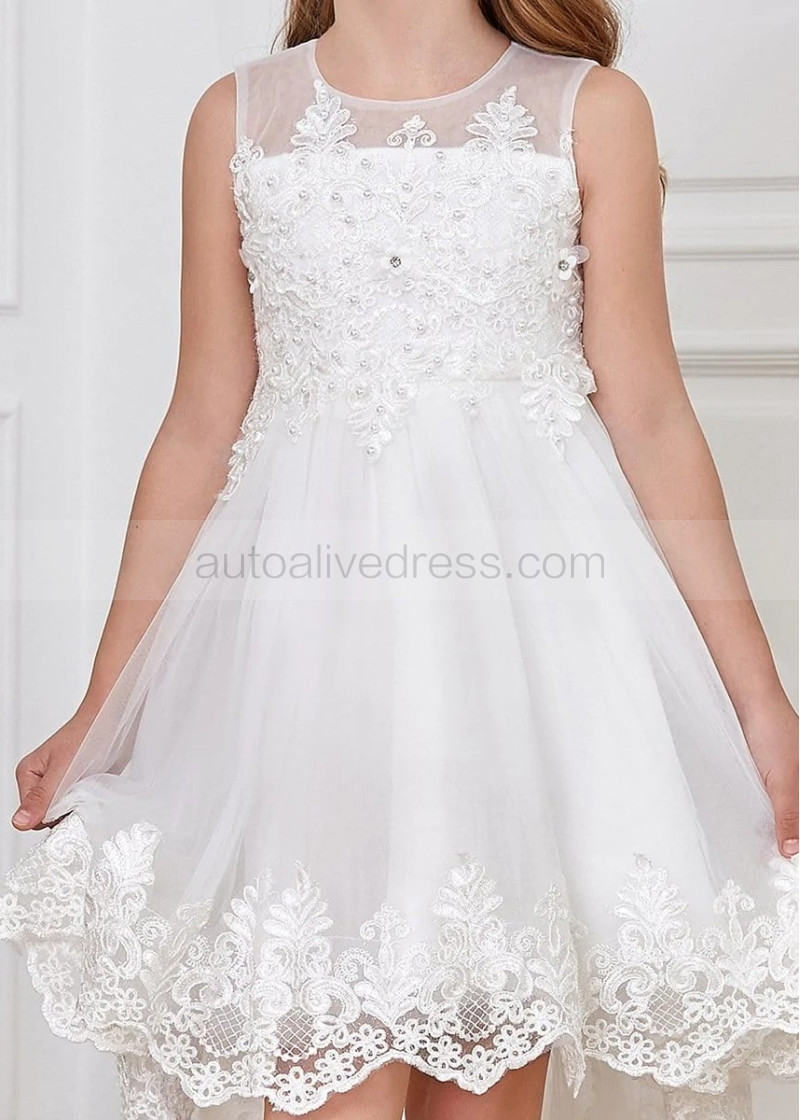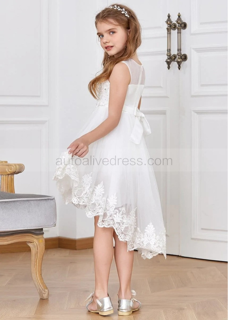 Ivory Beaded Lace Tulle High Low Popular Flower Girl Dress
