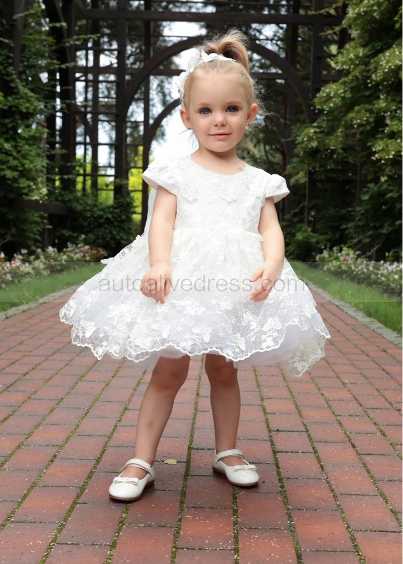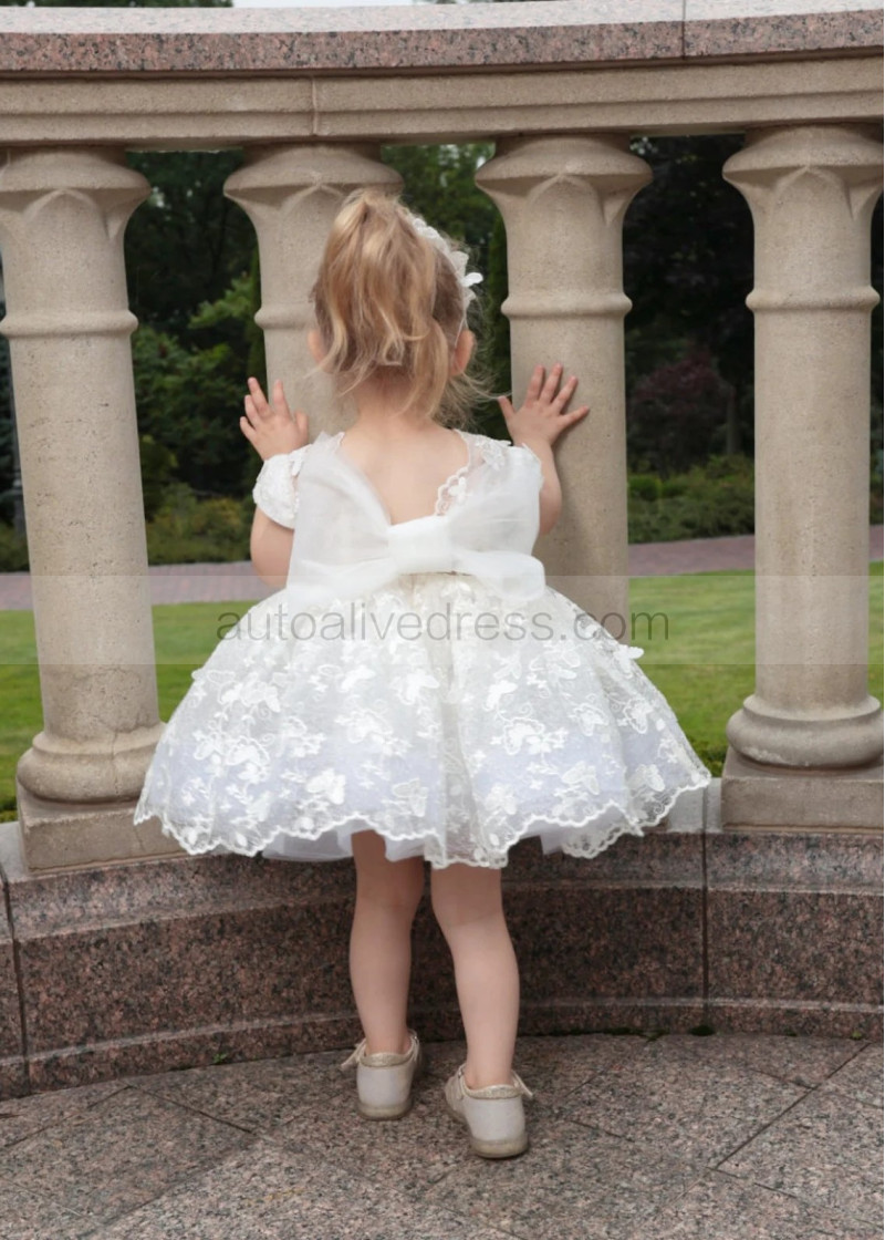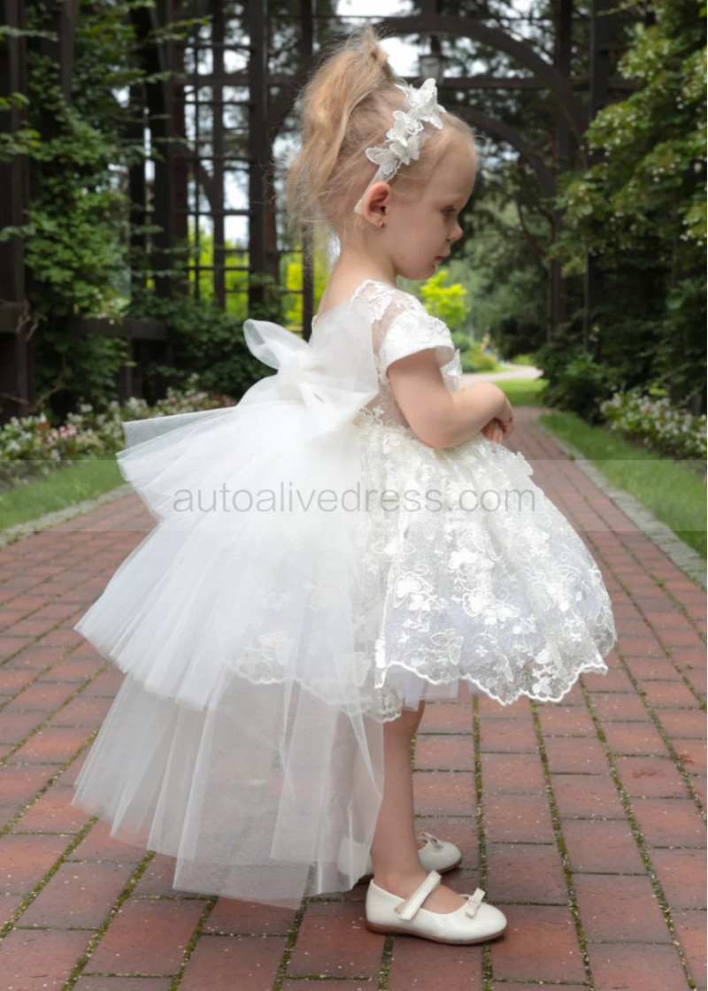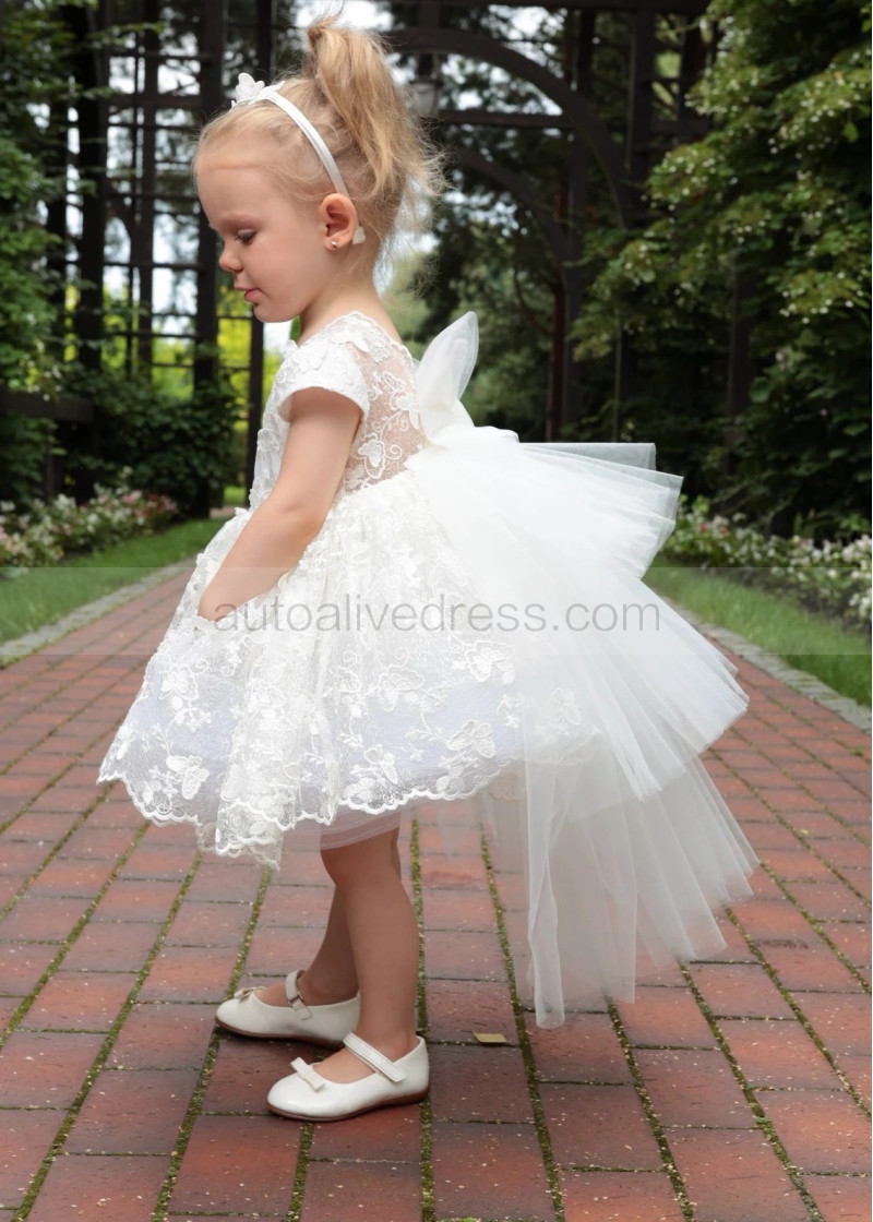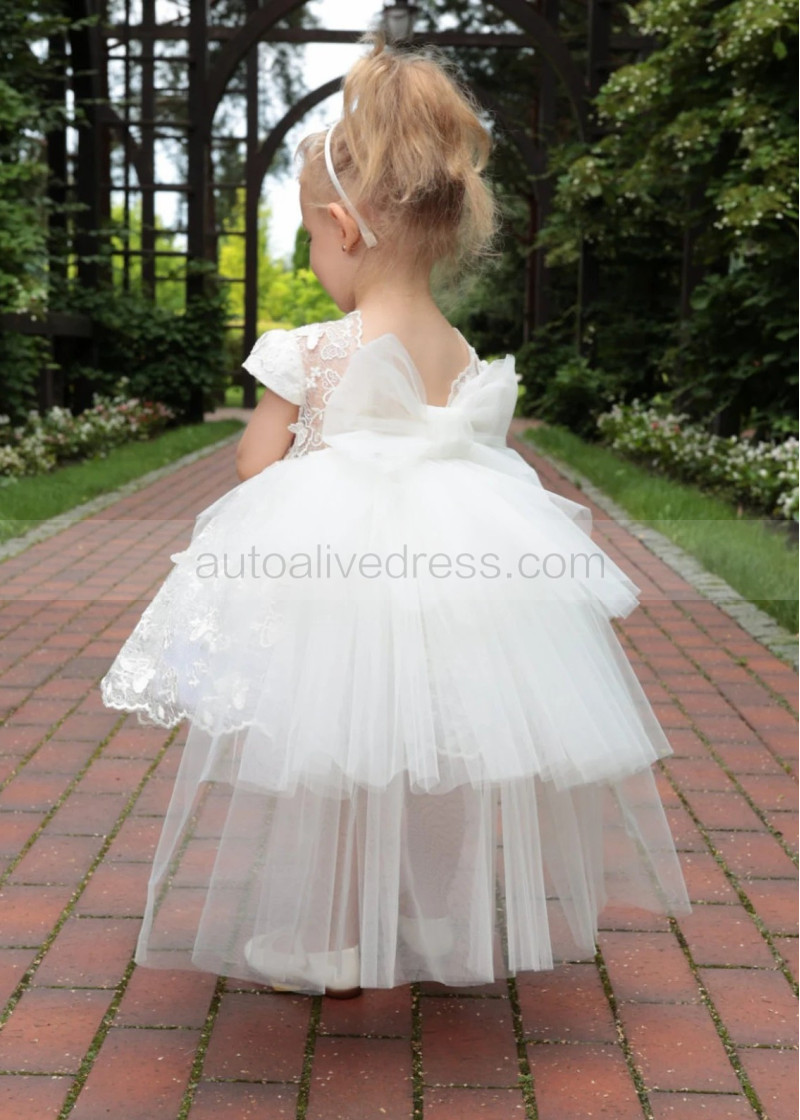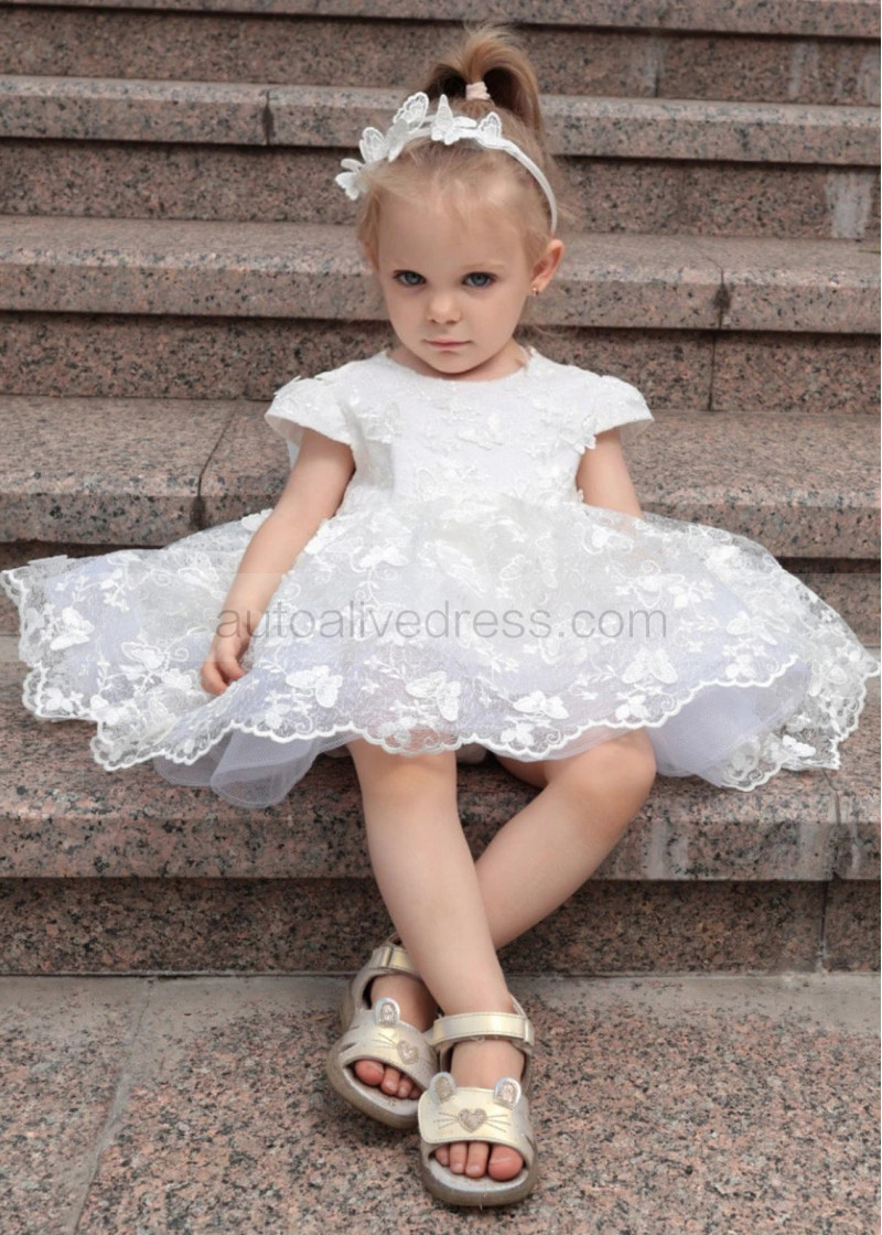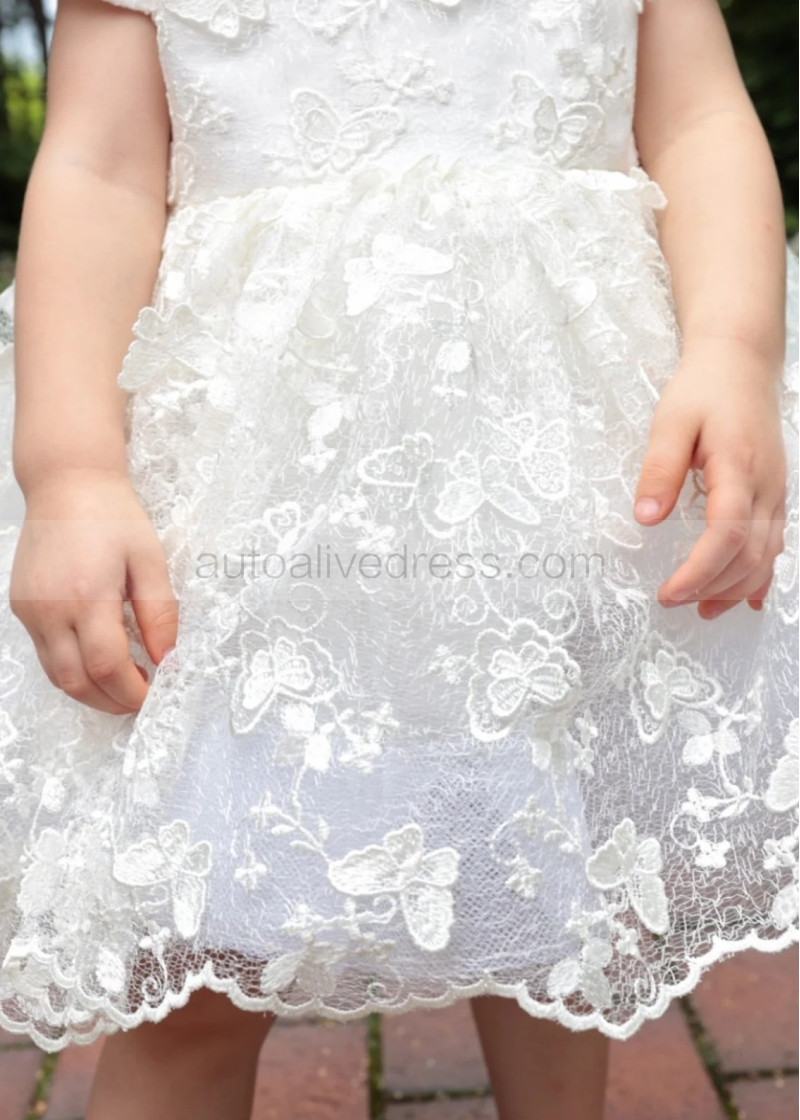 Ivory Butterfly Lace Tulle Flower Girl Dress With Removable Train