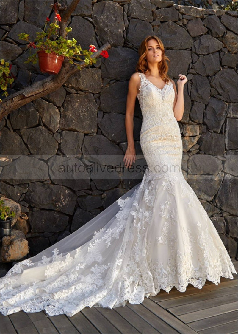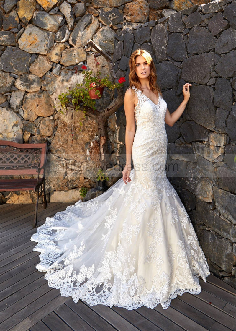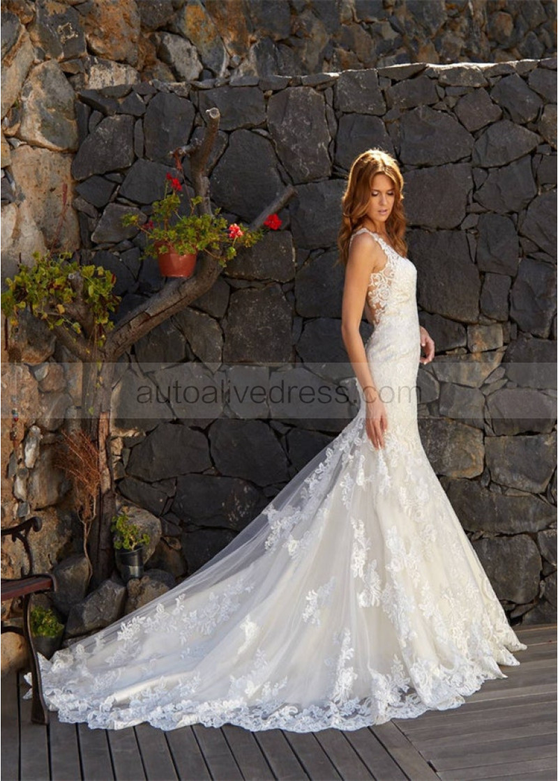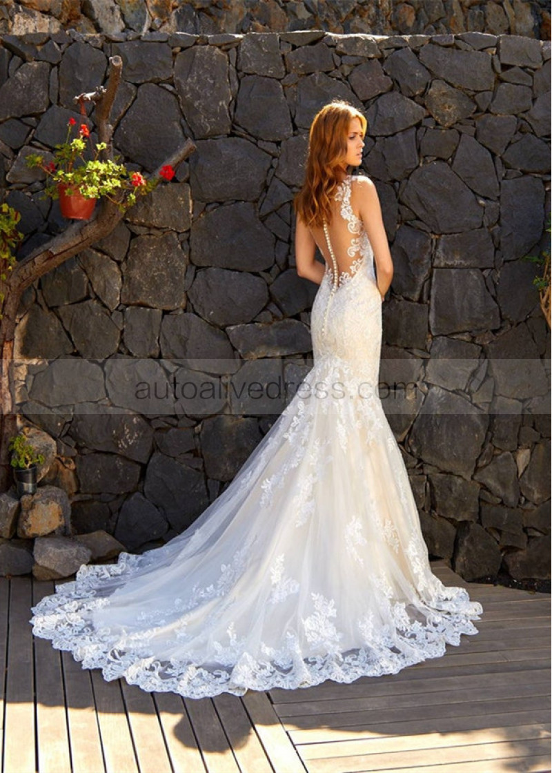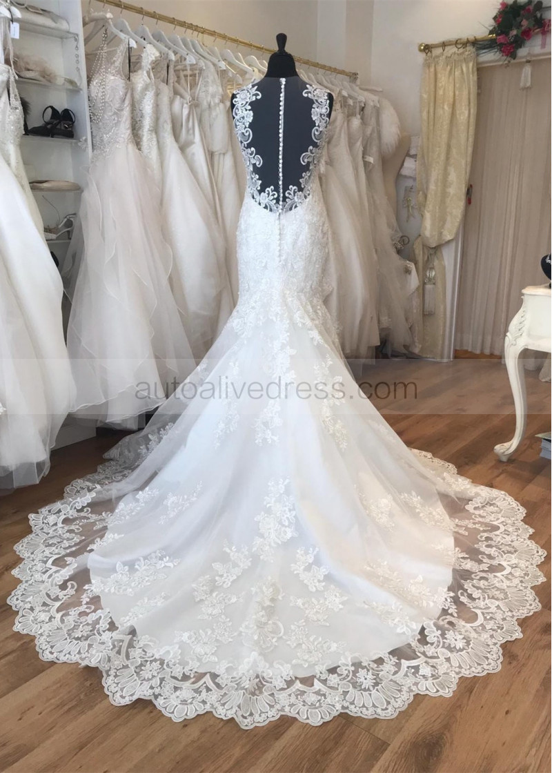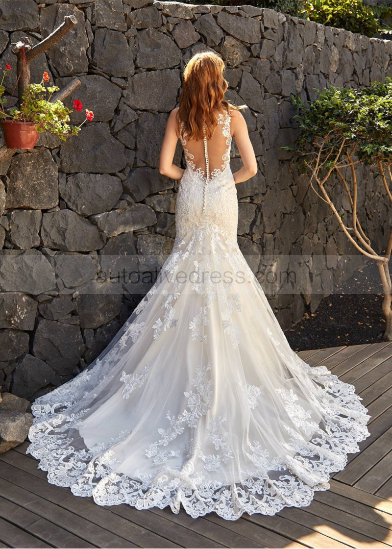Ivory Buttons Back Lace Tulle Elegant Wedding Dress