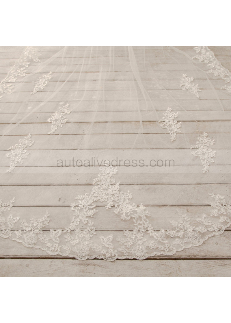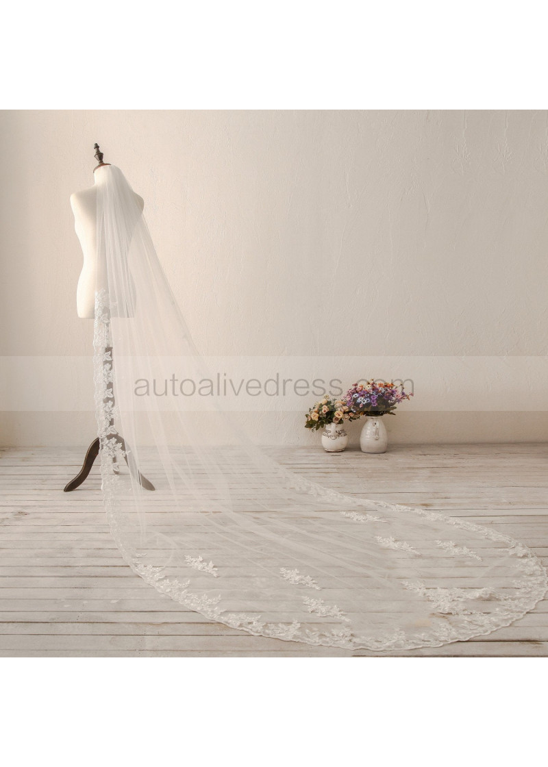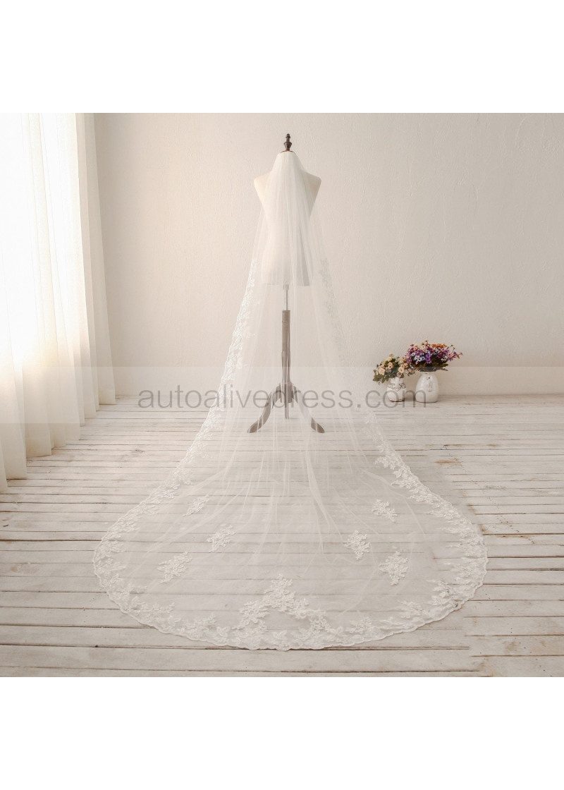 Ivory Cathedral Wedding Veil Fashion Lace Long Bridal Veil
