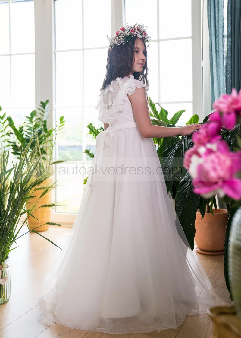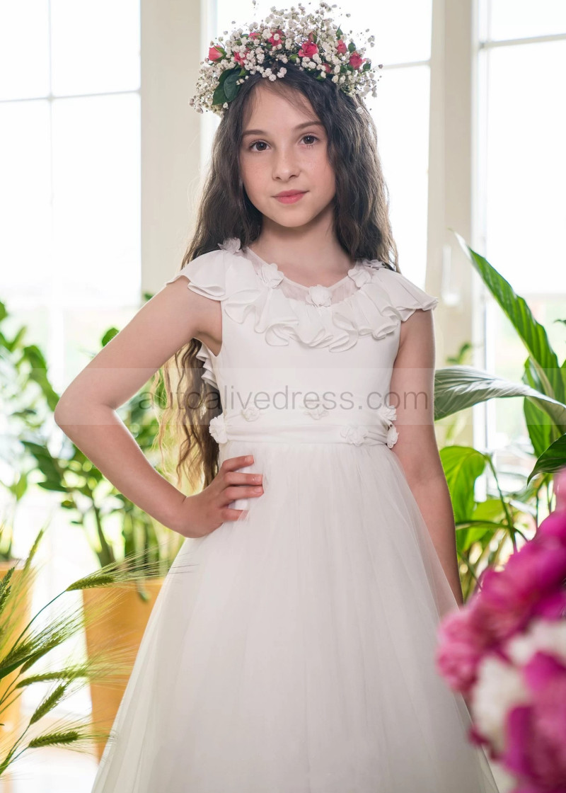 Ivory Chiffon Tulle 3D Flowers Sweet Flower Girl Dress