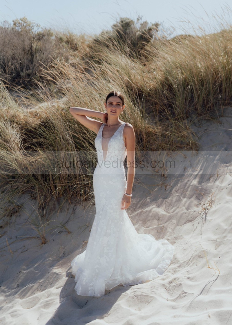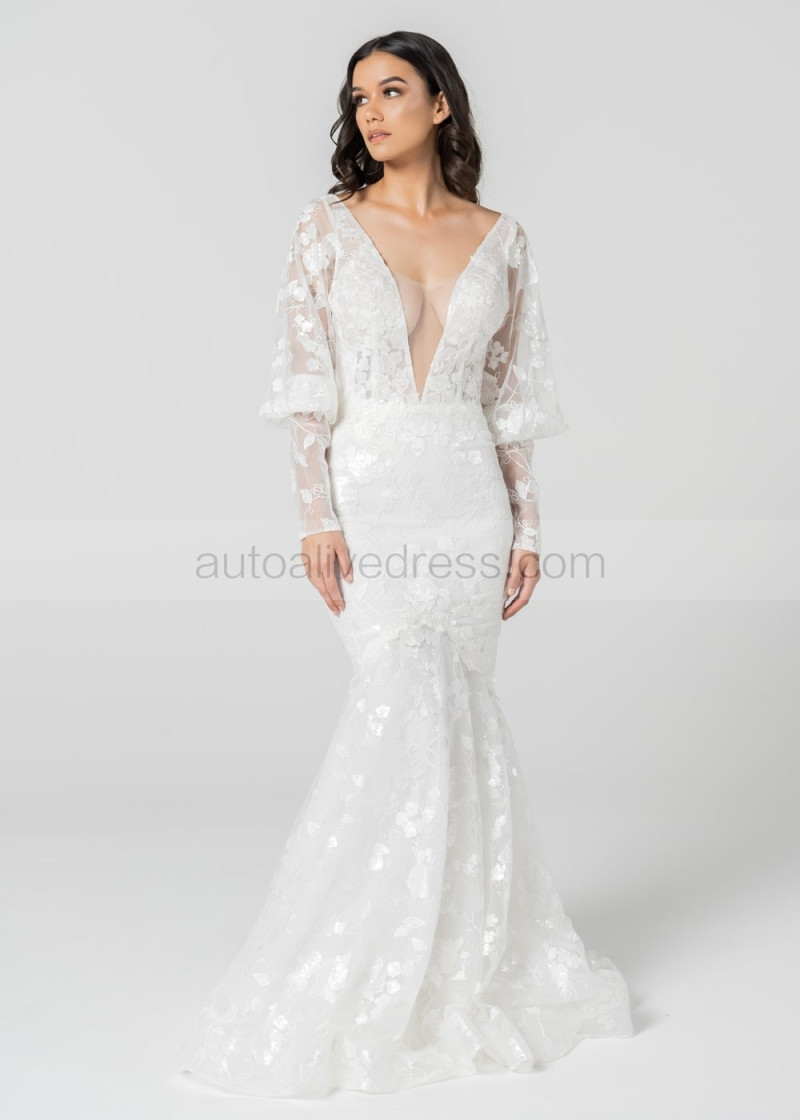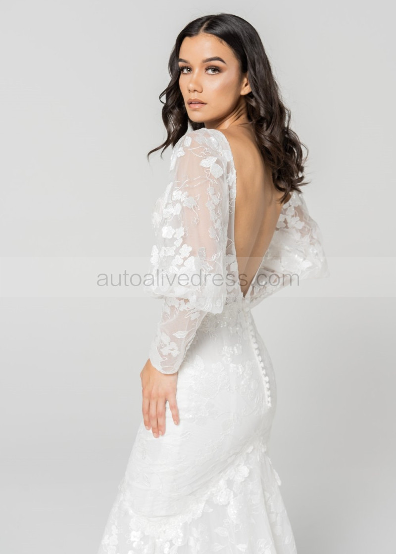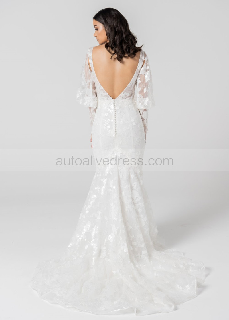 Ivory Delicate Lace Tulle Wedding Dress With Detachable Sleeves