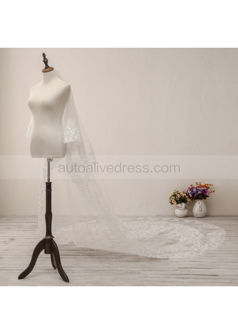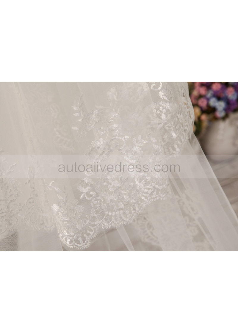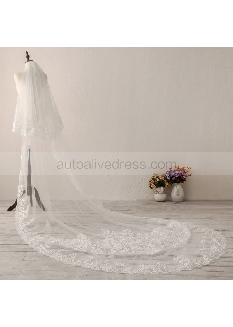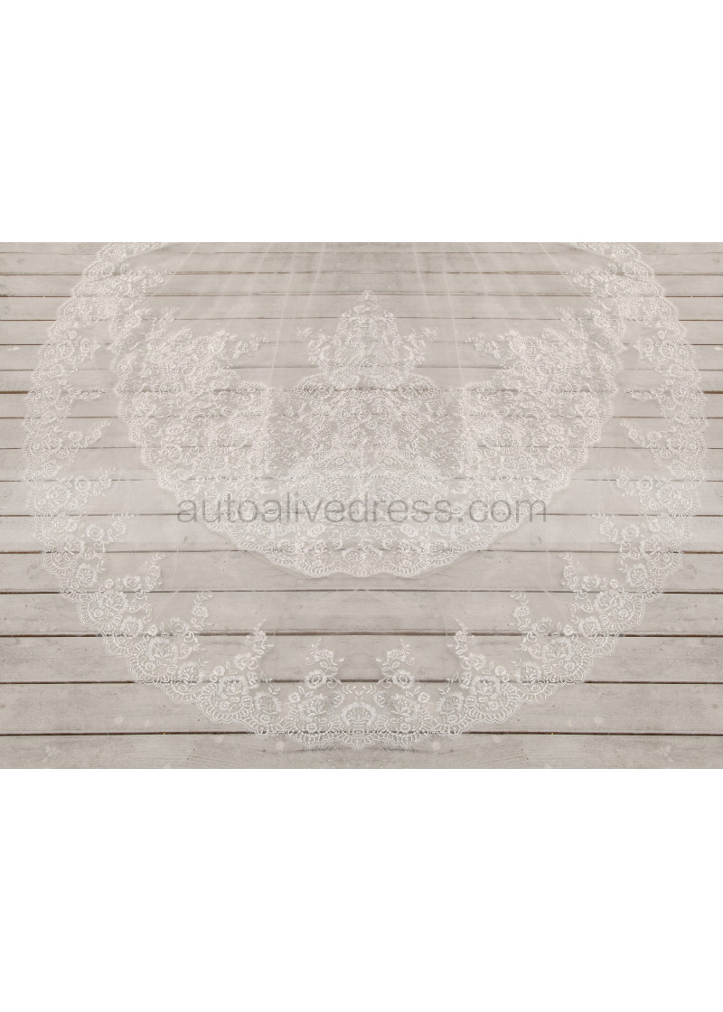 Ivory Fairy Lace Cathedral Wedding Veil Two Tier Bridal Veil