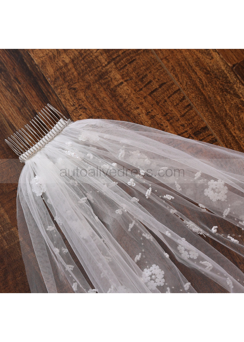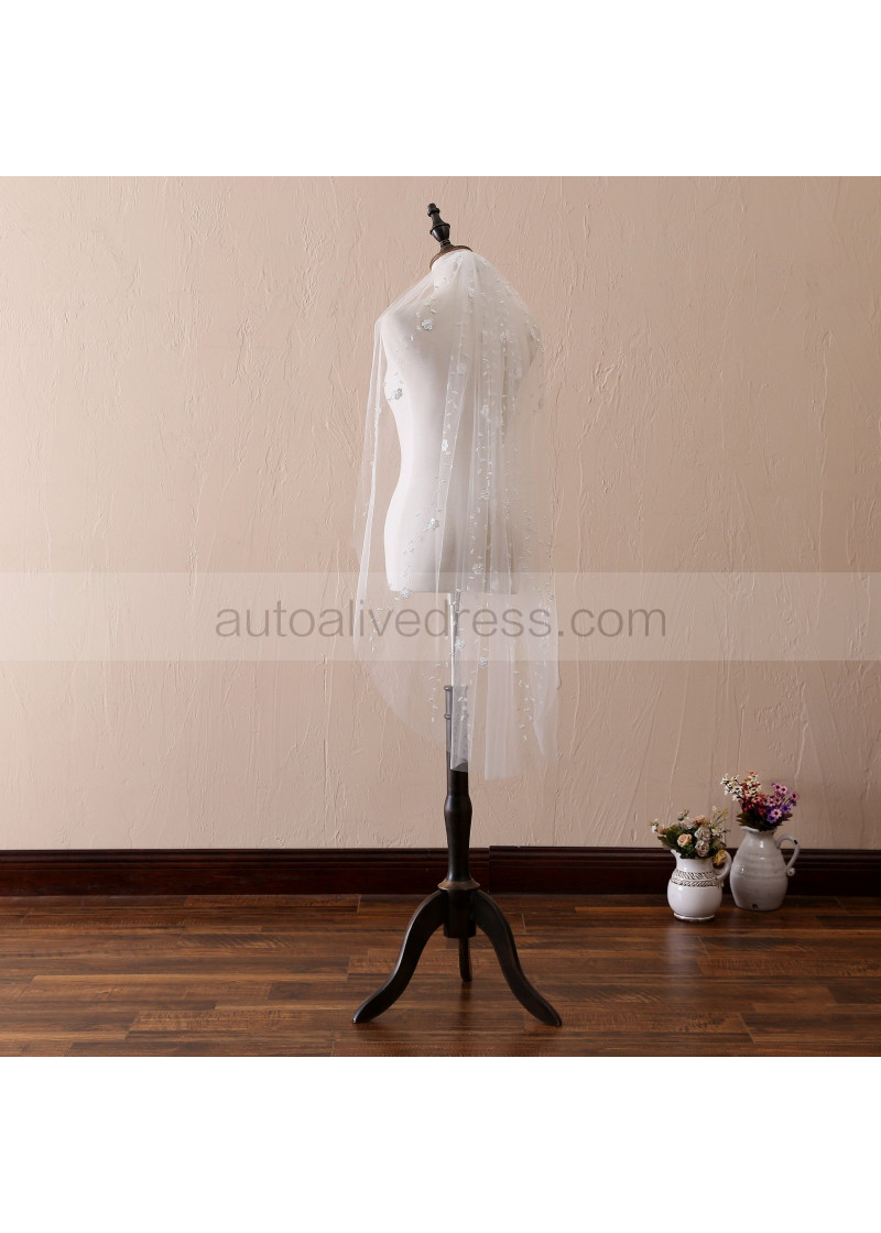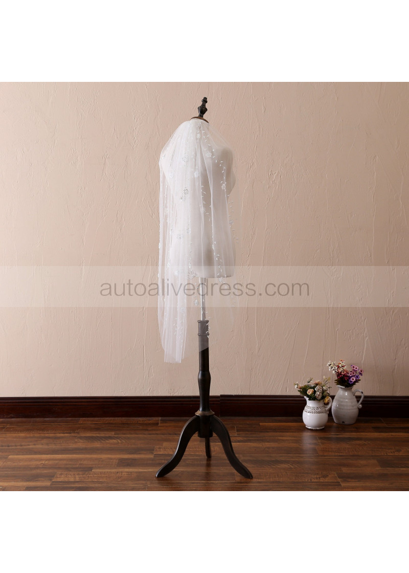 Ivory Floral Trailing Beaded Fingertip Wedding Veil