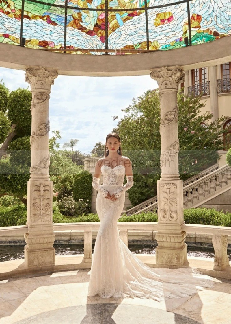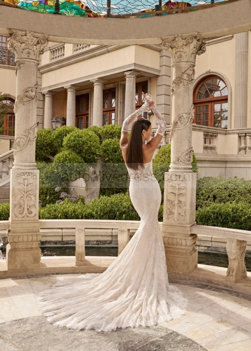 Ivory French Lace Tulle Romantic Wedding Dress With Removable Sleeves