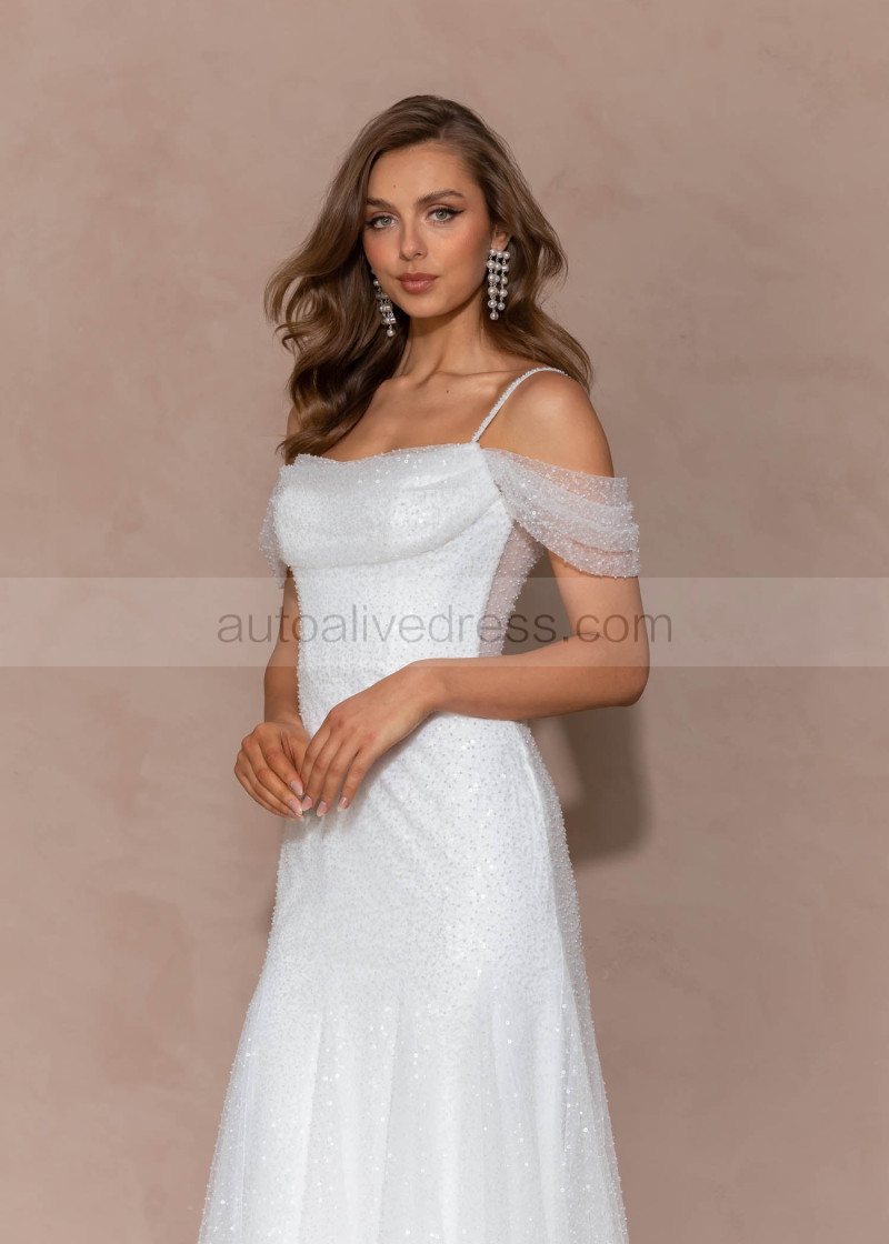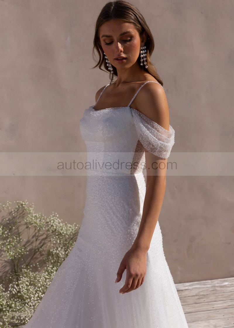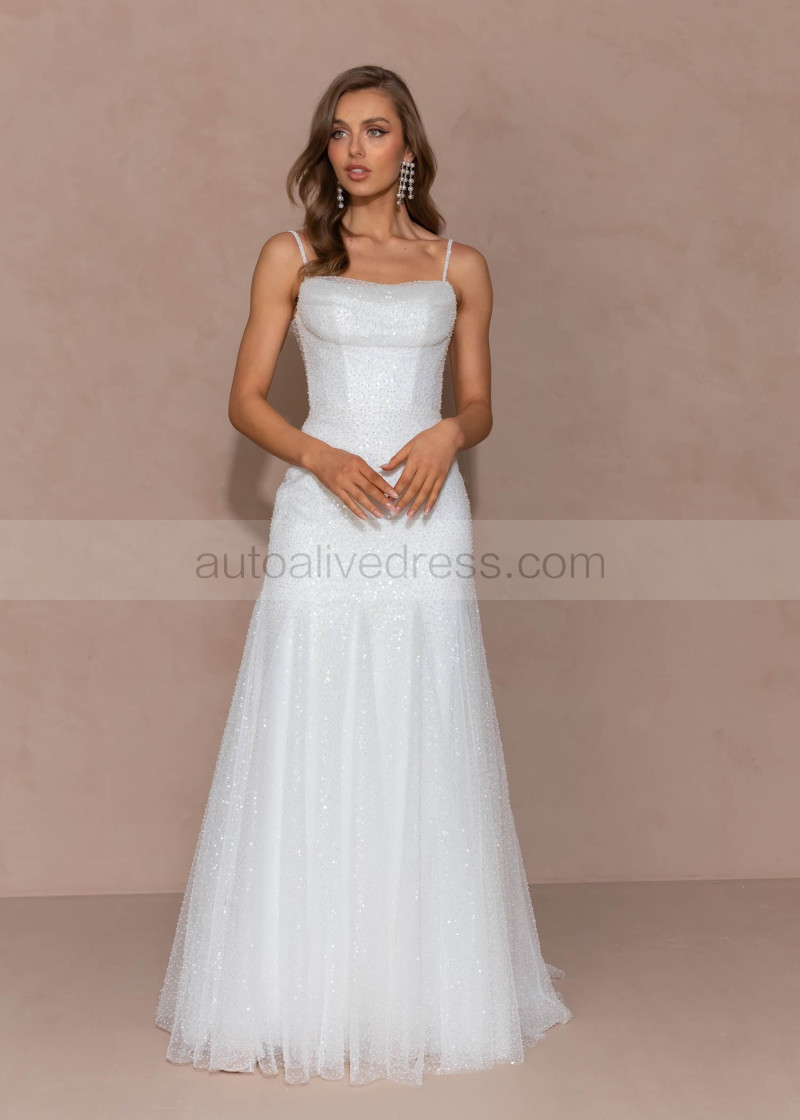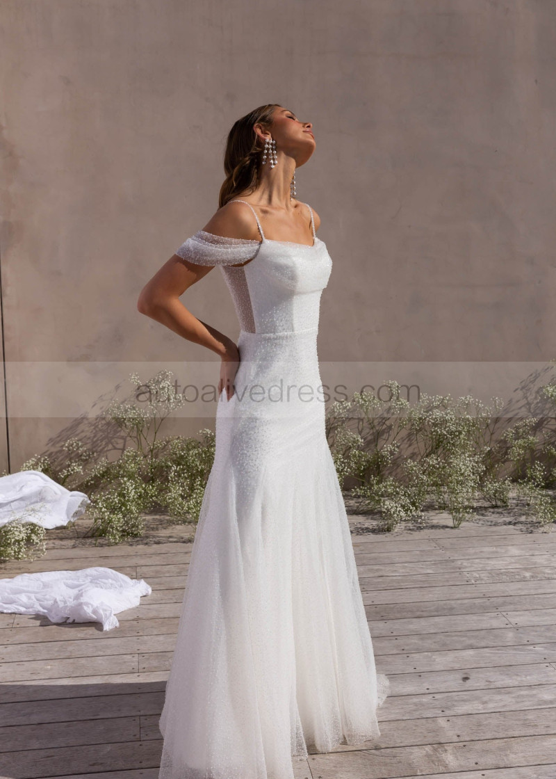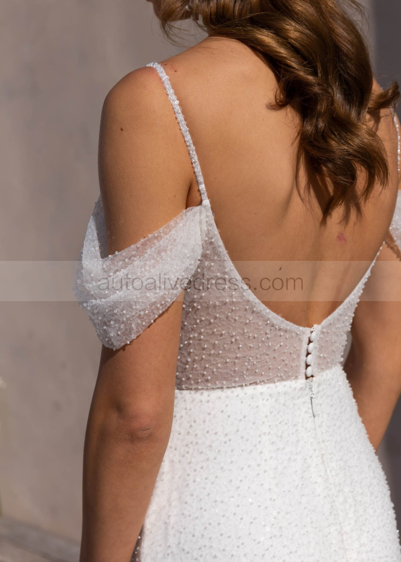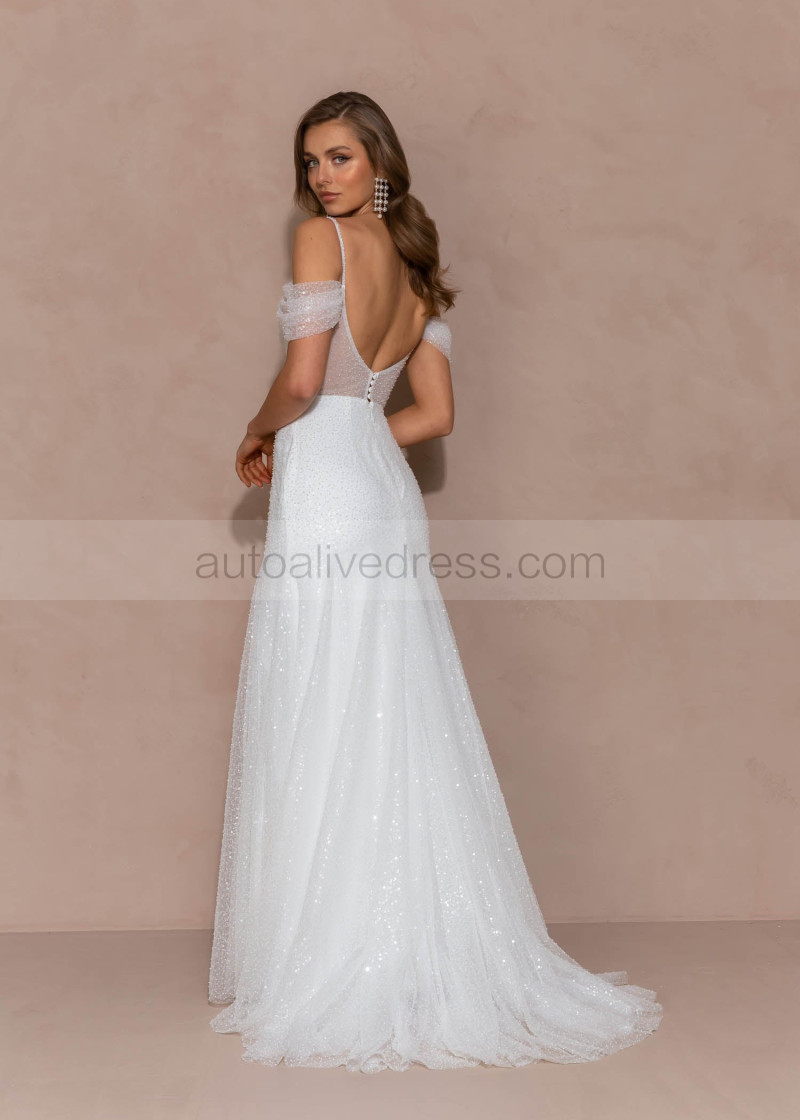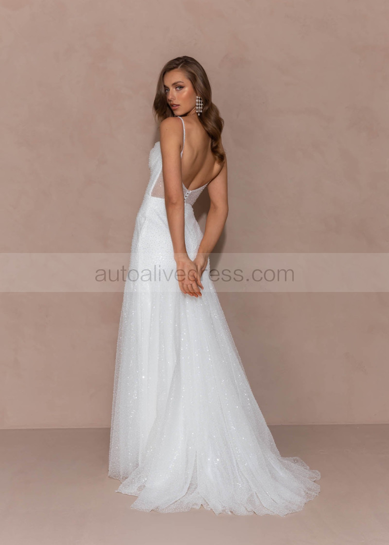 Ivory Glitter Lace V Back Wedding Dress With Detachable Straps