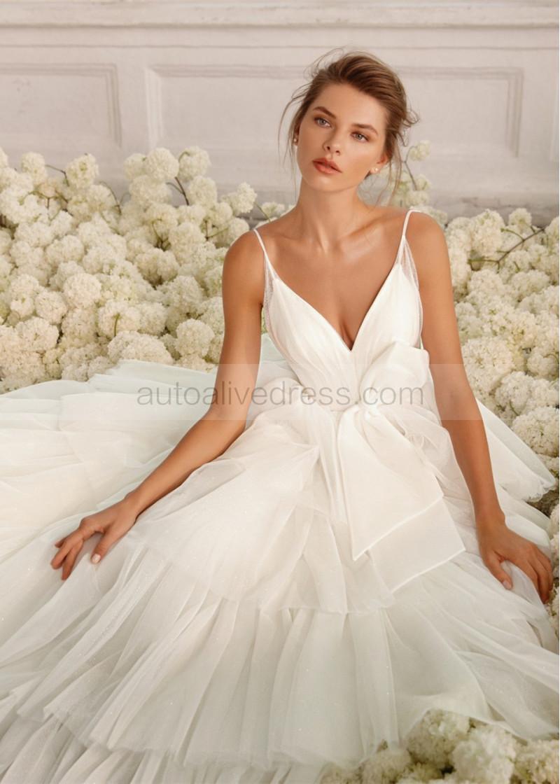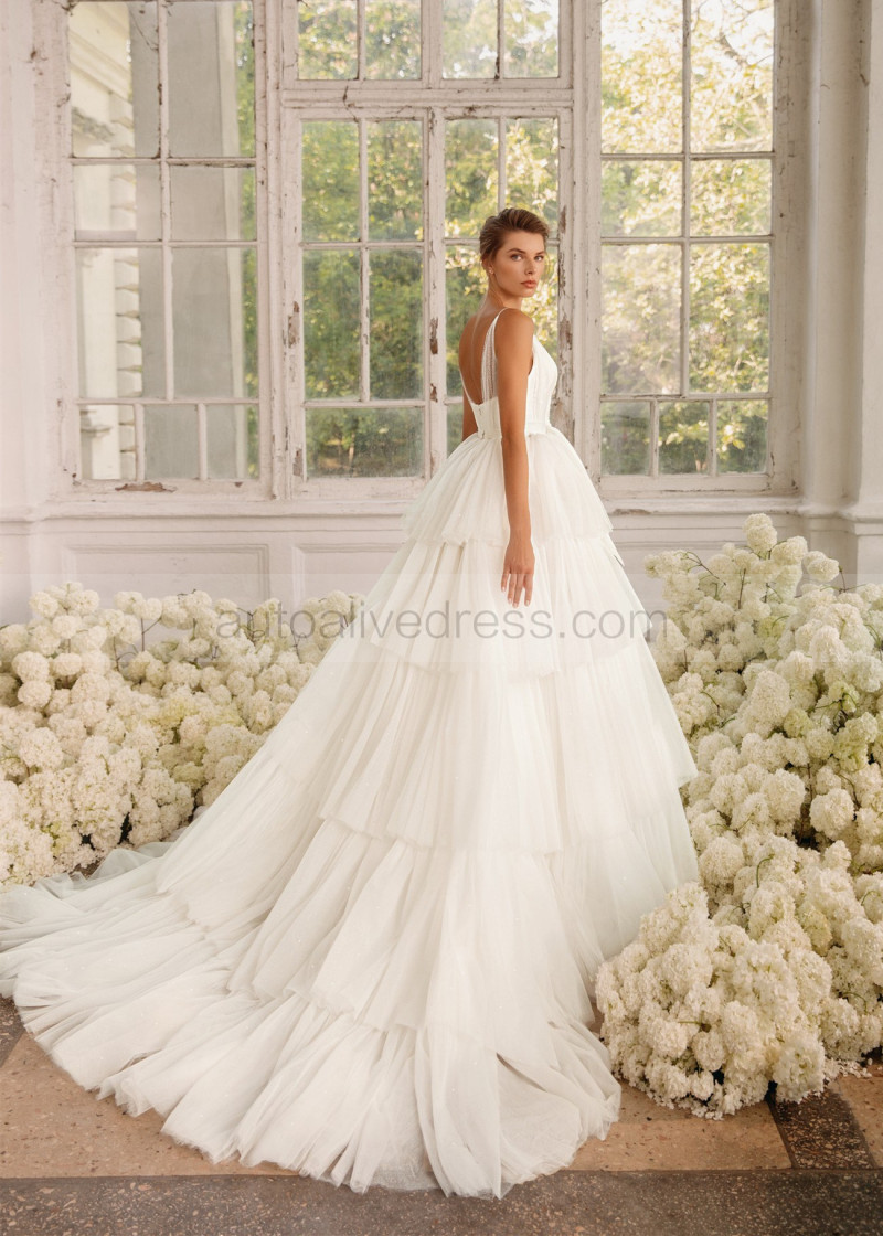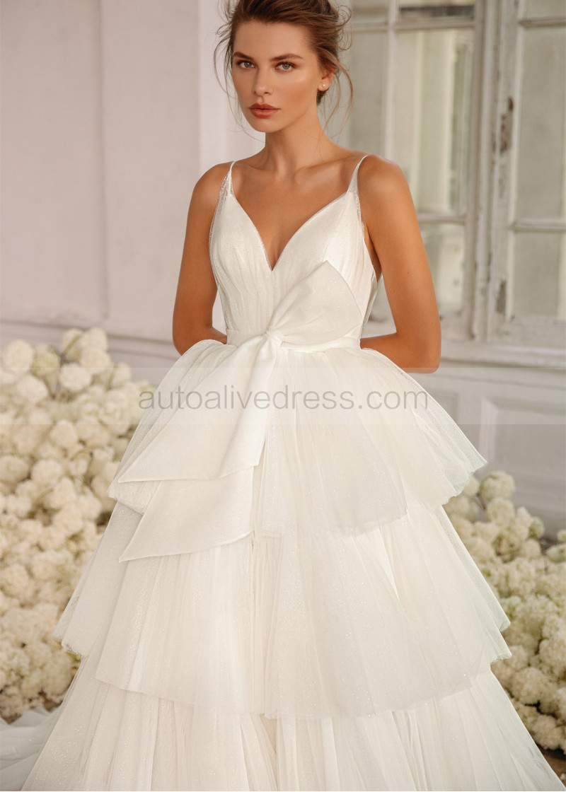 Ivory Glitter Tulle Ruffle Elegant Wedding Dress