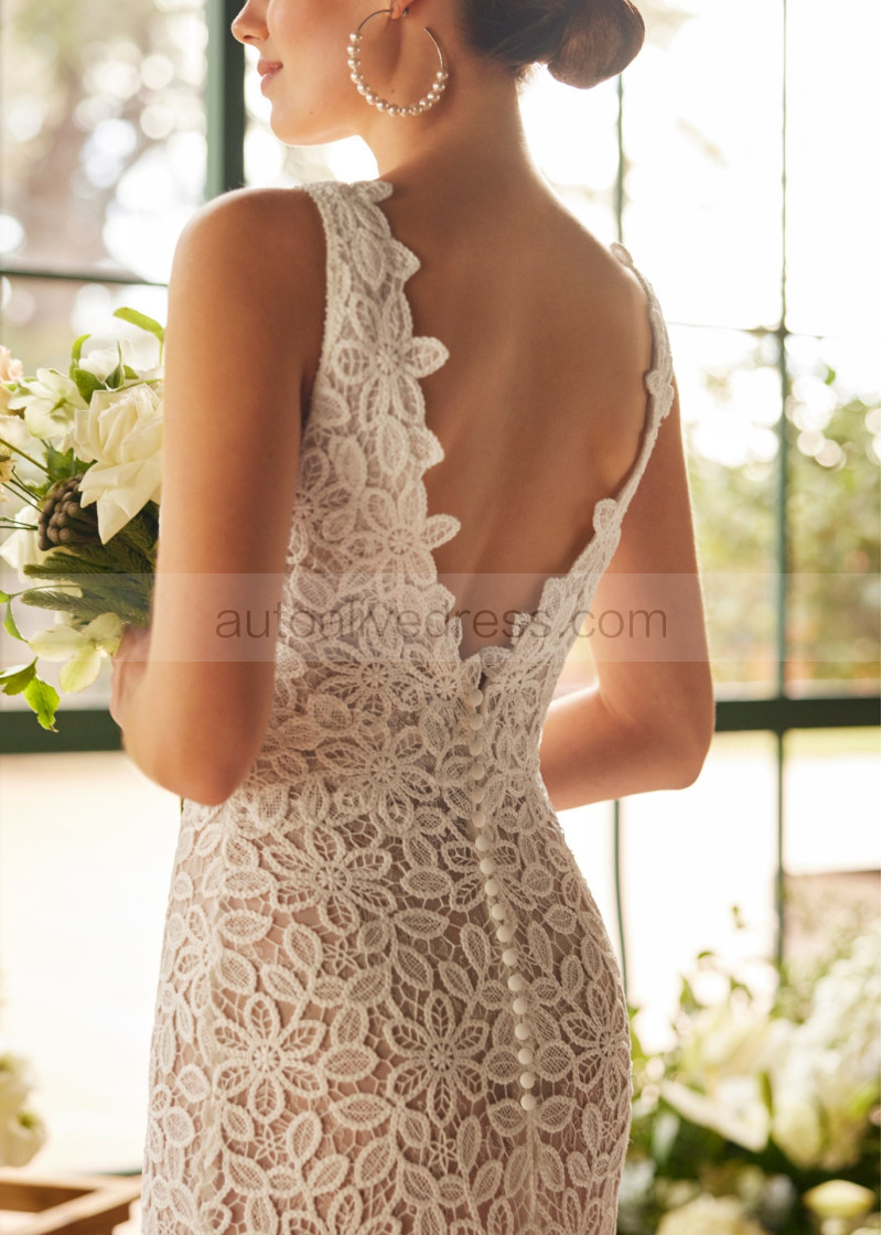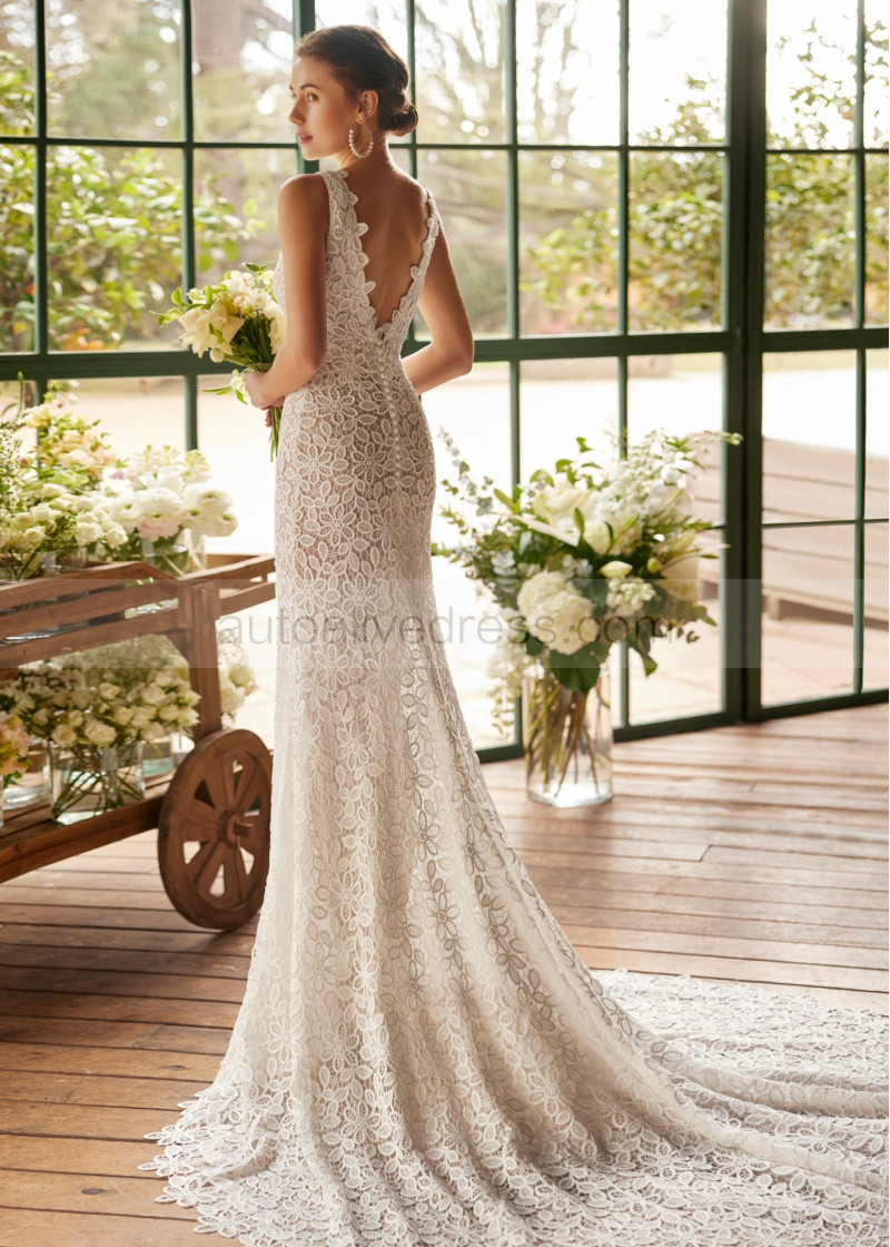 Ivory Lace Allover V Back Boho Chic Wedding Dress