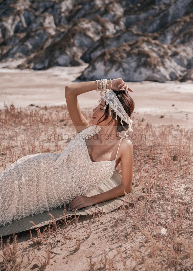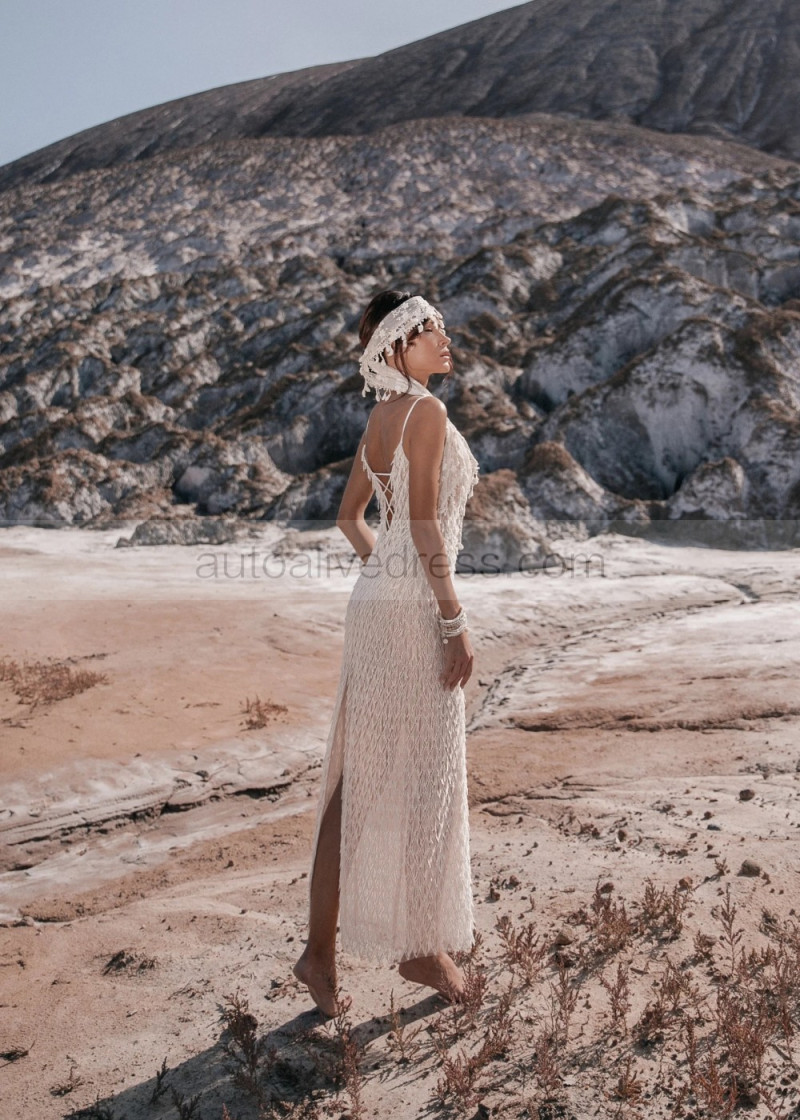 Ivory Lace Bohemian Back Slit Wedding Dress