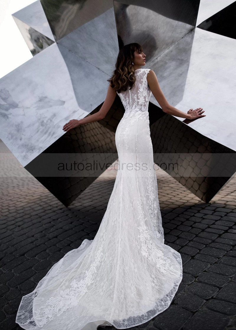 Ivory Lace Buttons Back Wedding Dress With Detachable Train