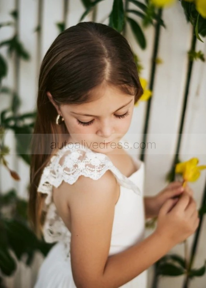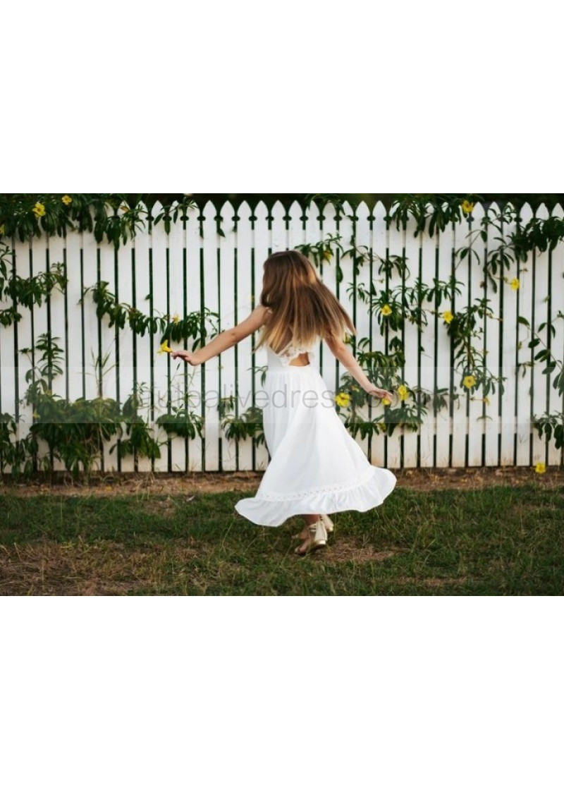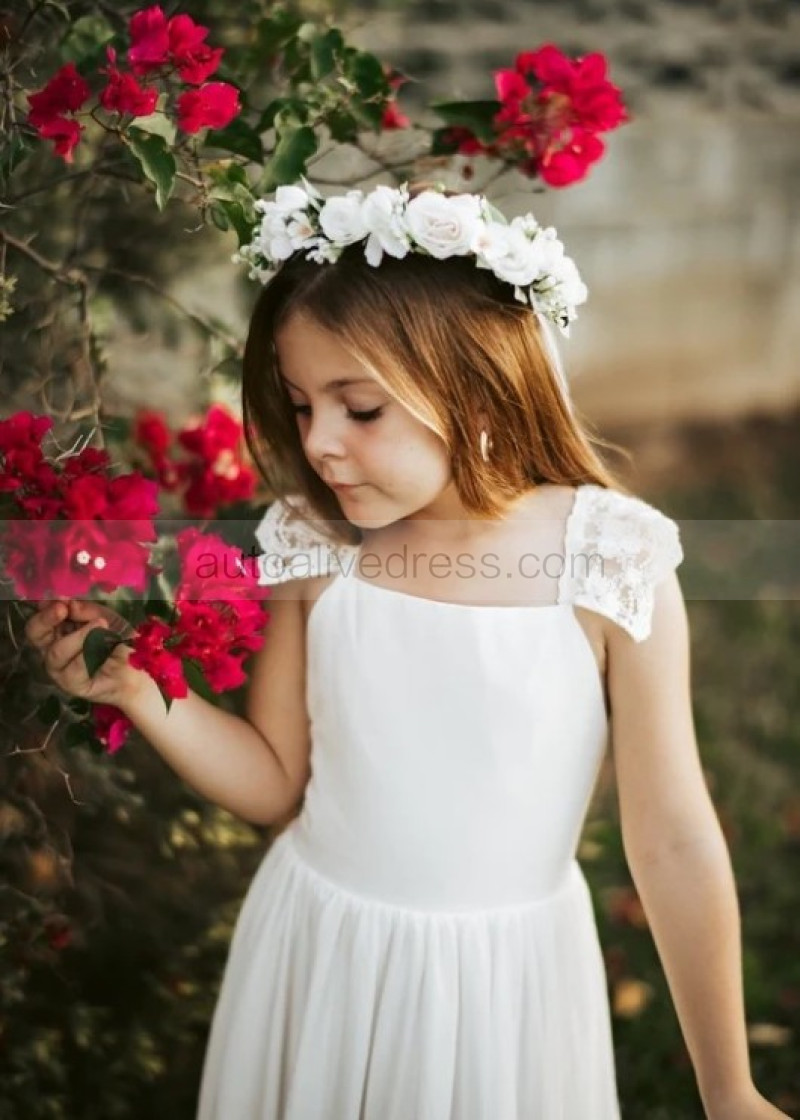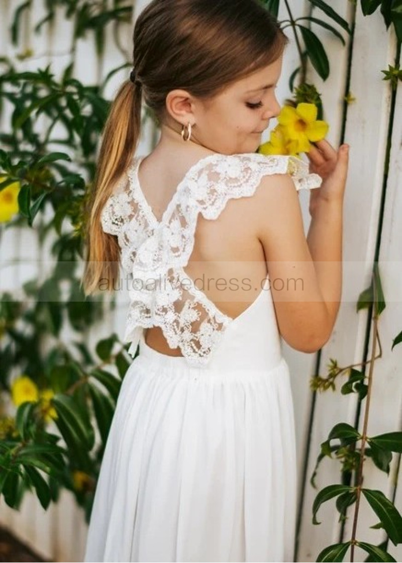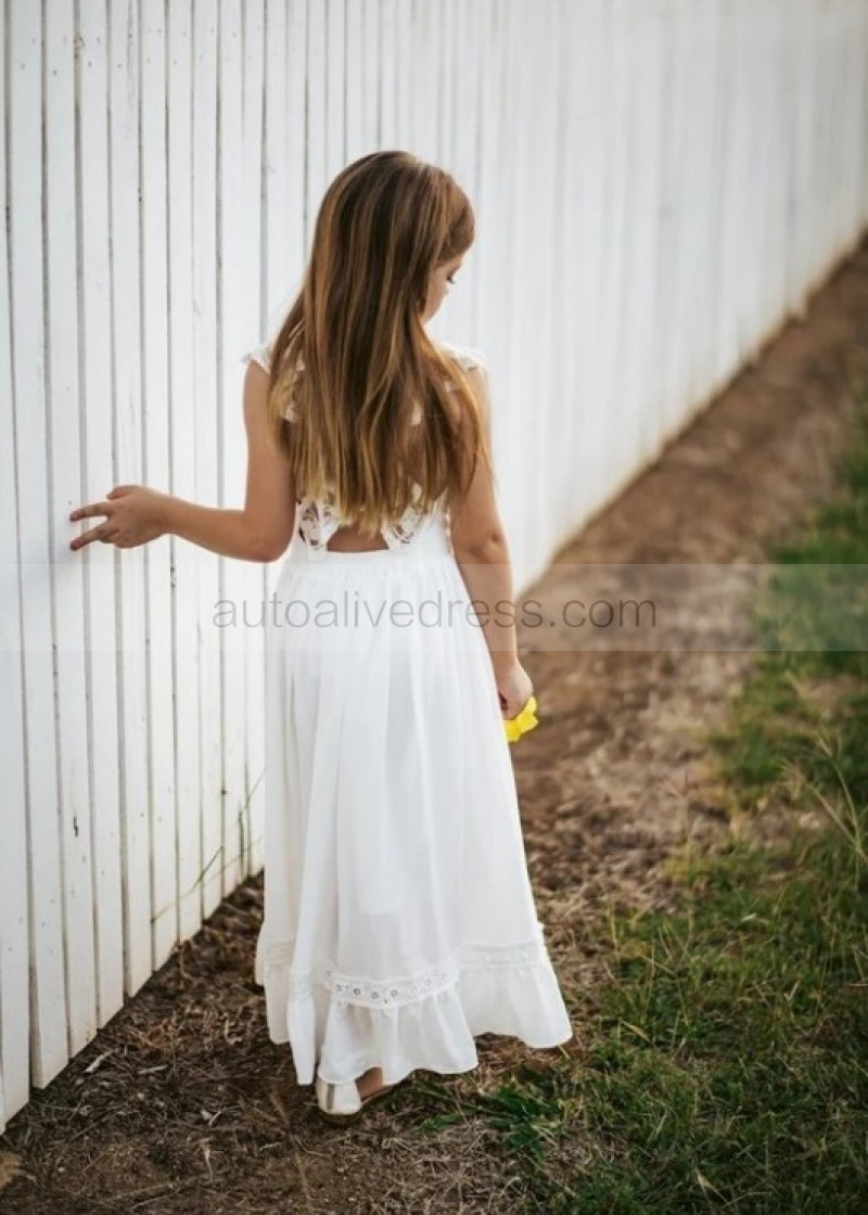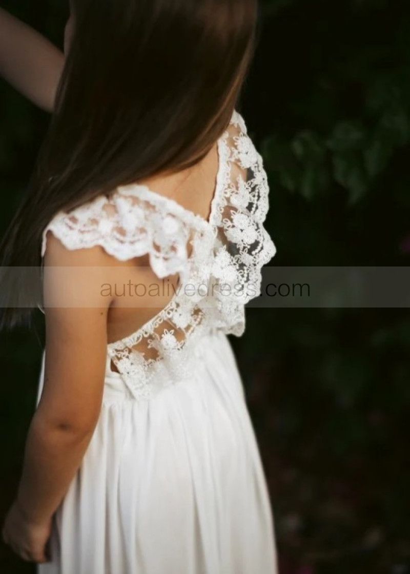 Ivory Lace Chiffon Cross Back Bohemian Flower Girl Dress