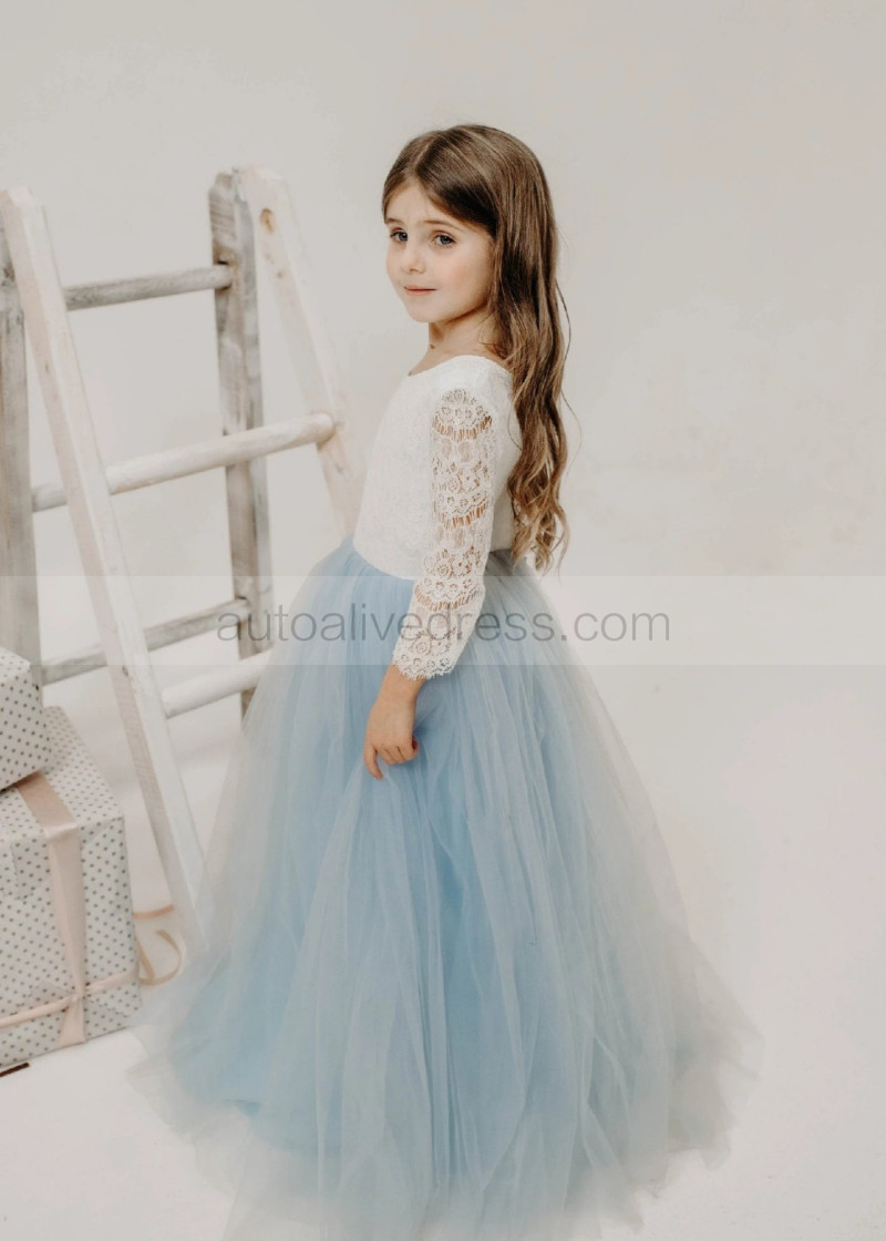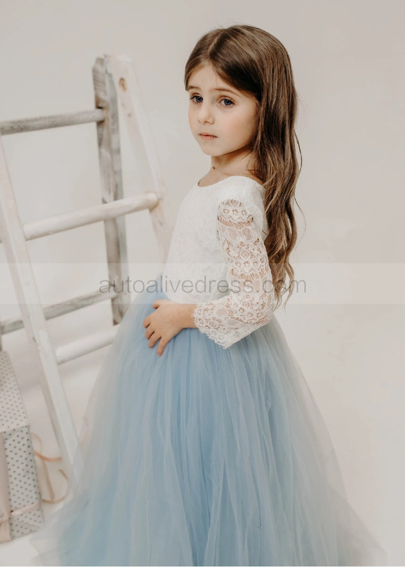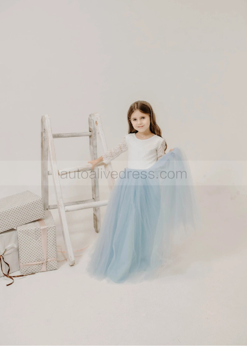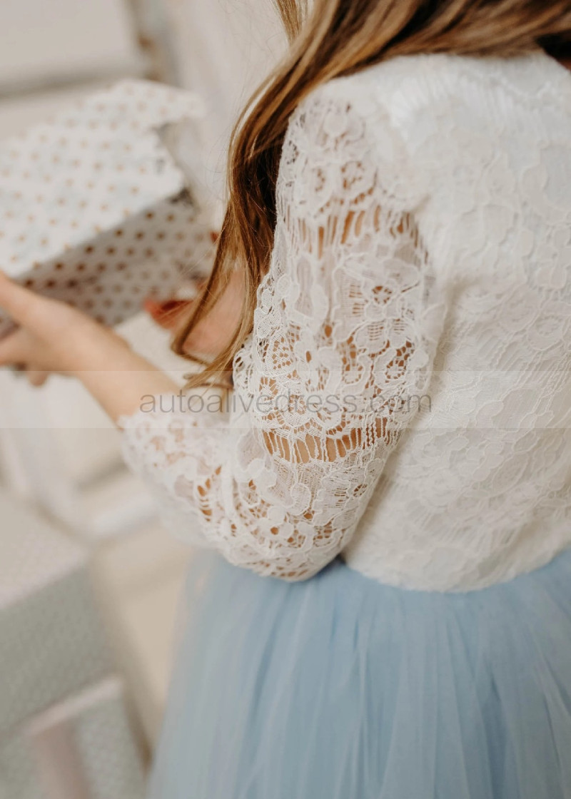 Ivory Lace Dusty Blue Tulle Gorgeous Flower Girl Dress