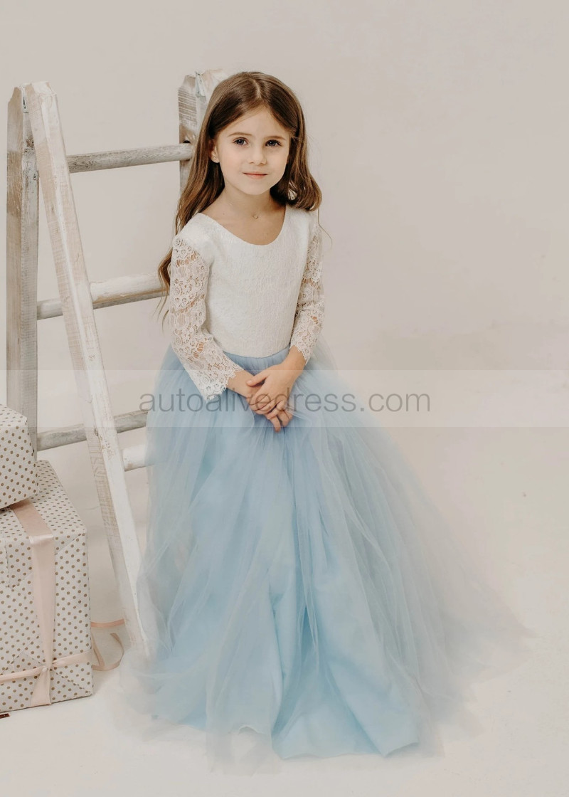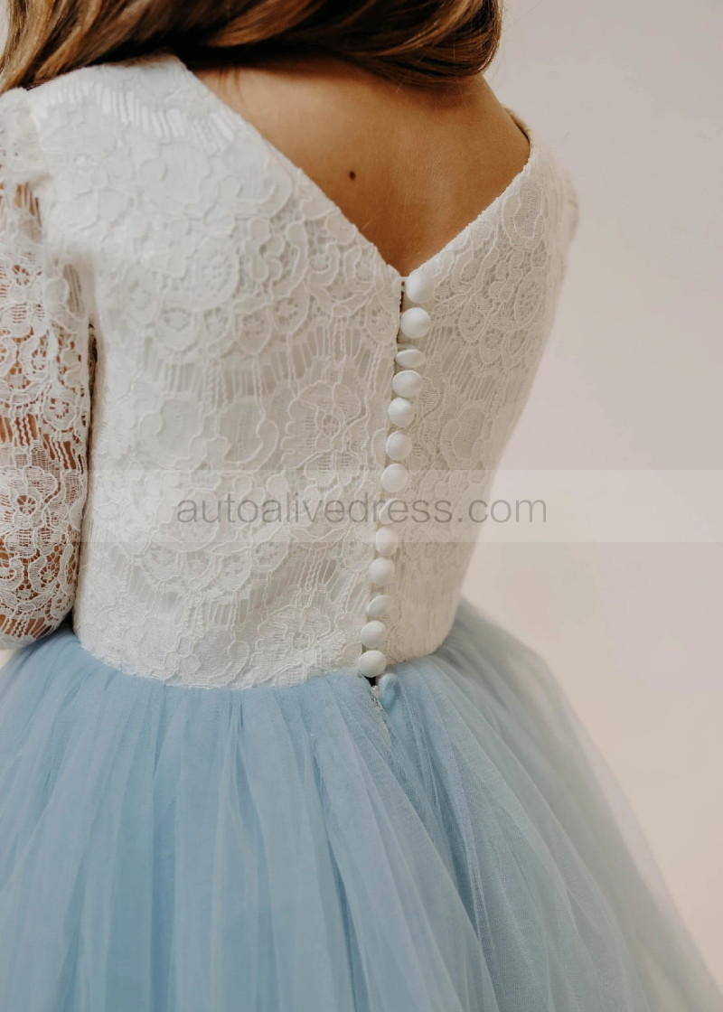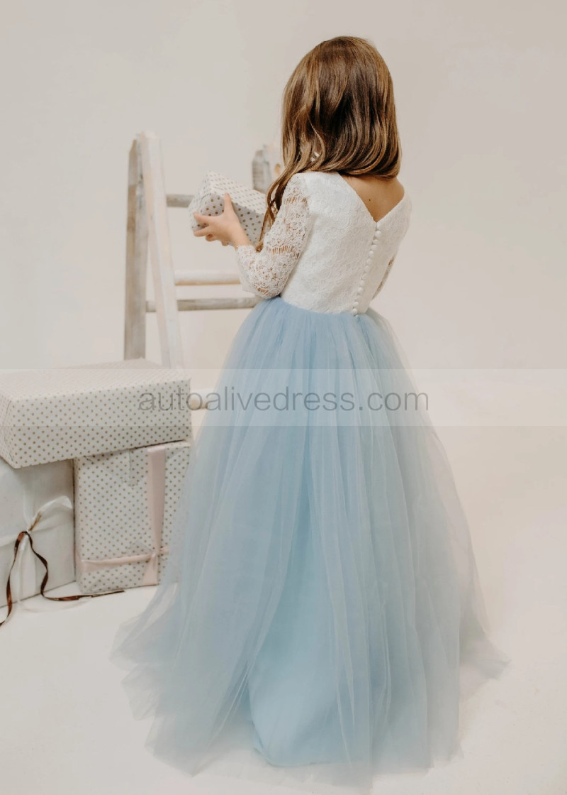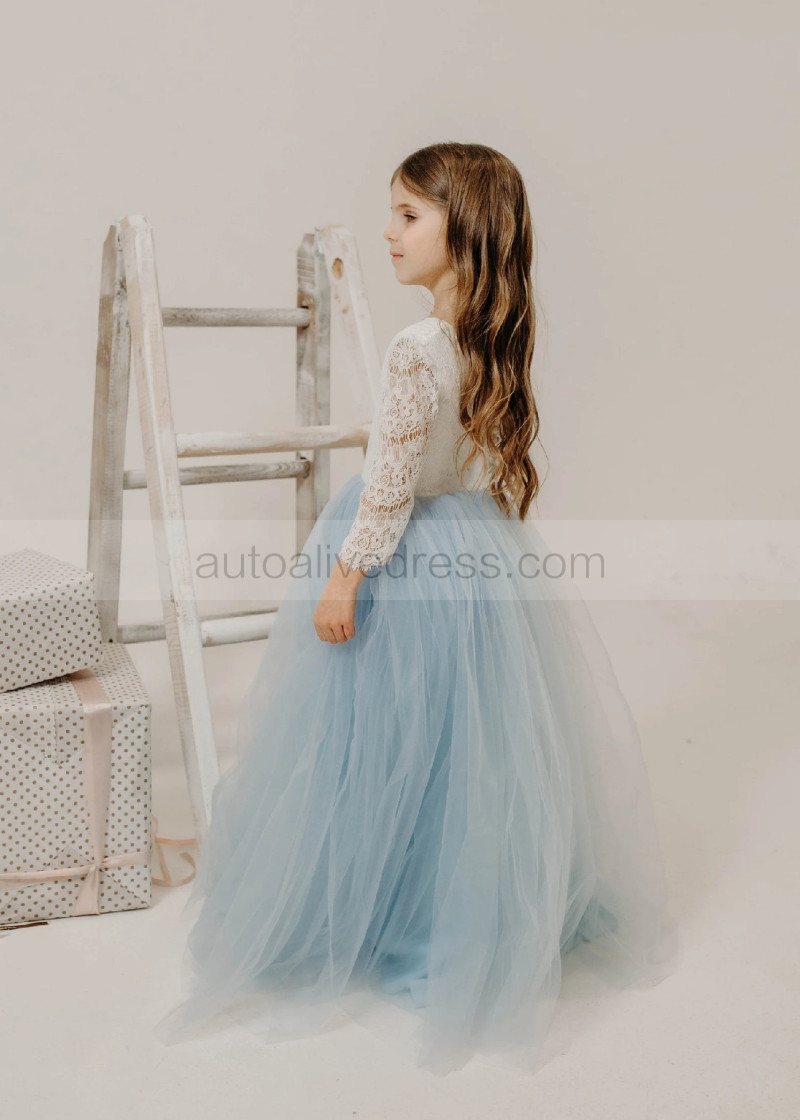 Ivory Lace Dusty Blue Tulle Gorgeous Flower Girl Dress