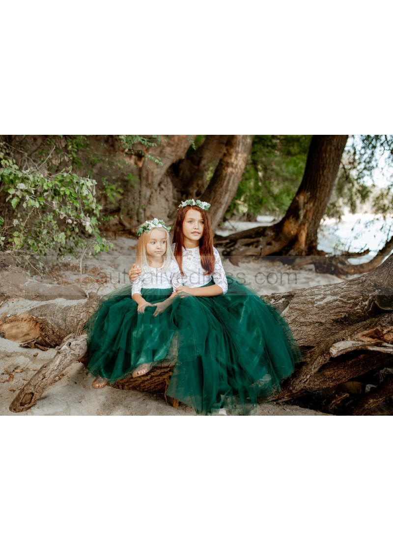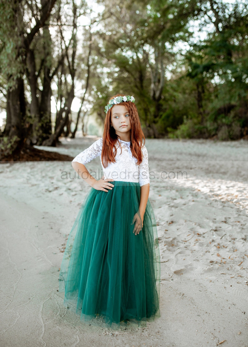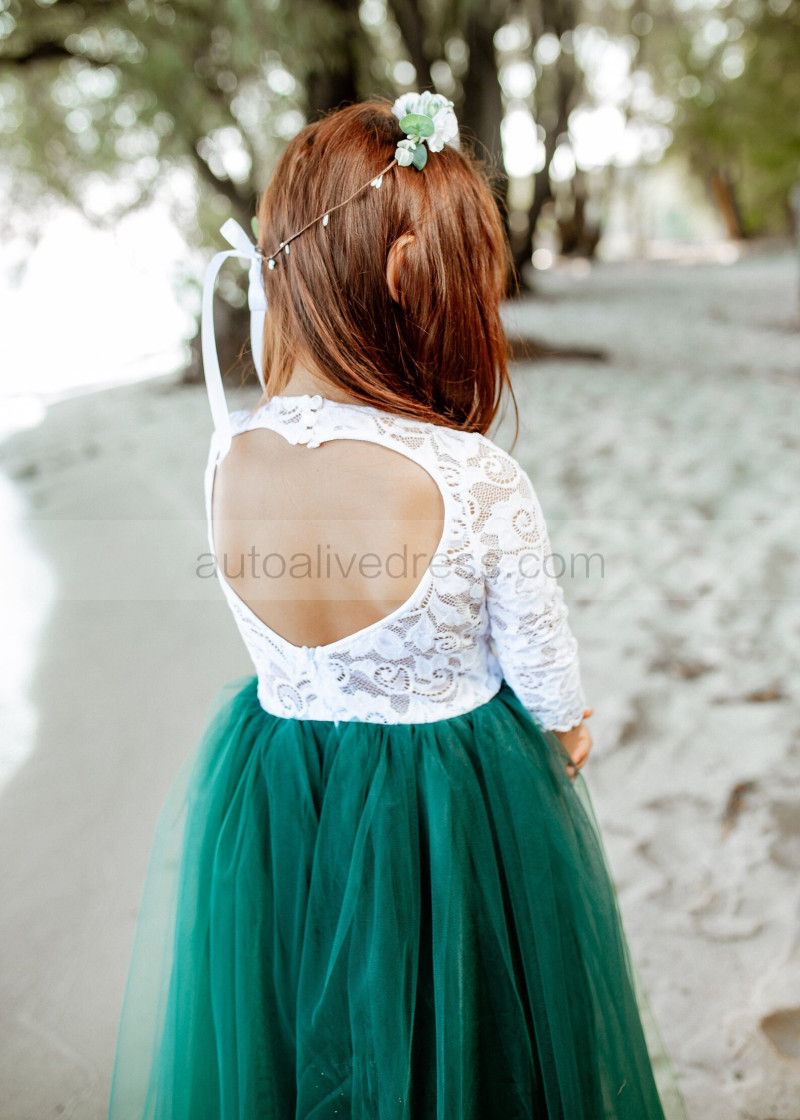 Ivory Lace Emerald Green Tulle Keyhole Back Flower Girl Dress