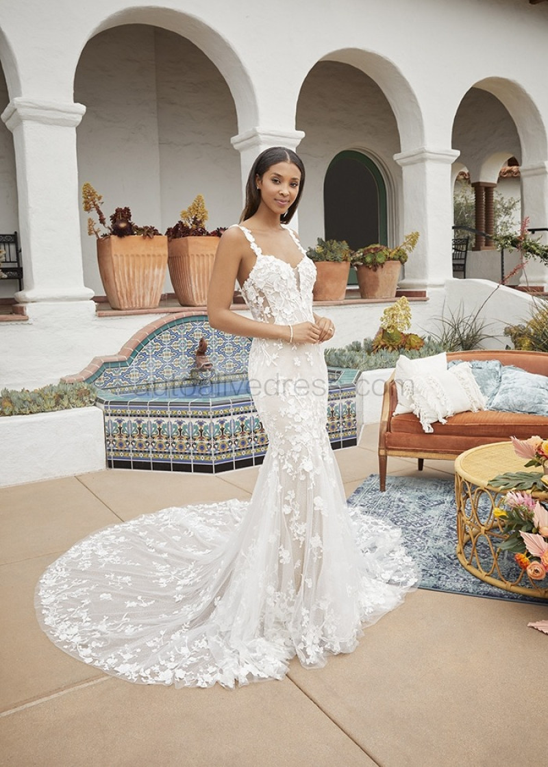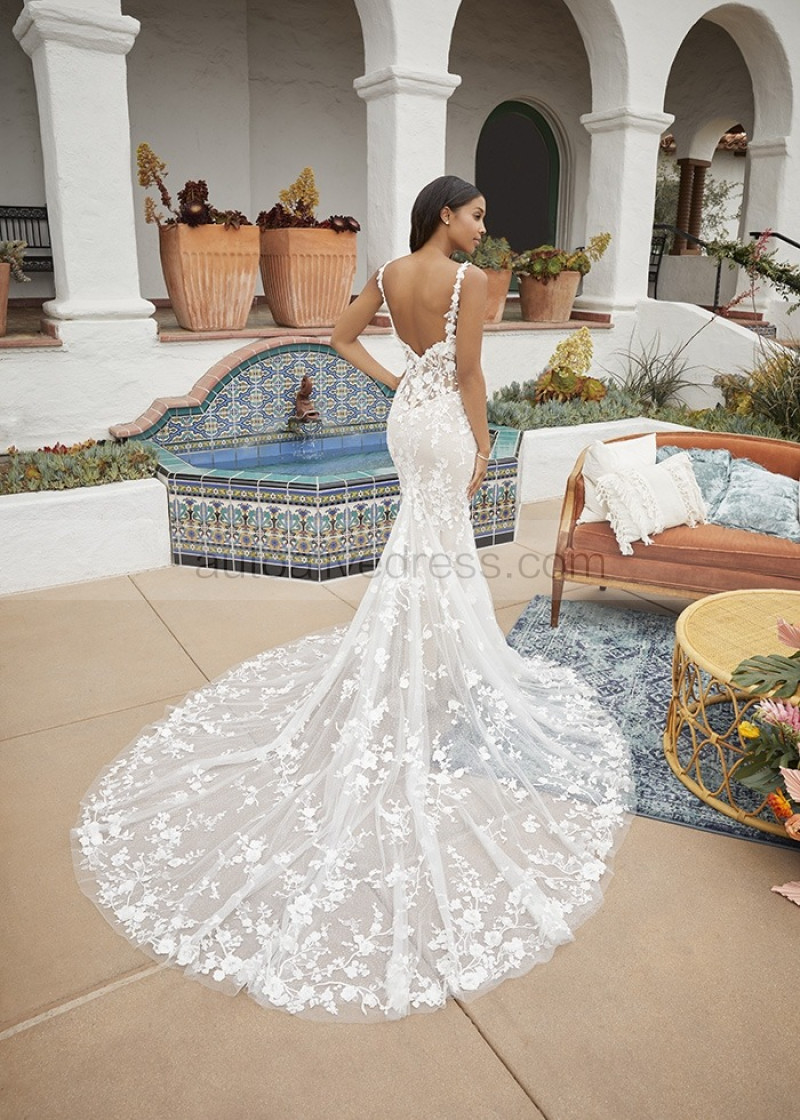Ivory Lace Glitter Tulle Open Back Modern Wedding Dress