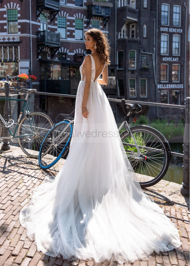 Ivory Lace Open Back Wedding Dress With Detachable Train