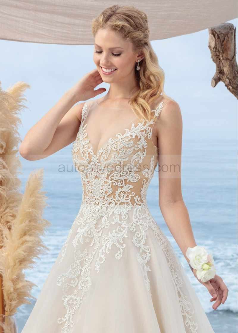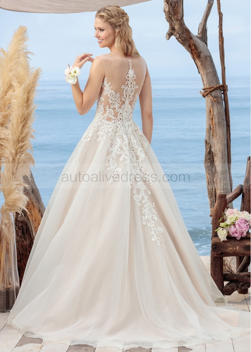 Ivory Lace Organza Illusion Back Airy Wedding Dress
