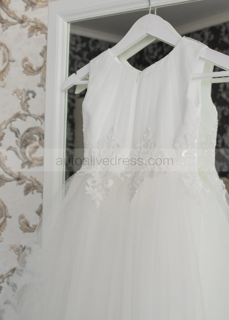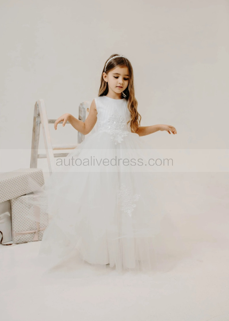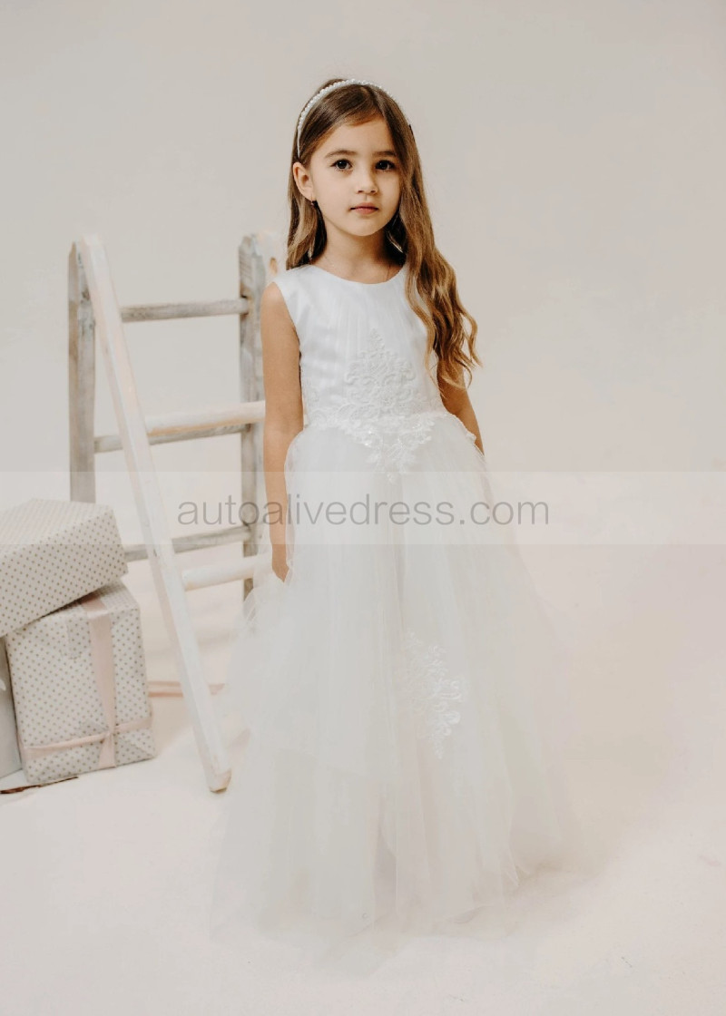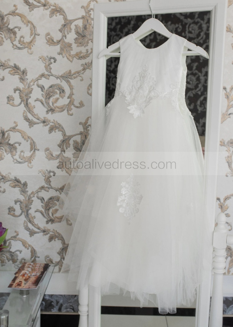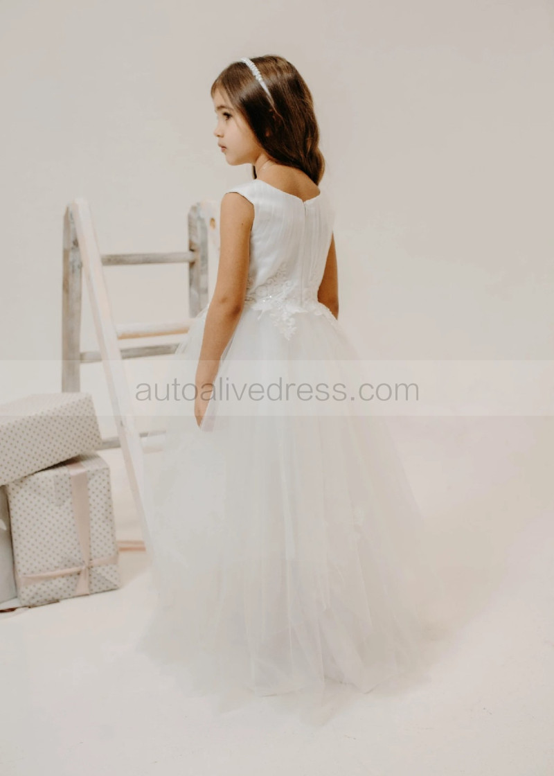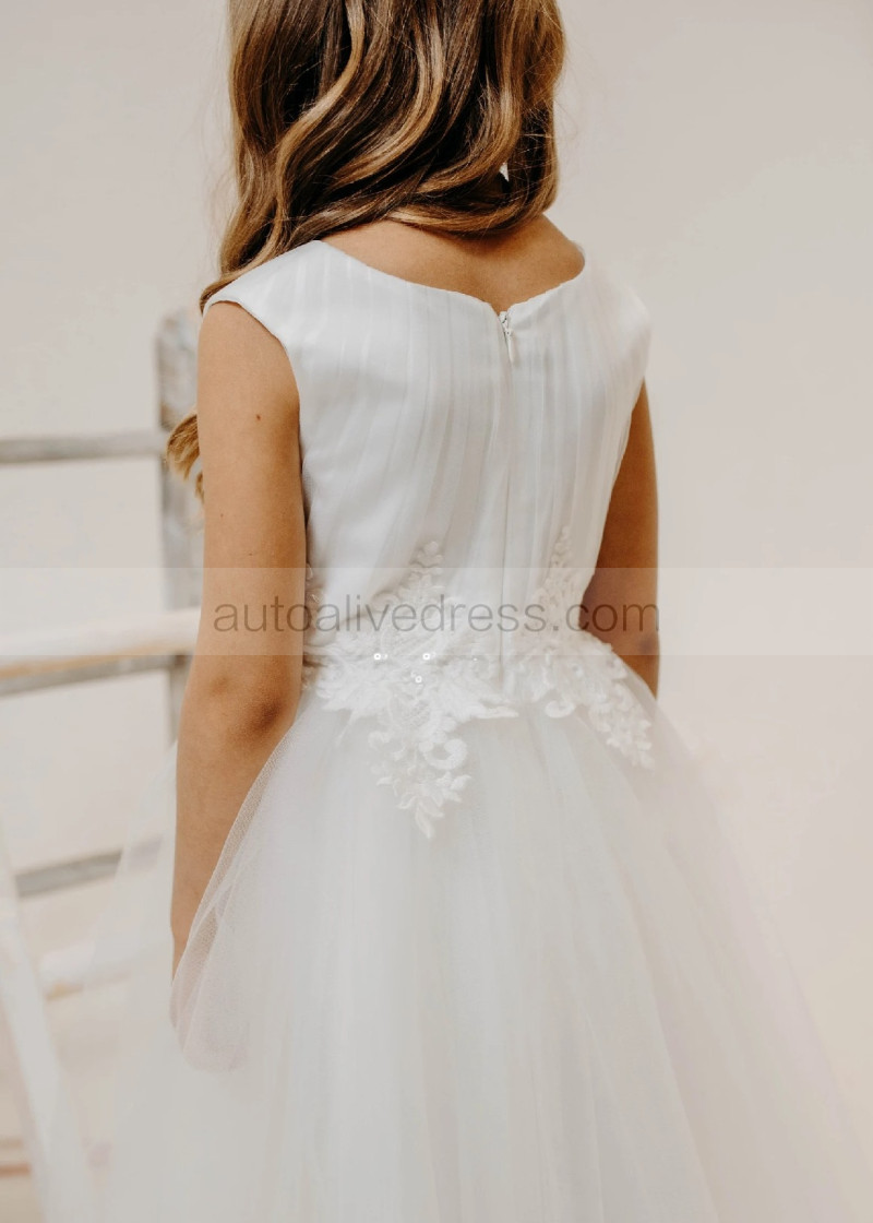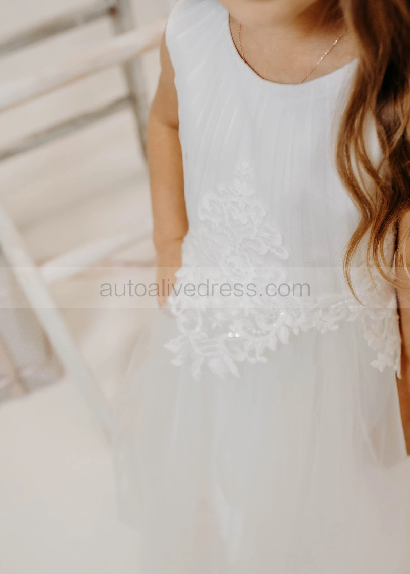 Ivory Lace Pleated Tulle Graceful Flower Girl Dress
