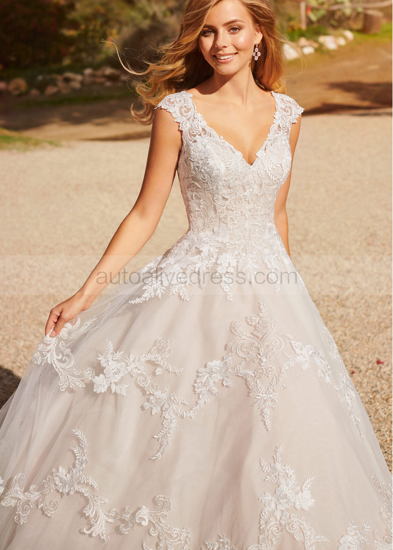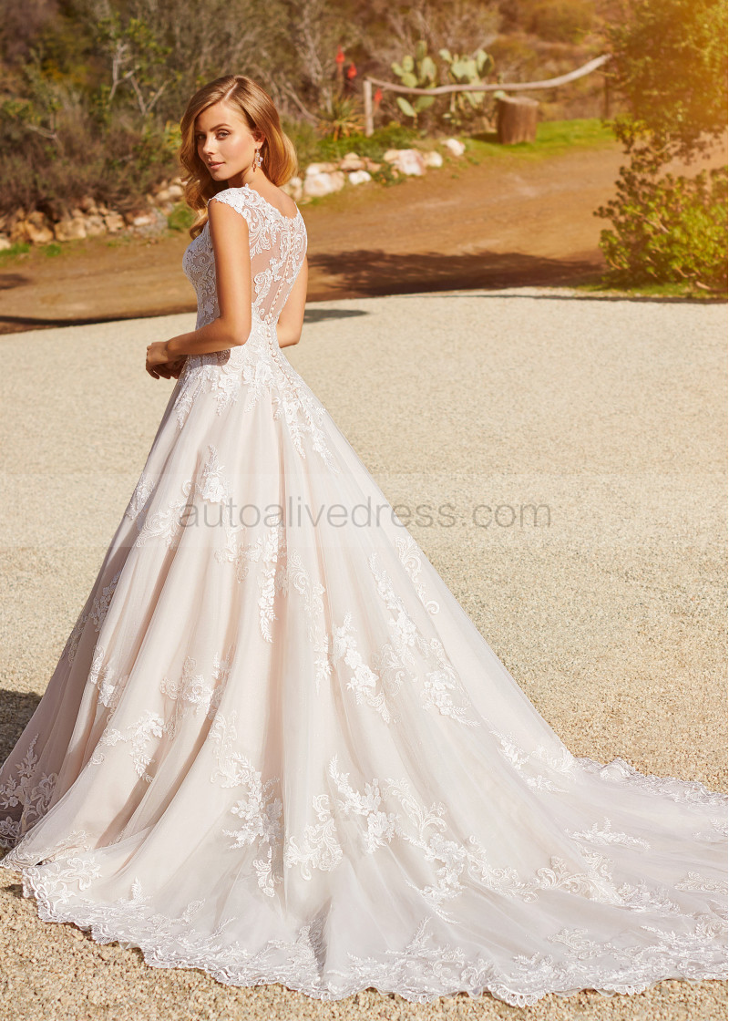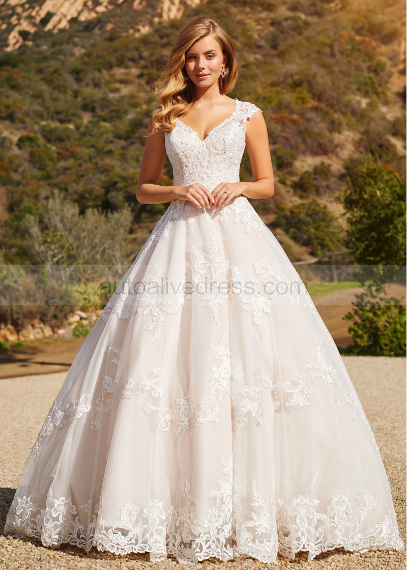Ivory Lace Sparkle Tulle Wedding Dress With Champagne Lining