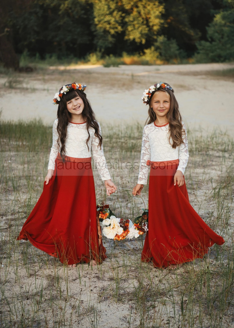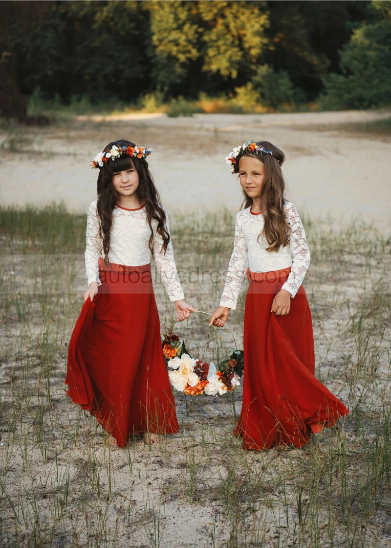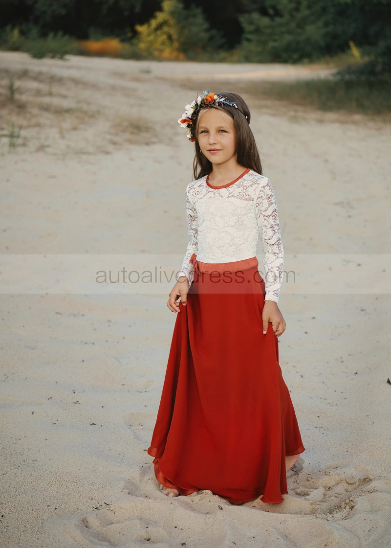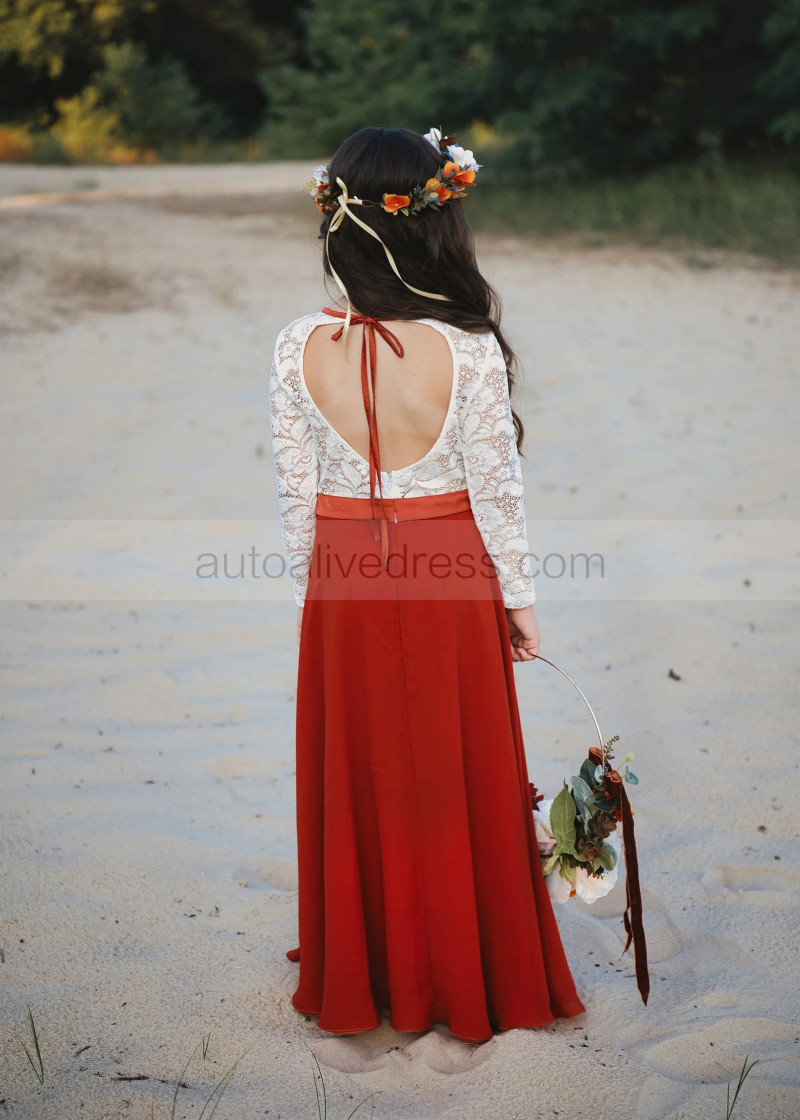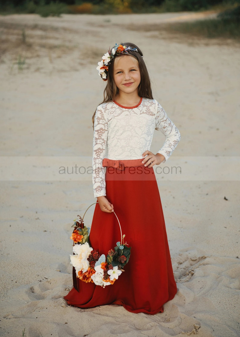 Ivory Lace Terracota Chiffon Autumn Flower Girl Dress
