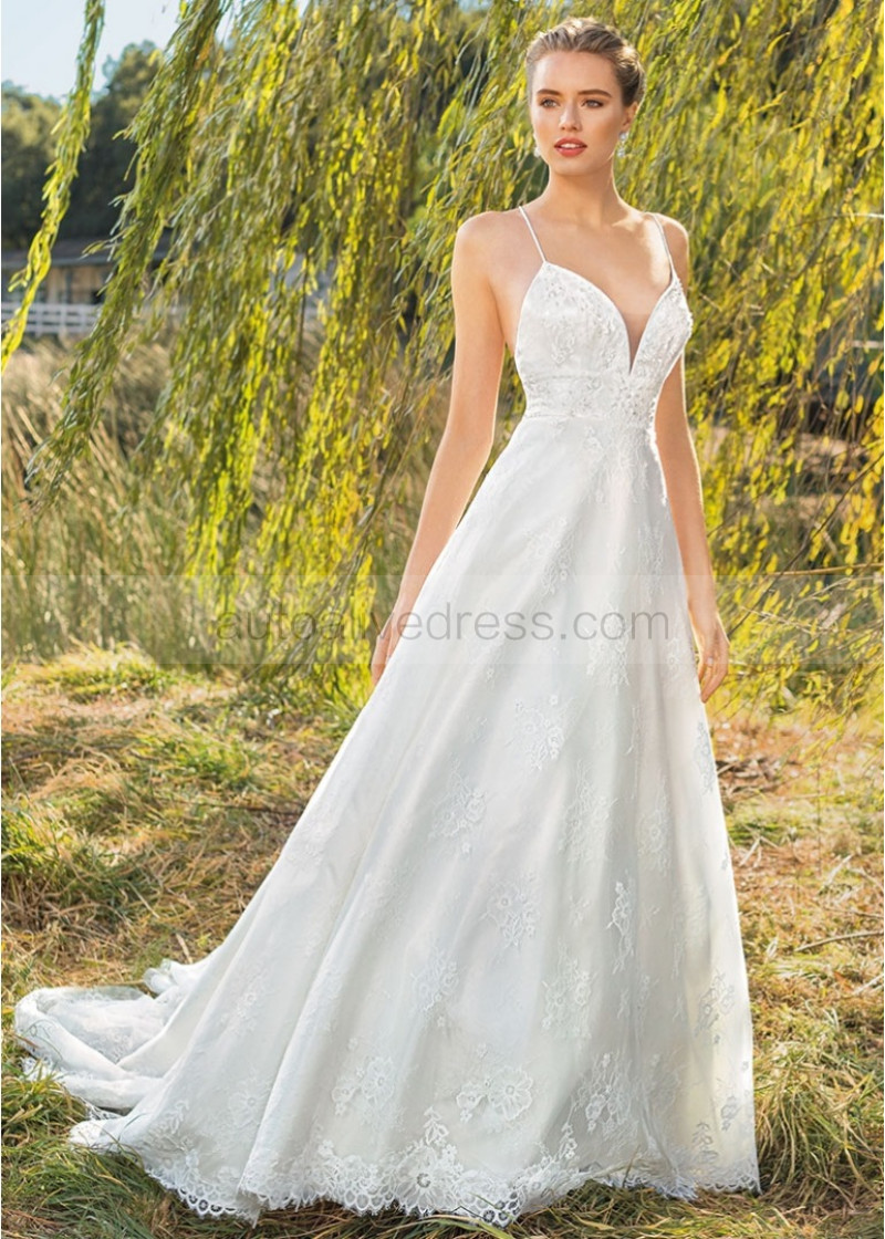 Ivory Lace Tulle Criss-cross Back Sweet Wedding Dress