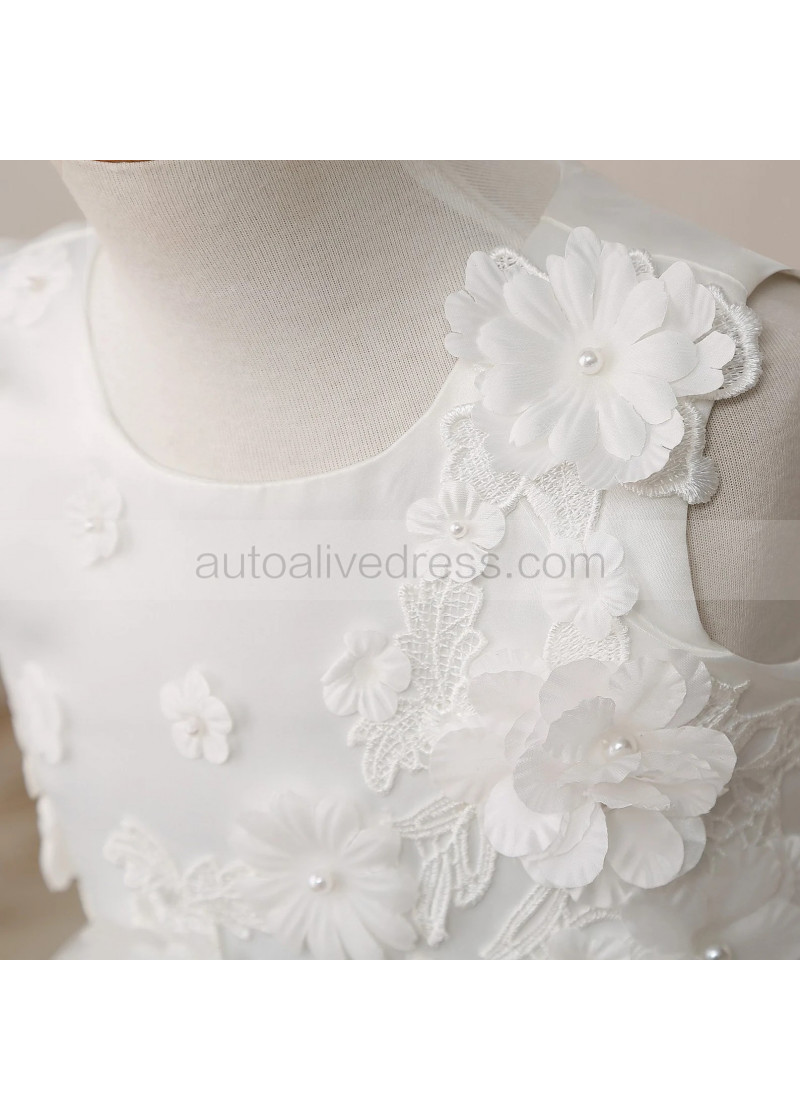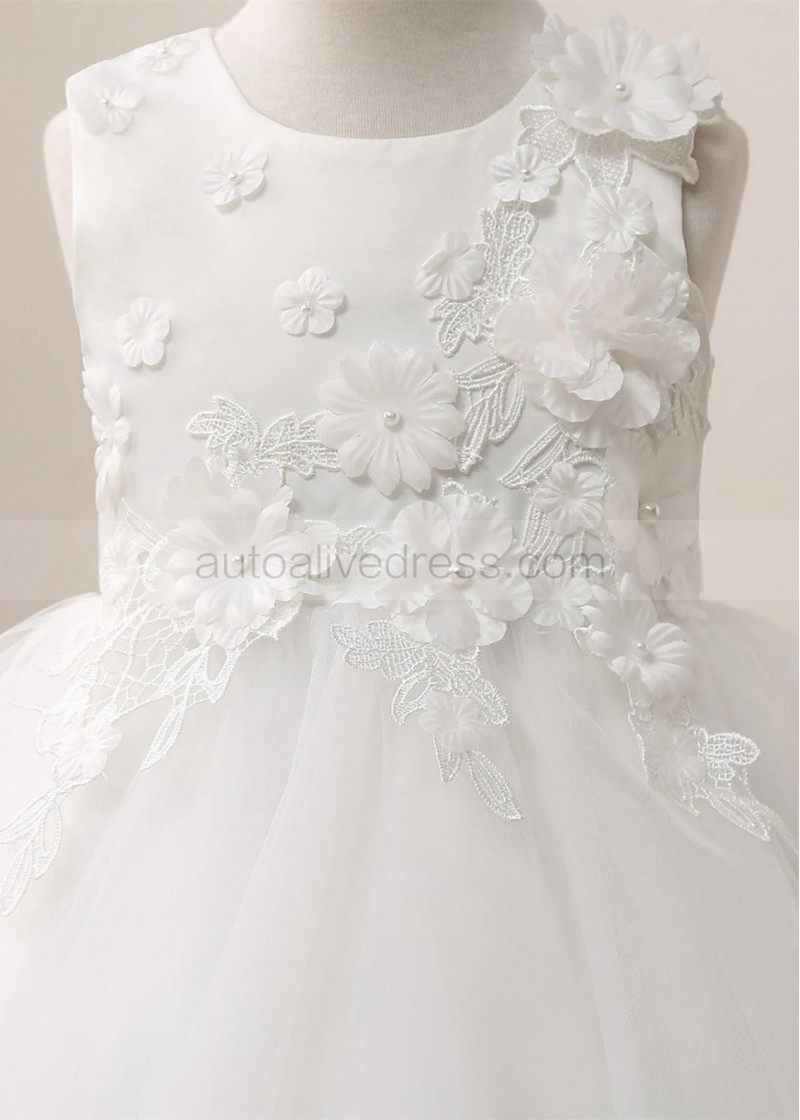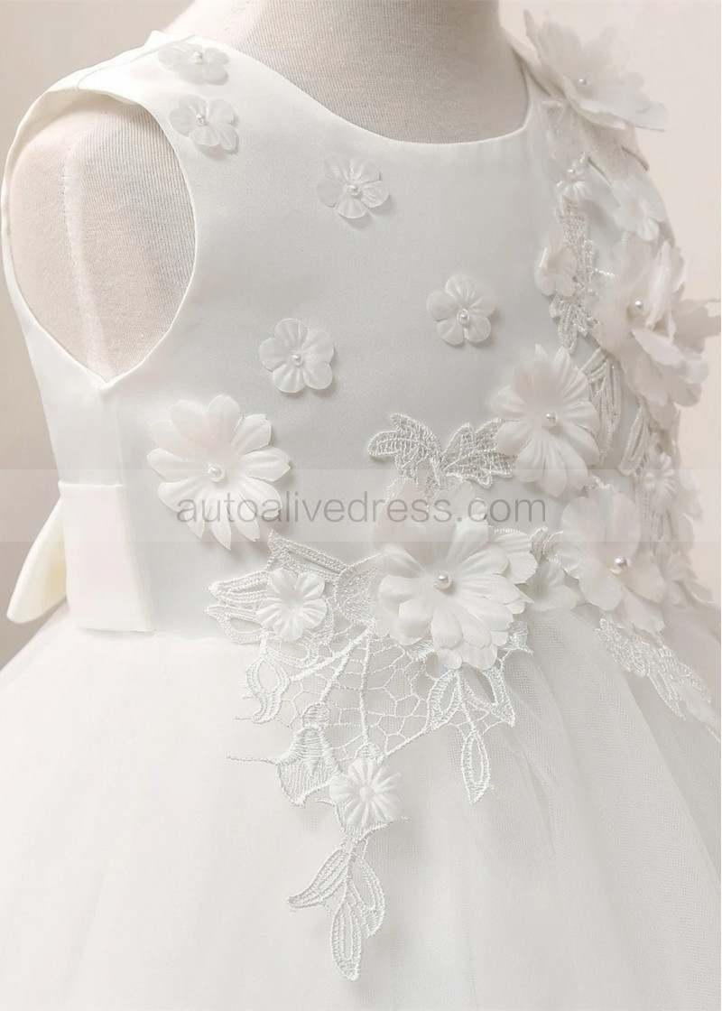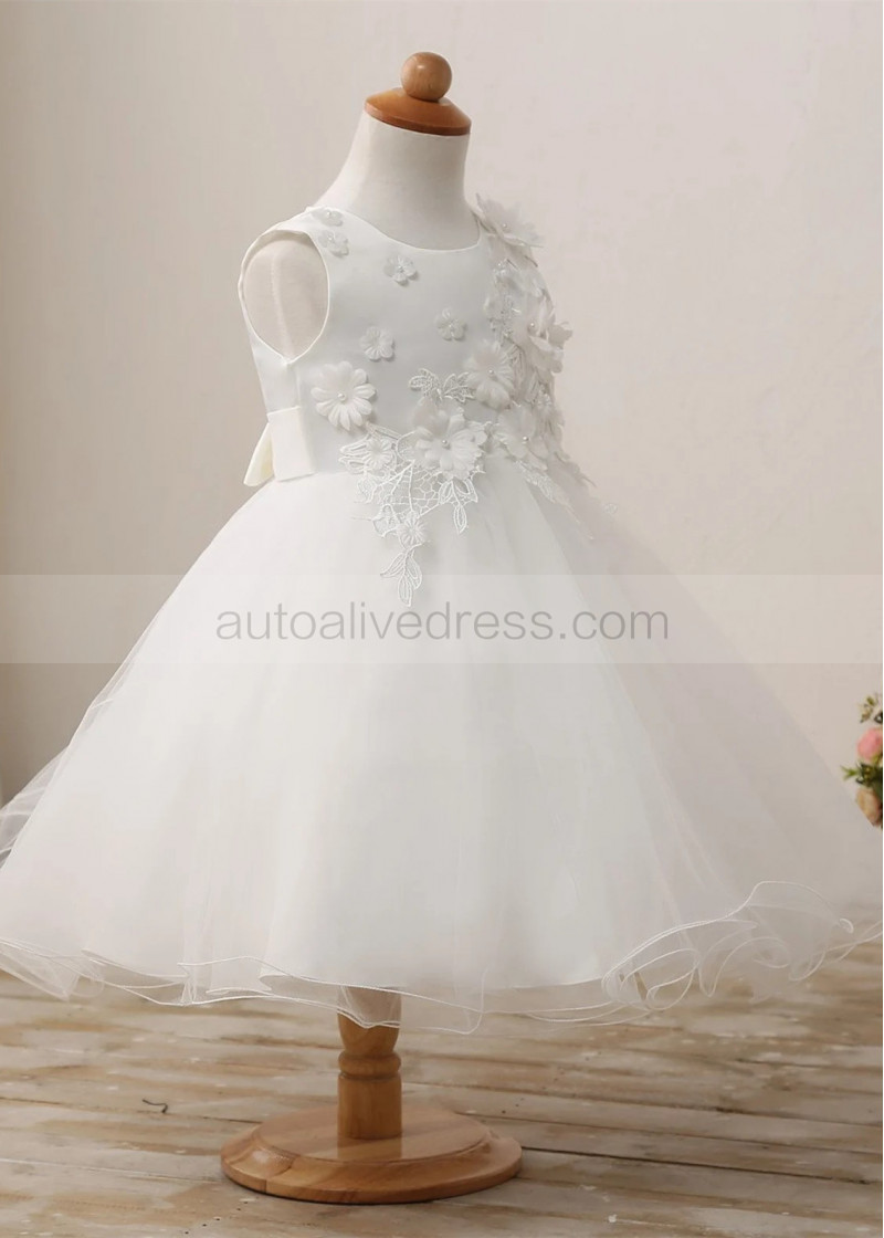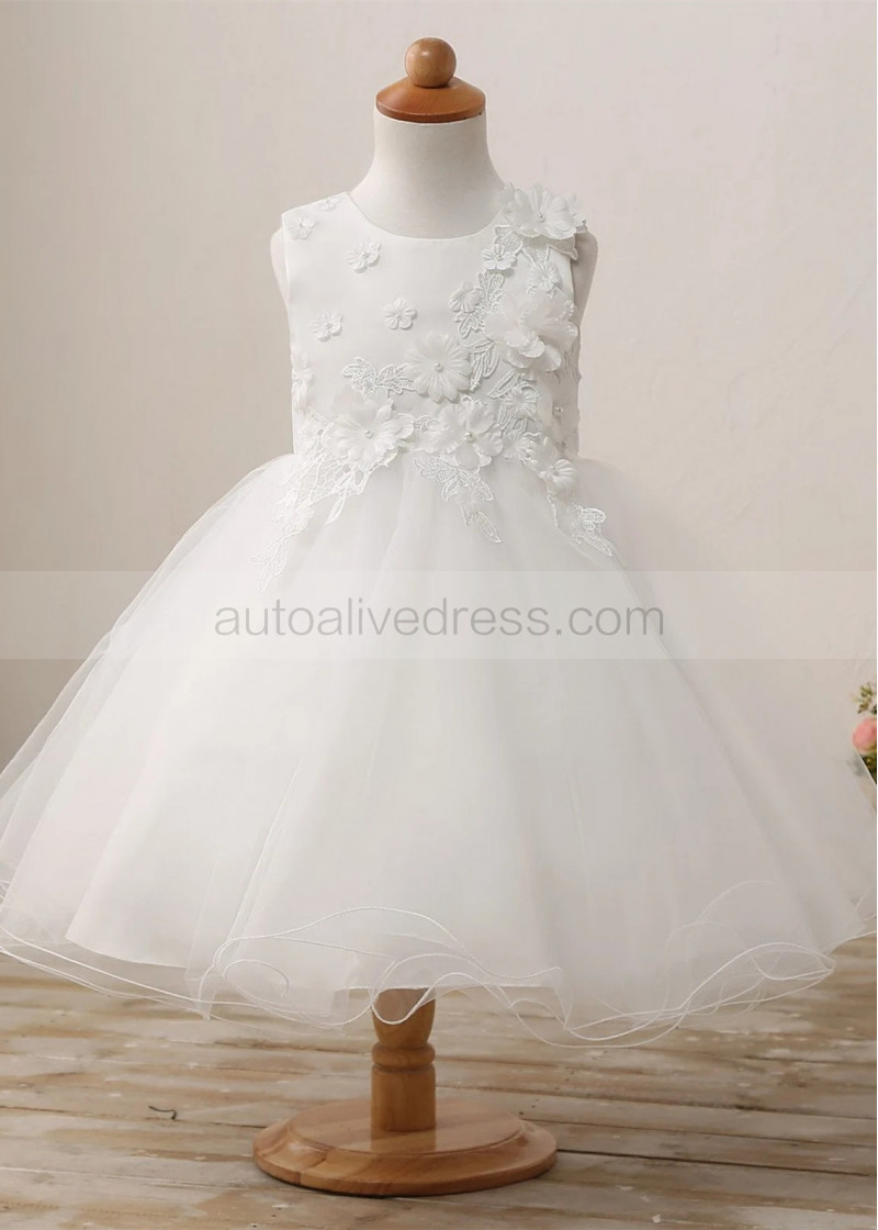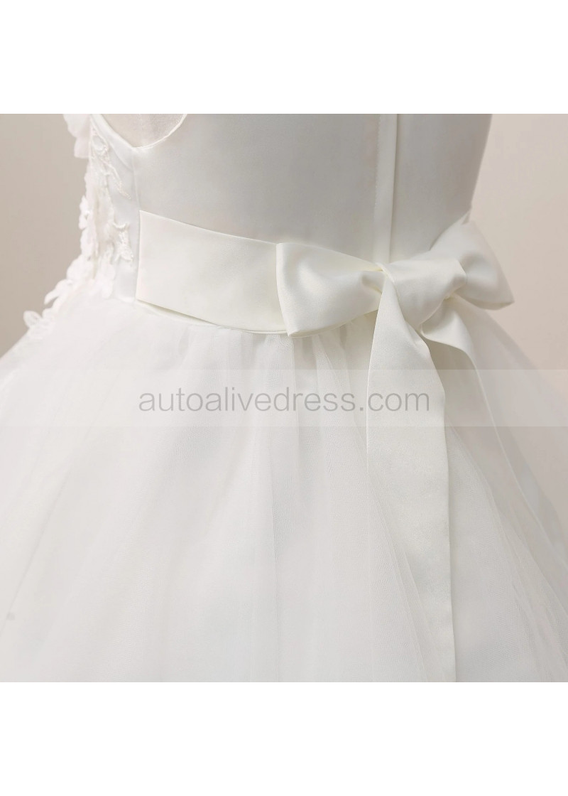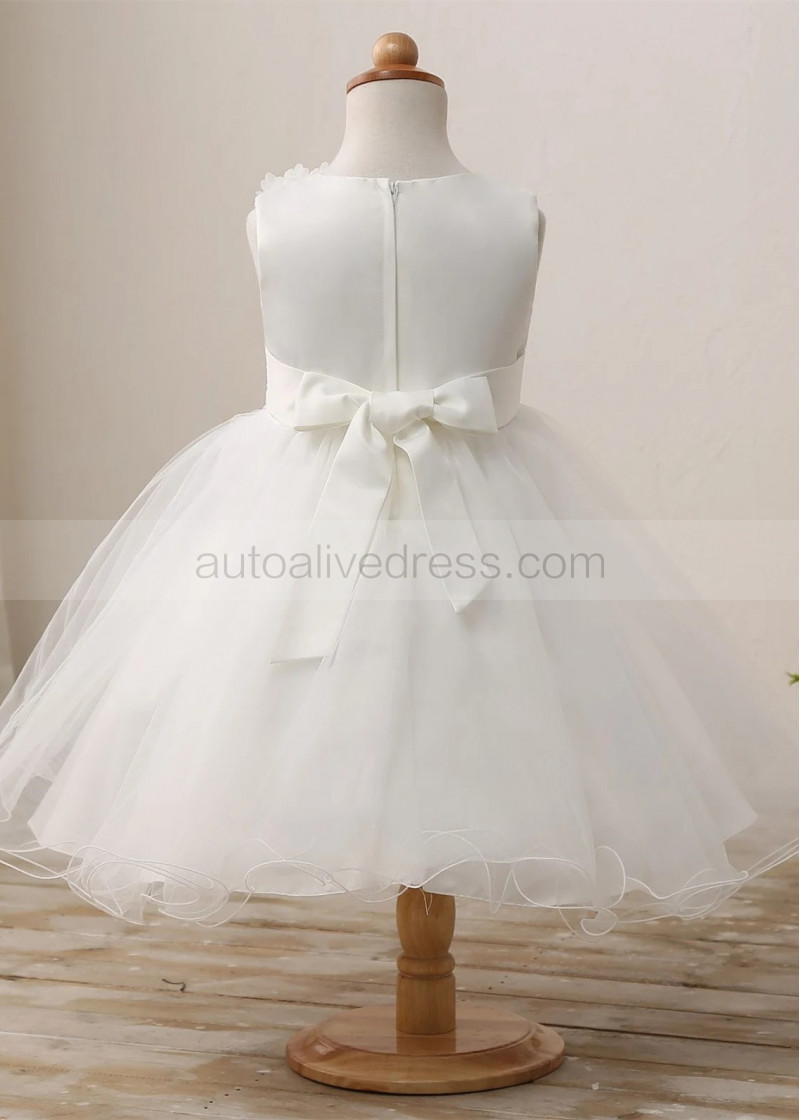 Ivory Lace Tulle Curly Hem Floral Flower Girl Dress