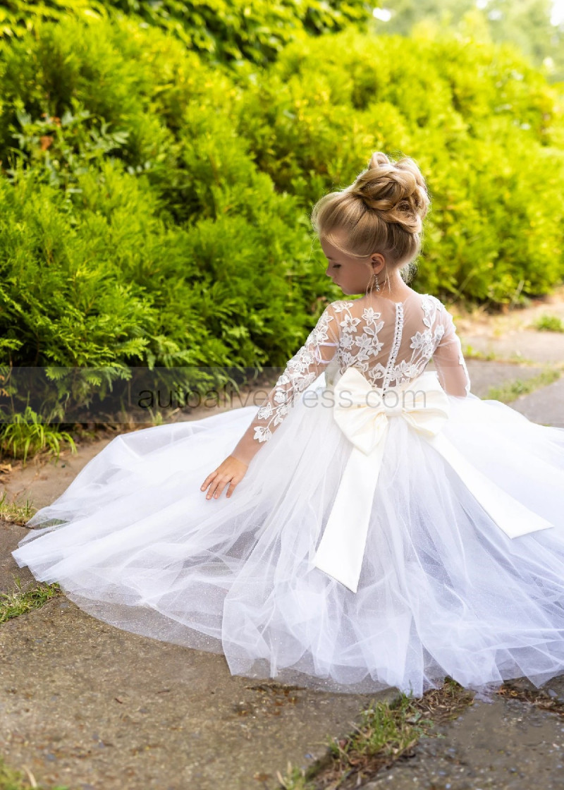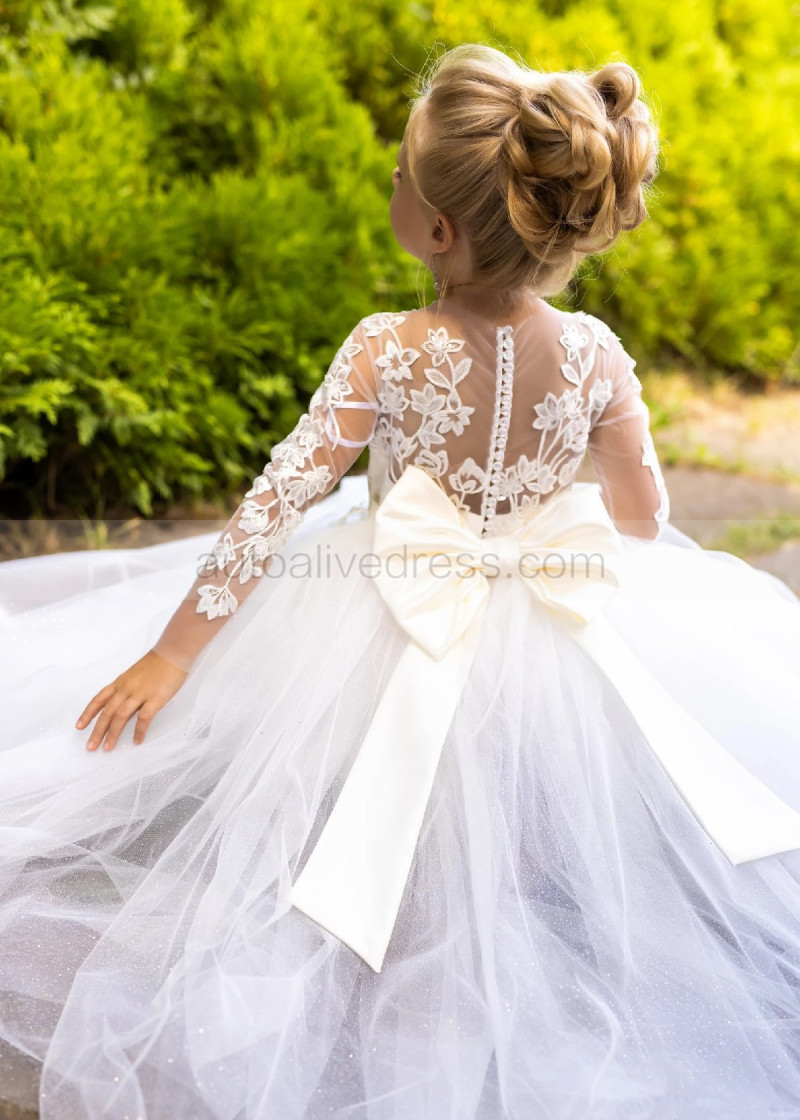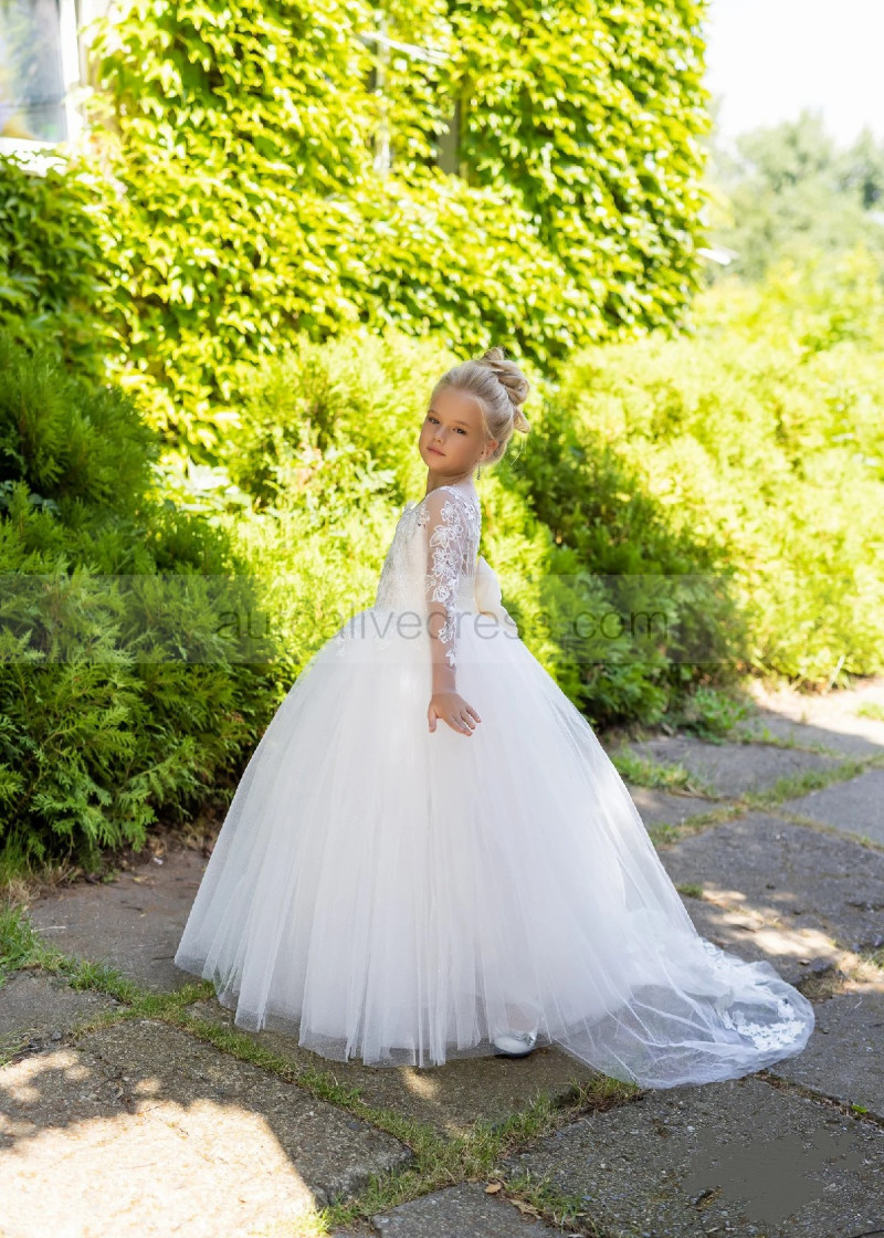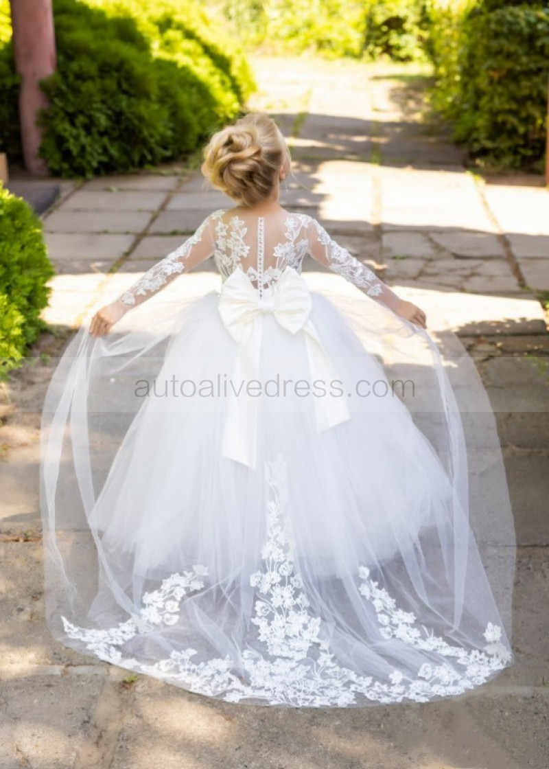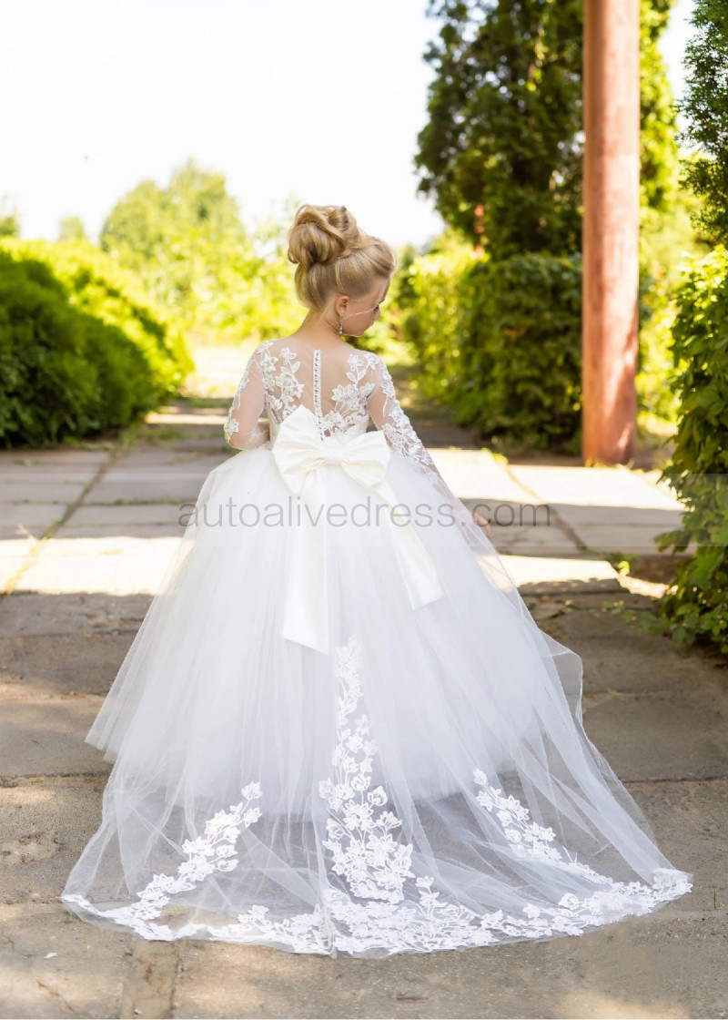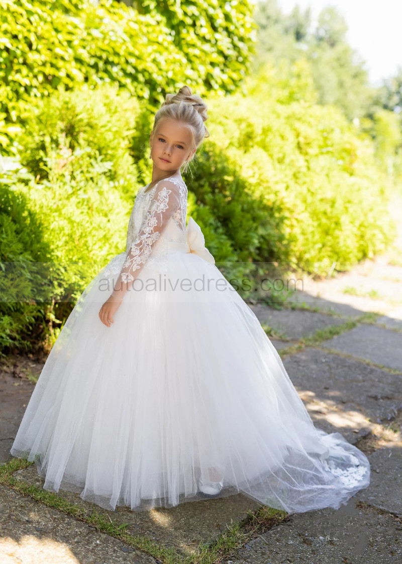 Ivory Lace Tulle Flower Girl Dress With Removable Train