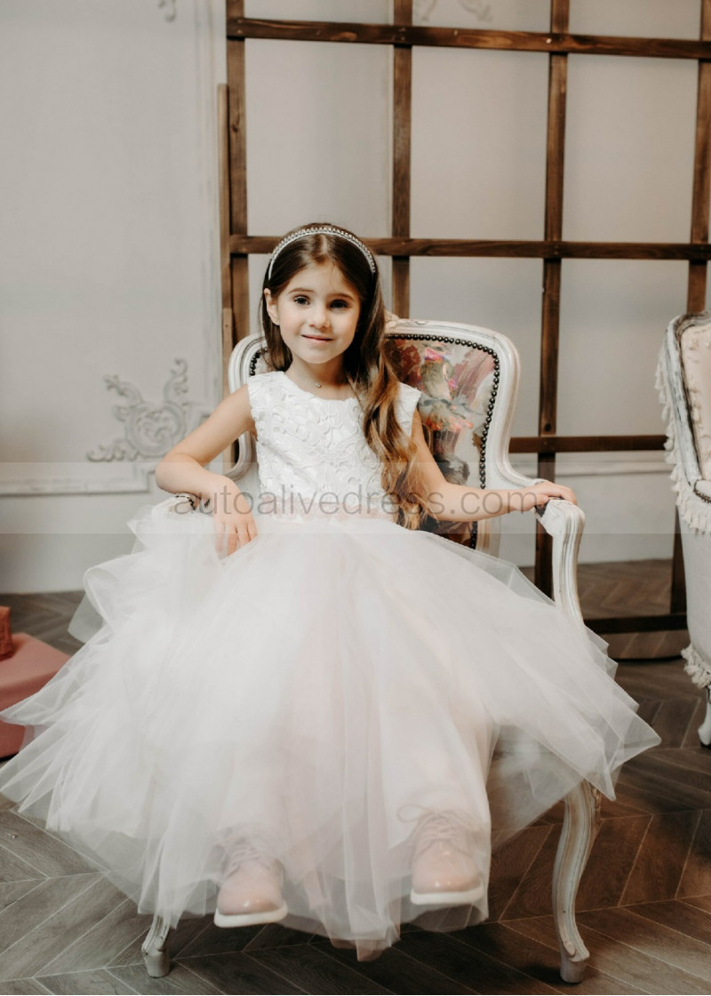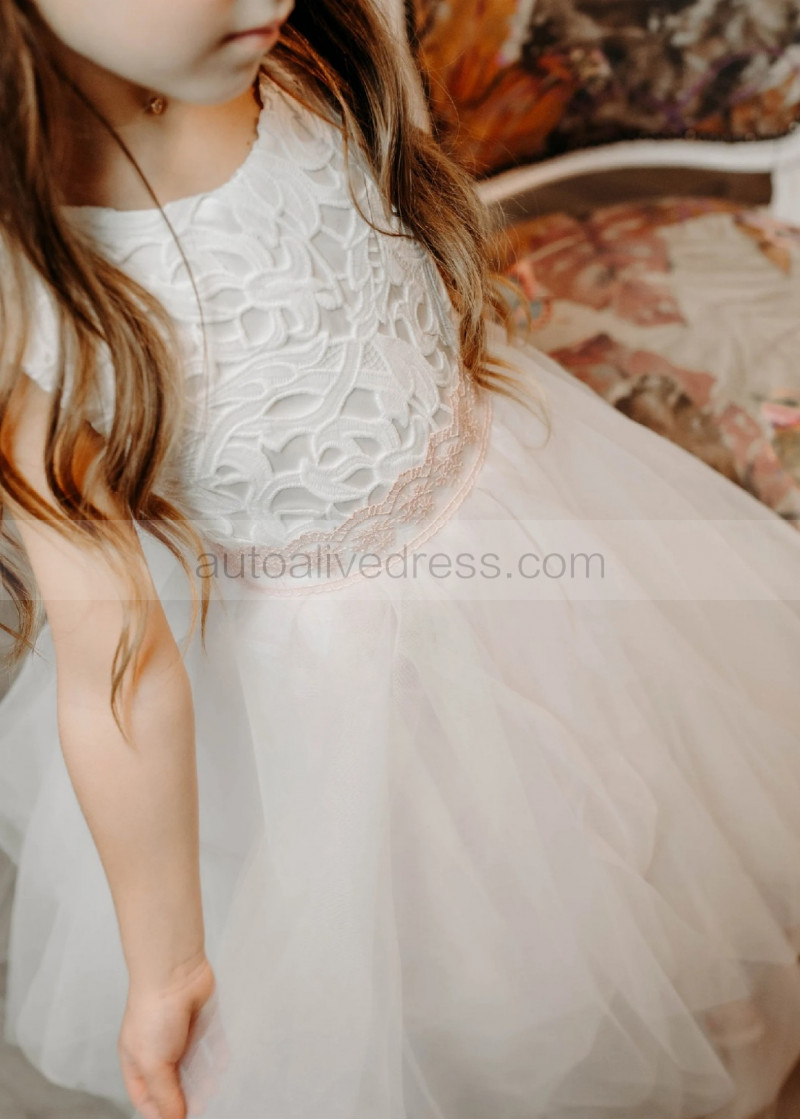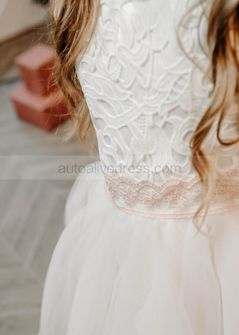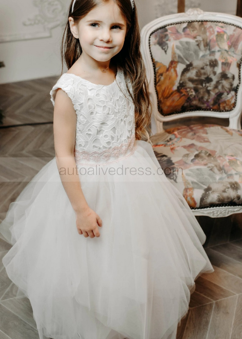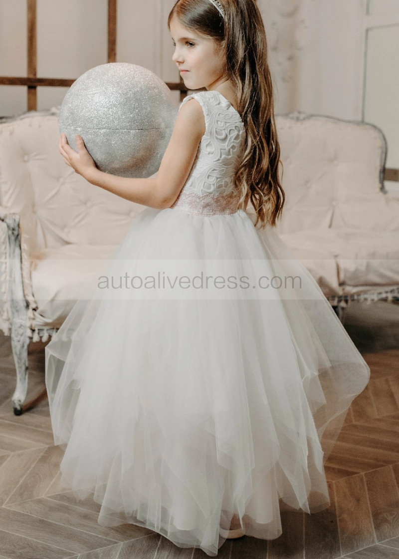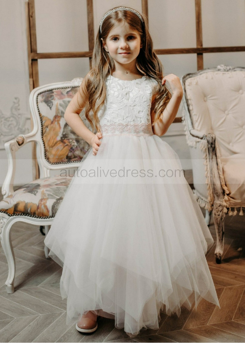 Ivory Lace Tulle Handkerchief Hem Flower Girl Dress