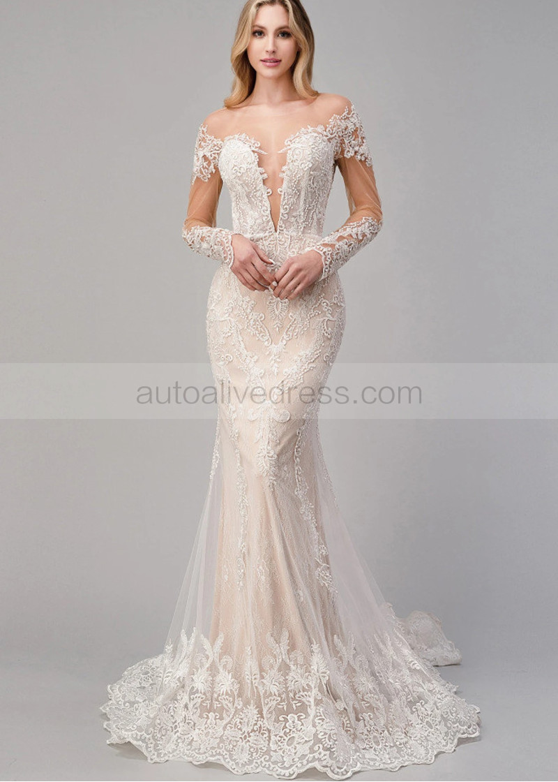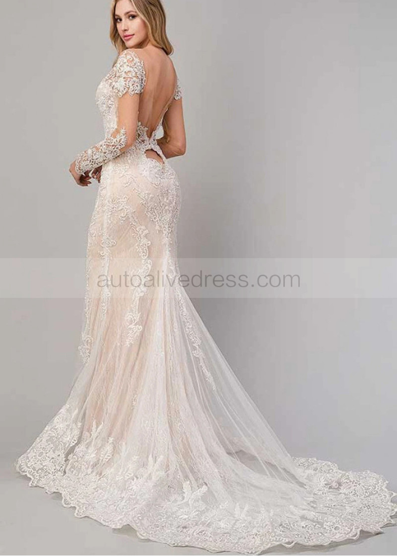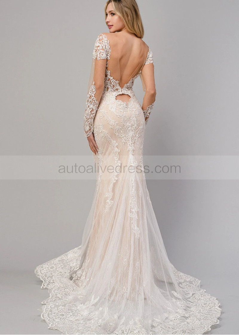 Ivory Lace Tulle Heart Shaped Back Scalloped Hem Wedding Dress