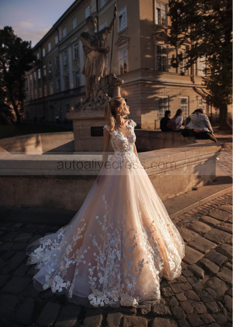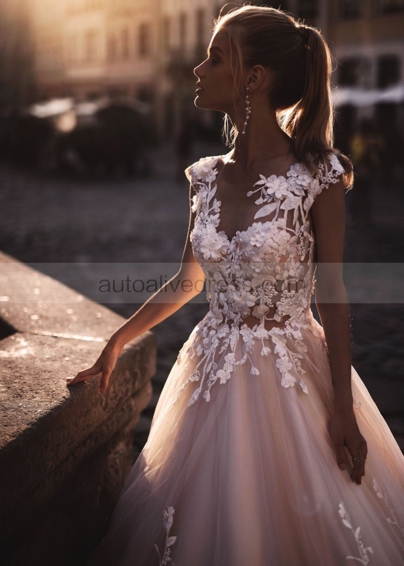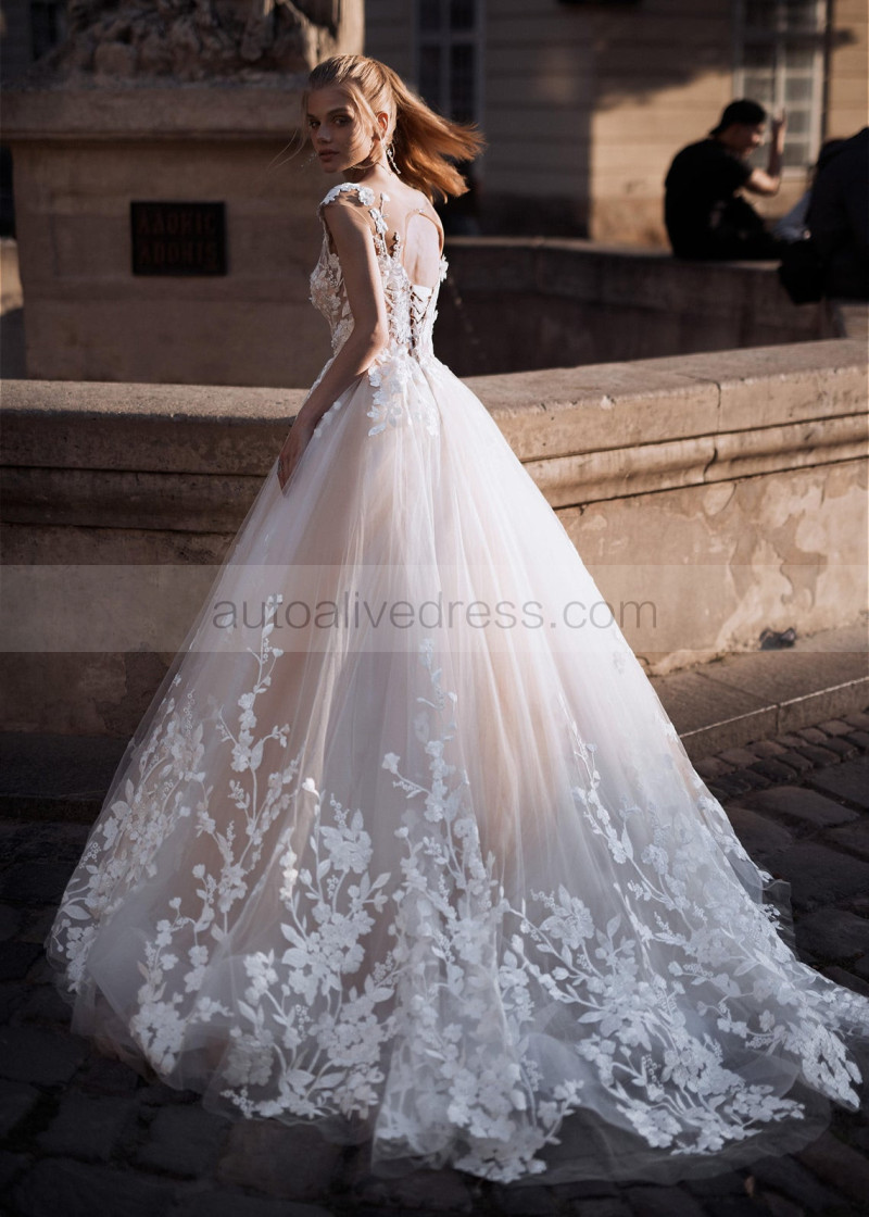 Ivory Lace Tulle Keyhole Back Corset Wedding Dress
