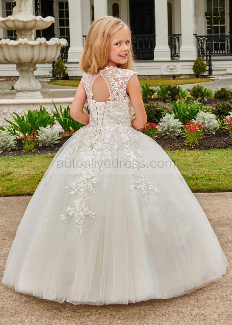 Ivory Lace Tulle Keyhole Back Flower Girl Dress For Wedding