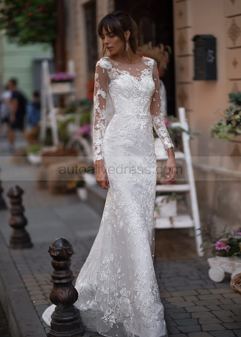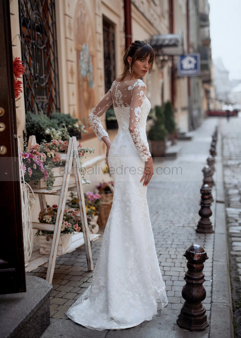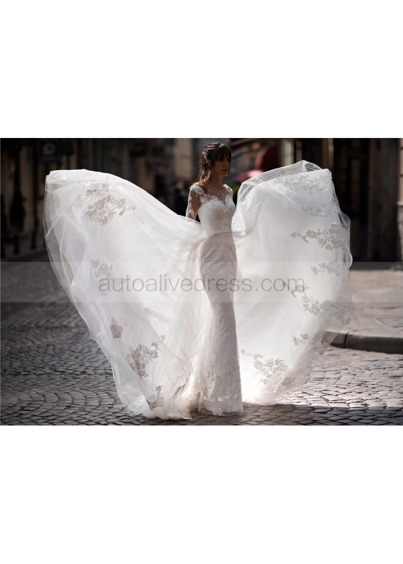 Ivory Lace Tulle Modern Wedding Dress With Detachable Train
