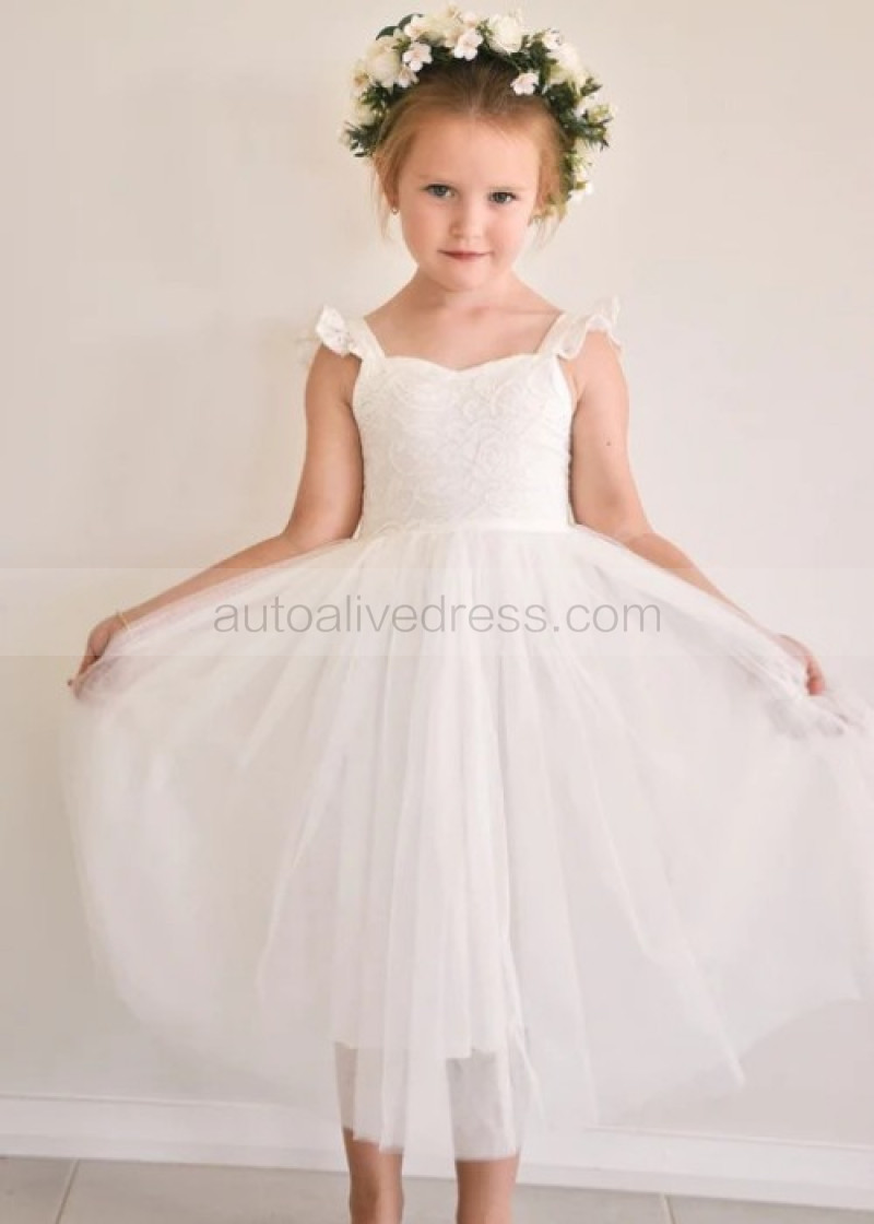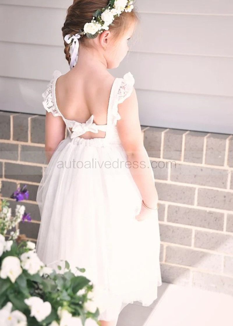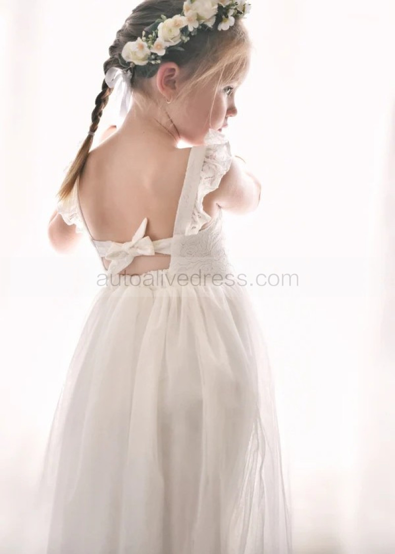 Ivory Lace Tulle Open Back Flower Girl Dress