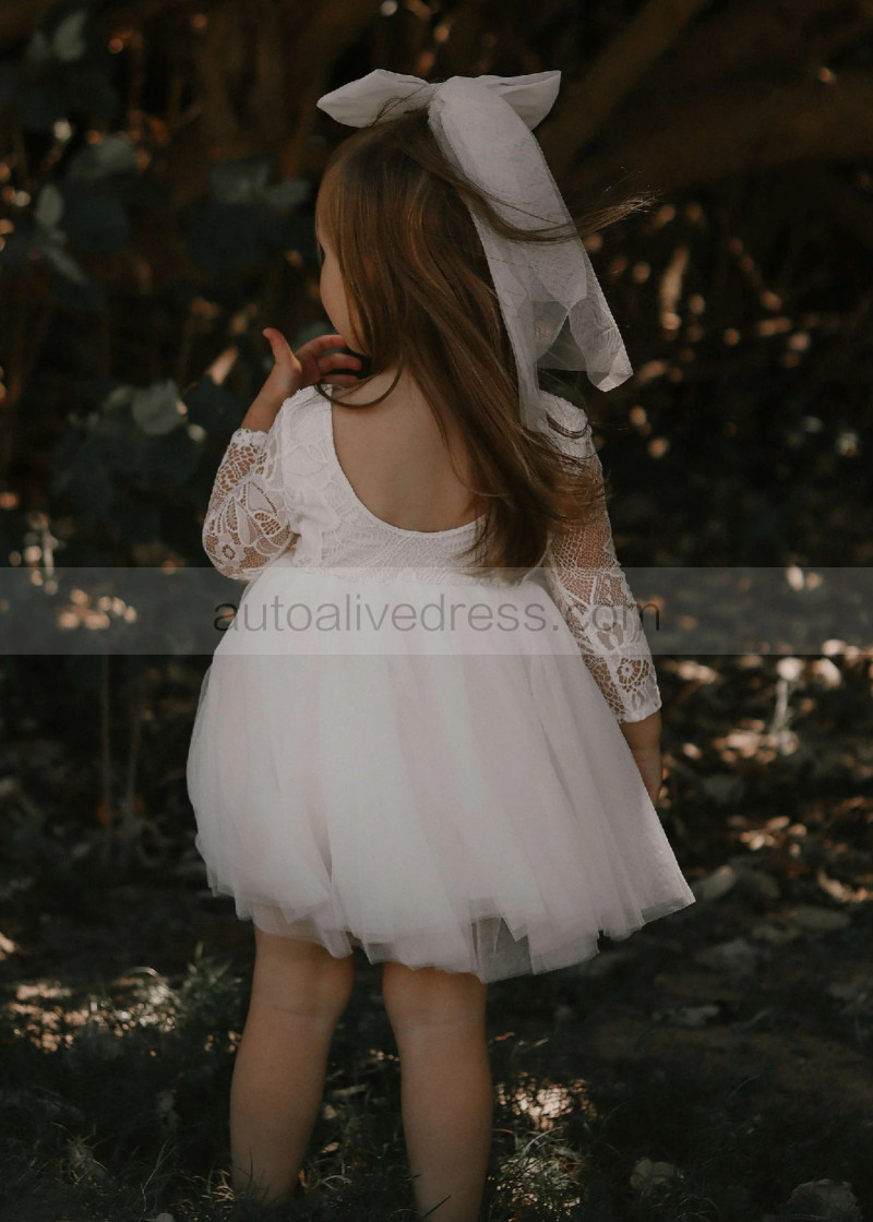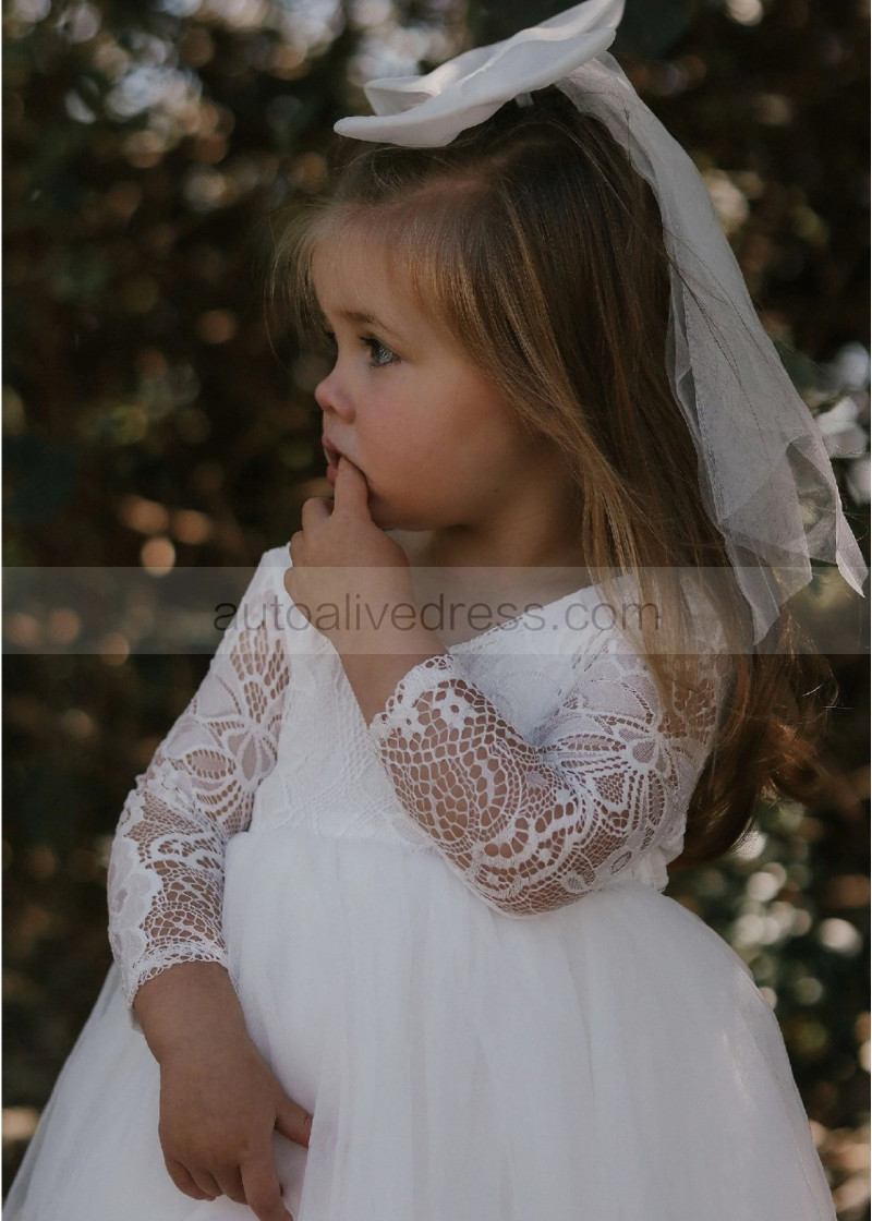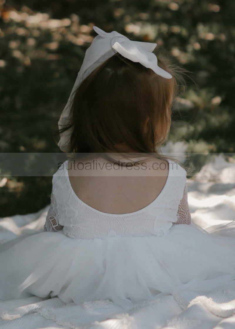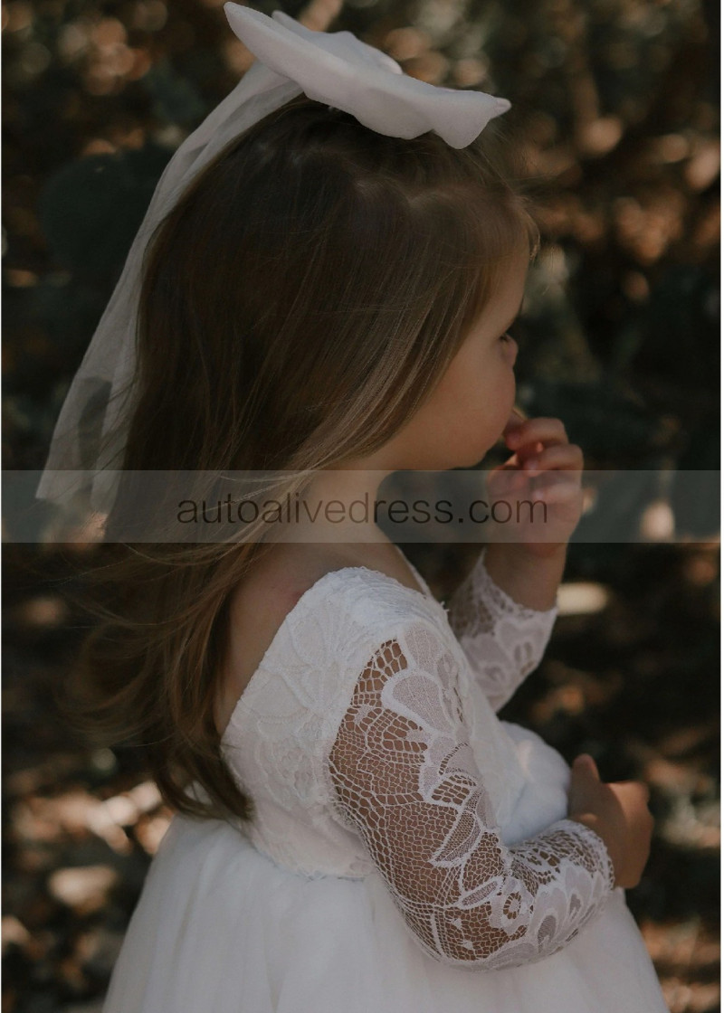 Ivory Lace Tulle Scoop Back Flower Girl Dress