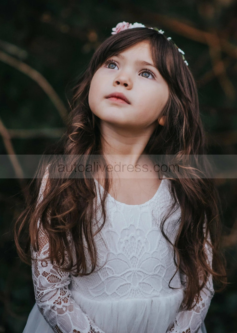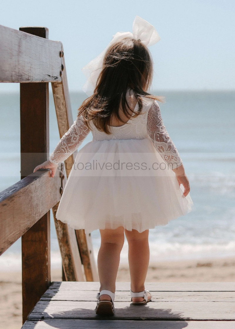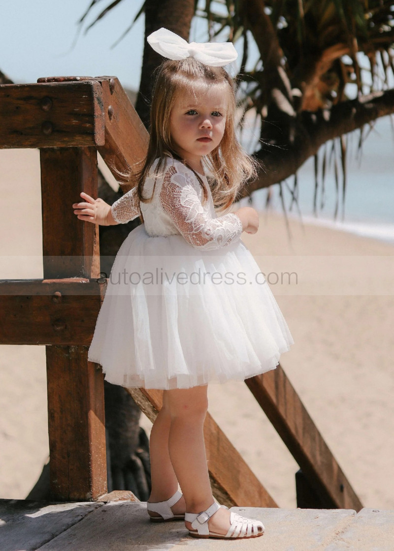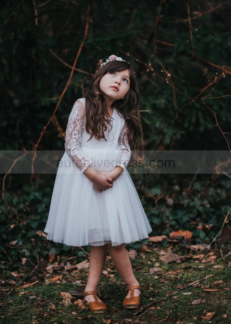 Ivory Lace Tulle Scoop Back Flower Girl Dress
