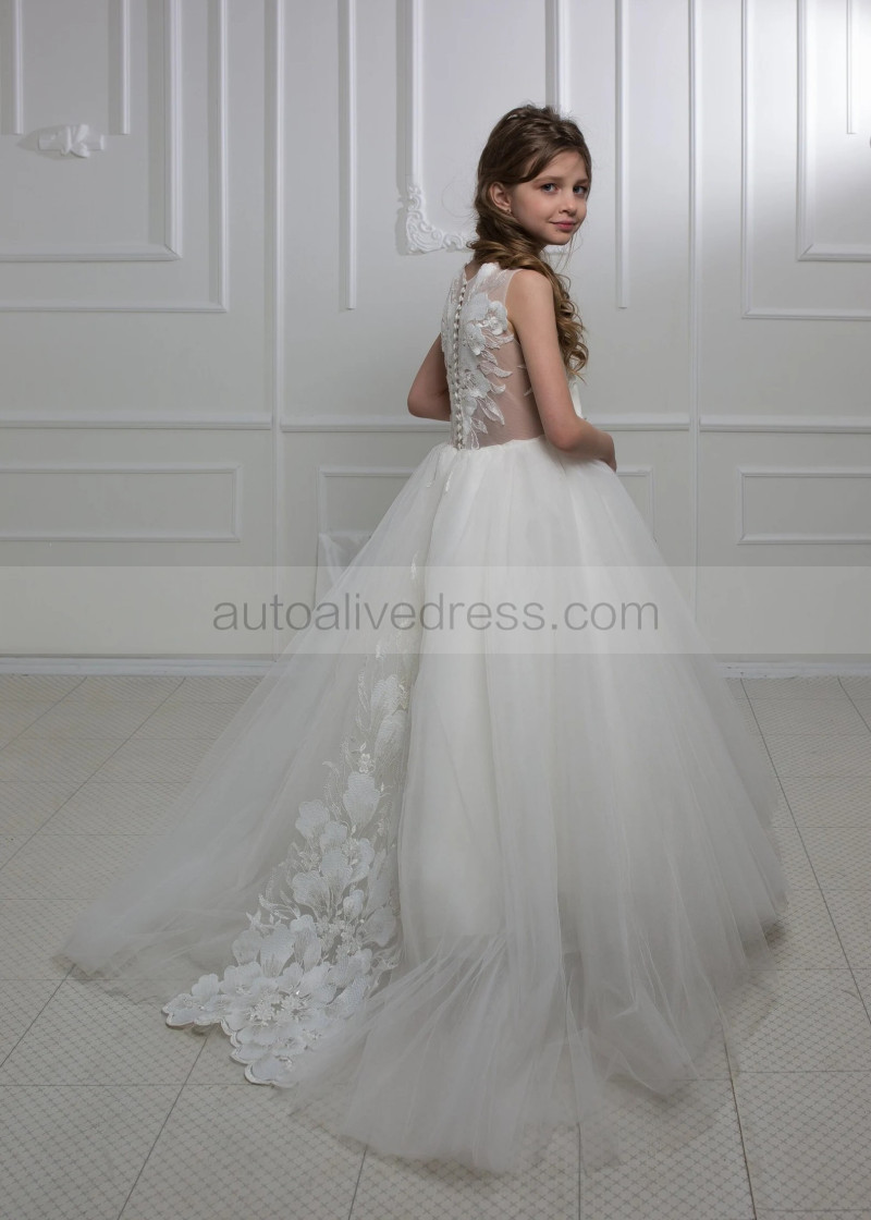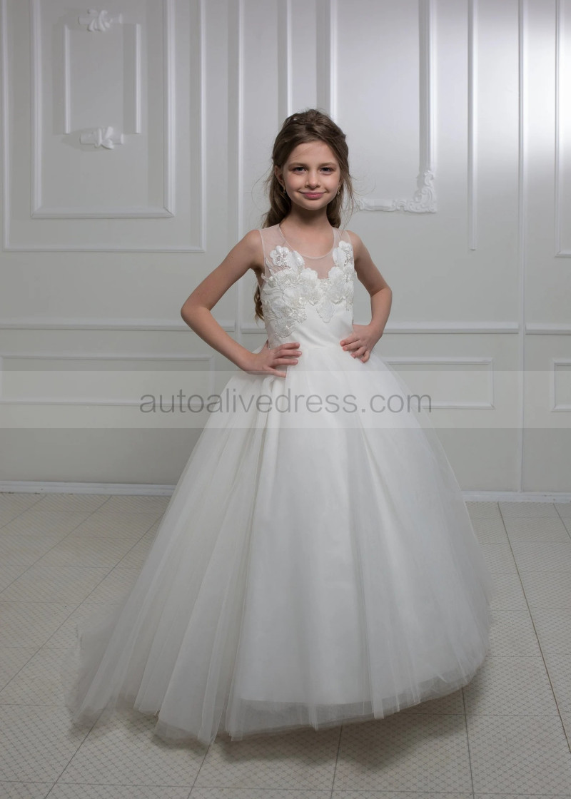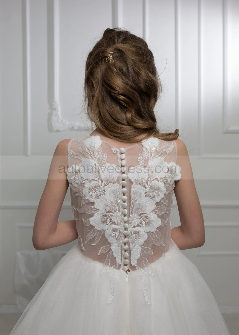 Ivory Lace Tulle Sheer Back Flower Girl Dress