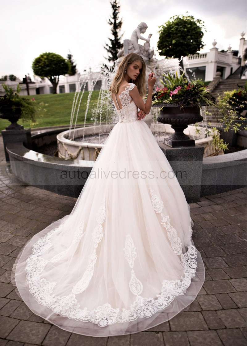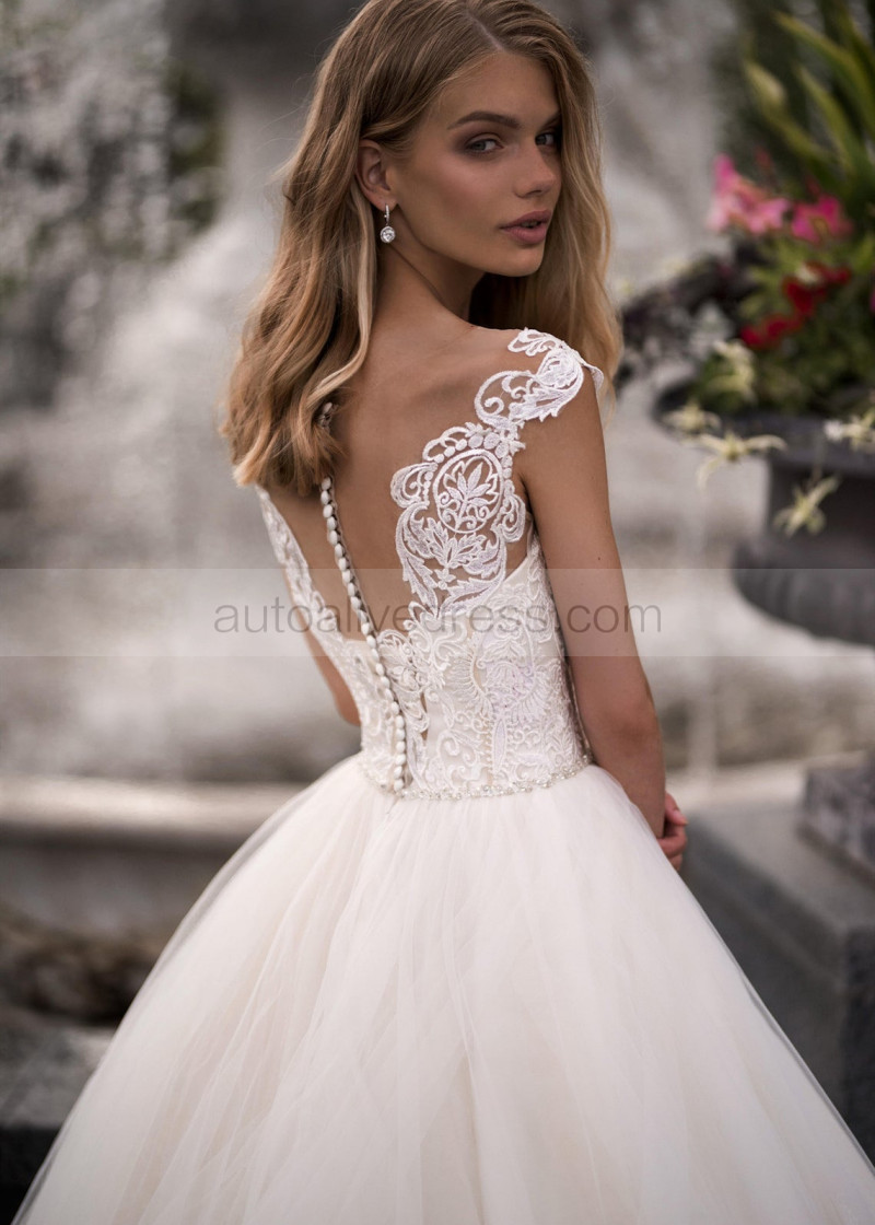 Ivory Lace Tulle Simple Princess Wedding Dress
