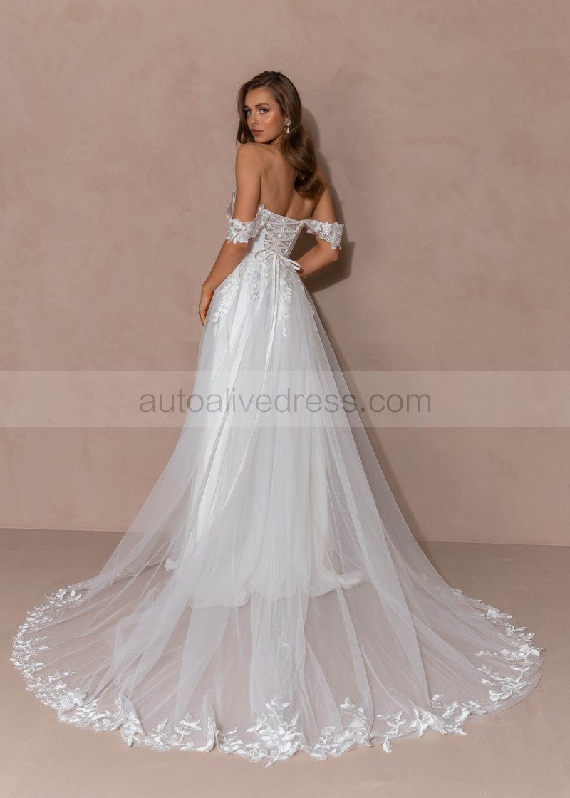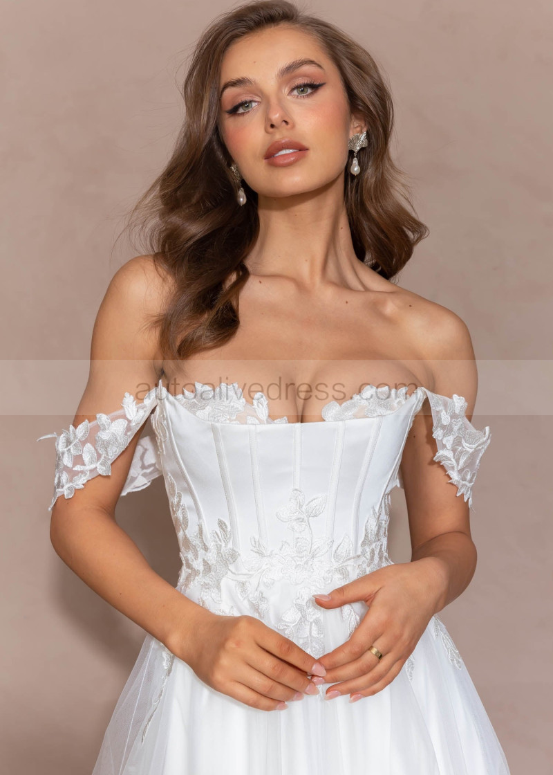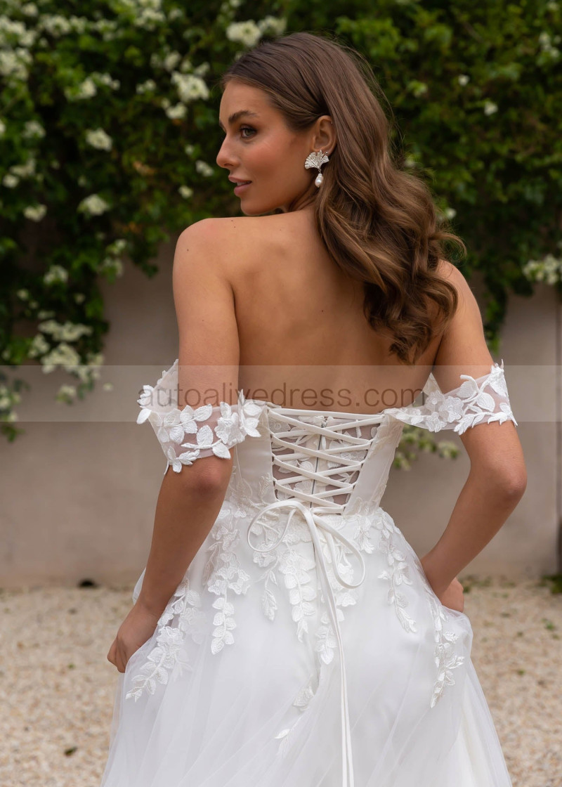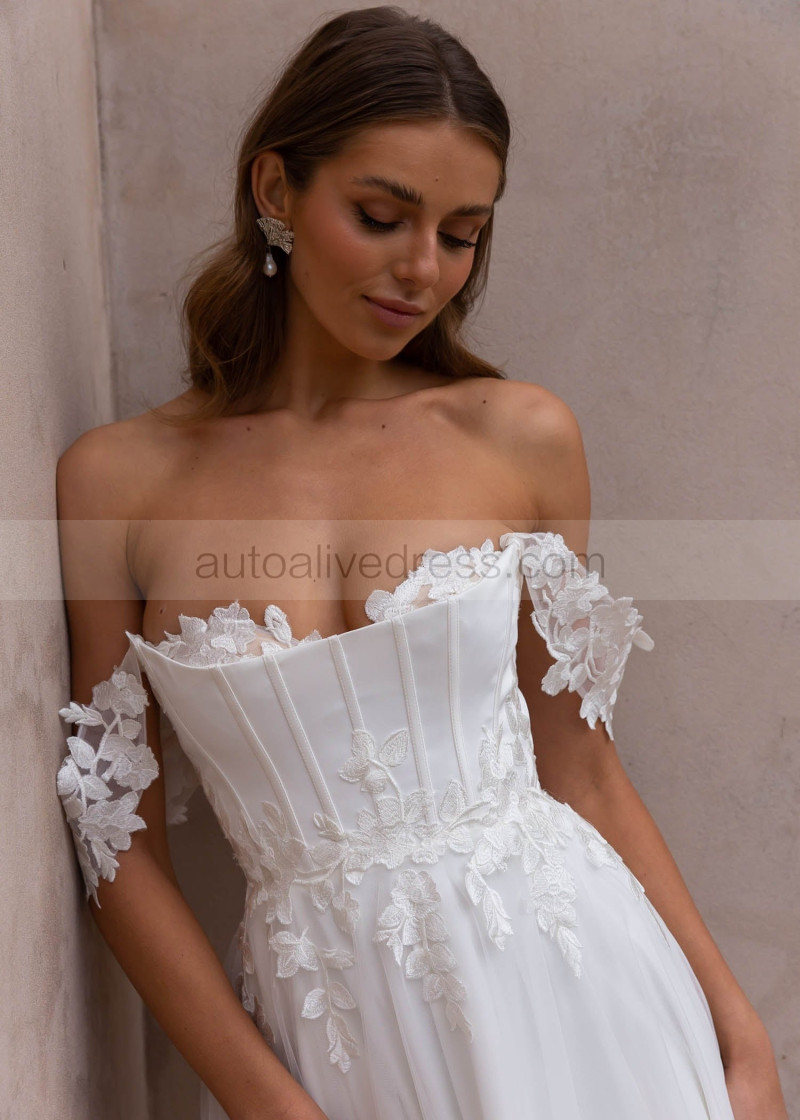 Ivory Lace Tulle Structured Wedding Dress With Detachable Straps