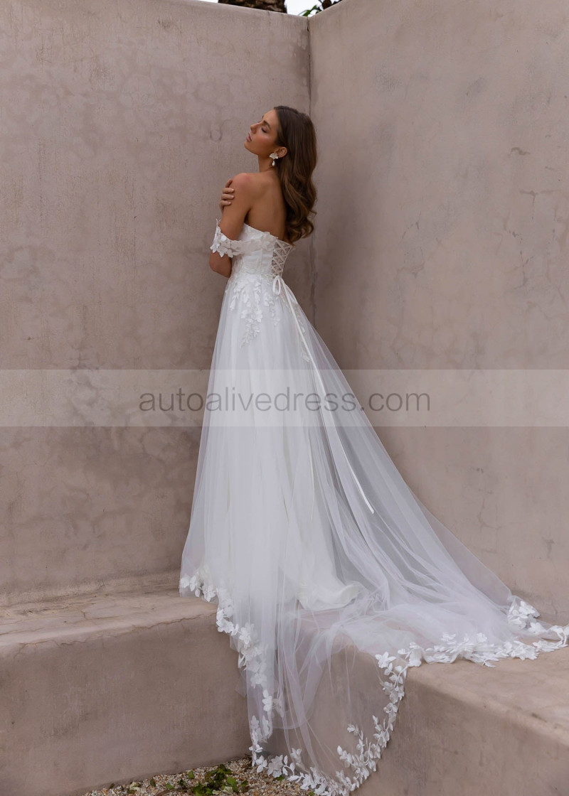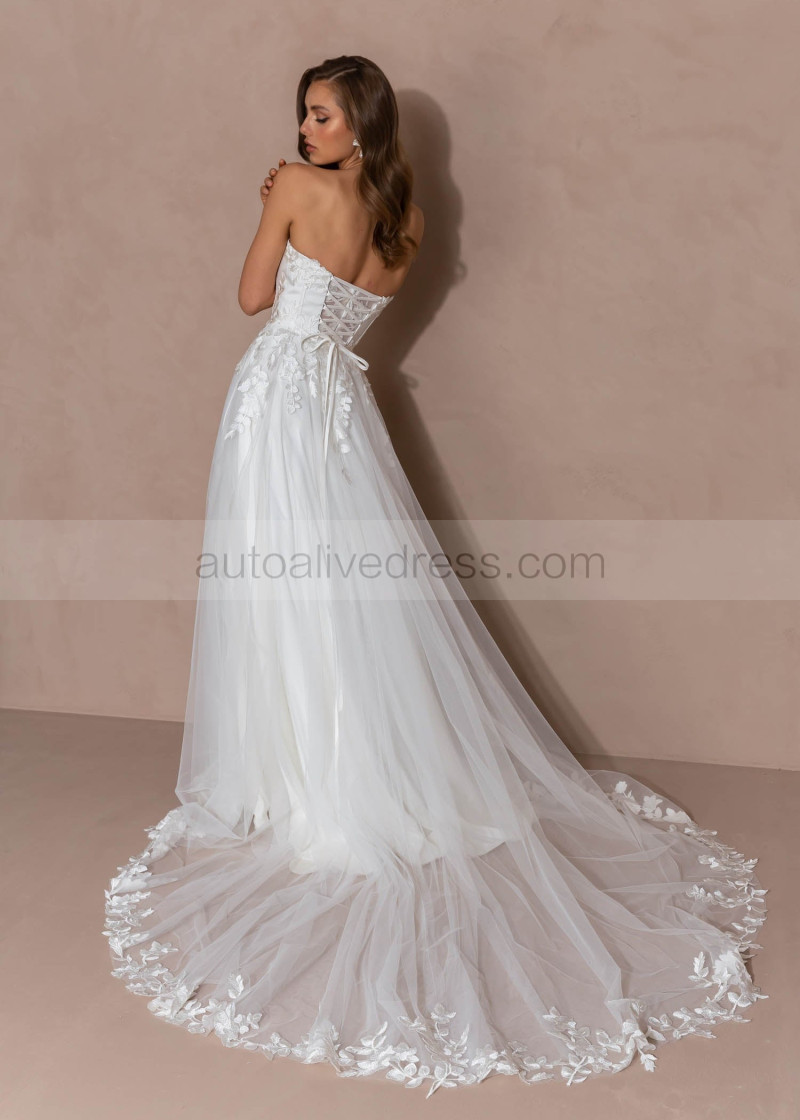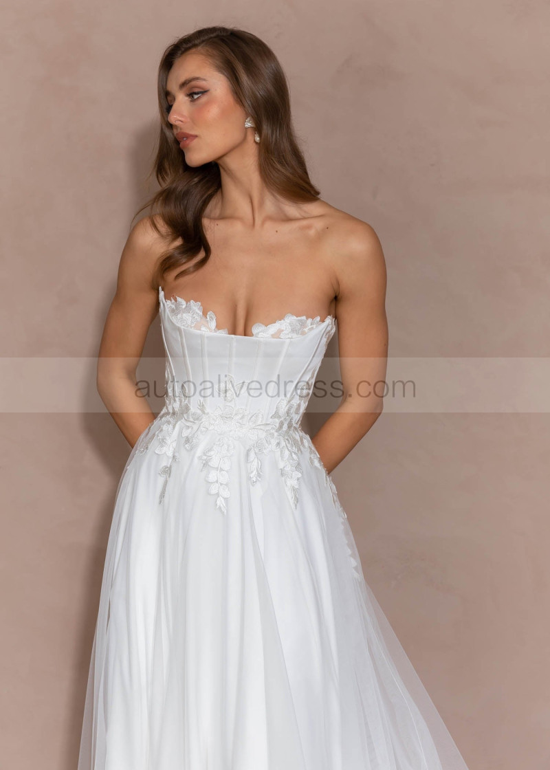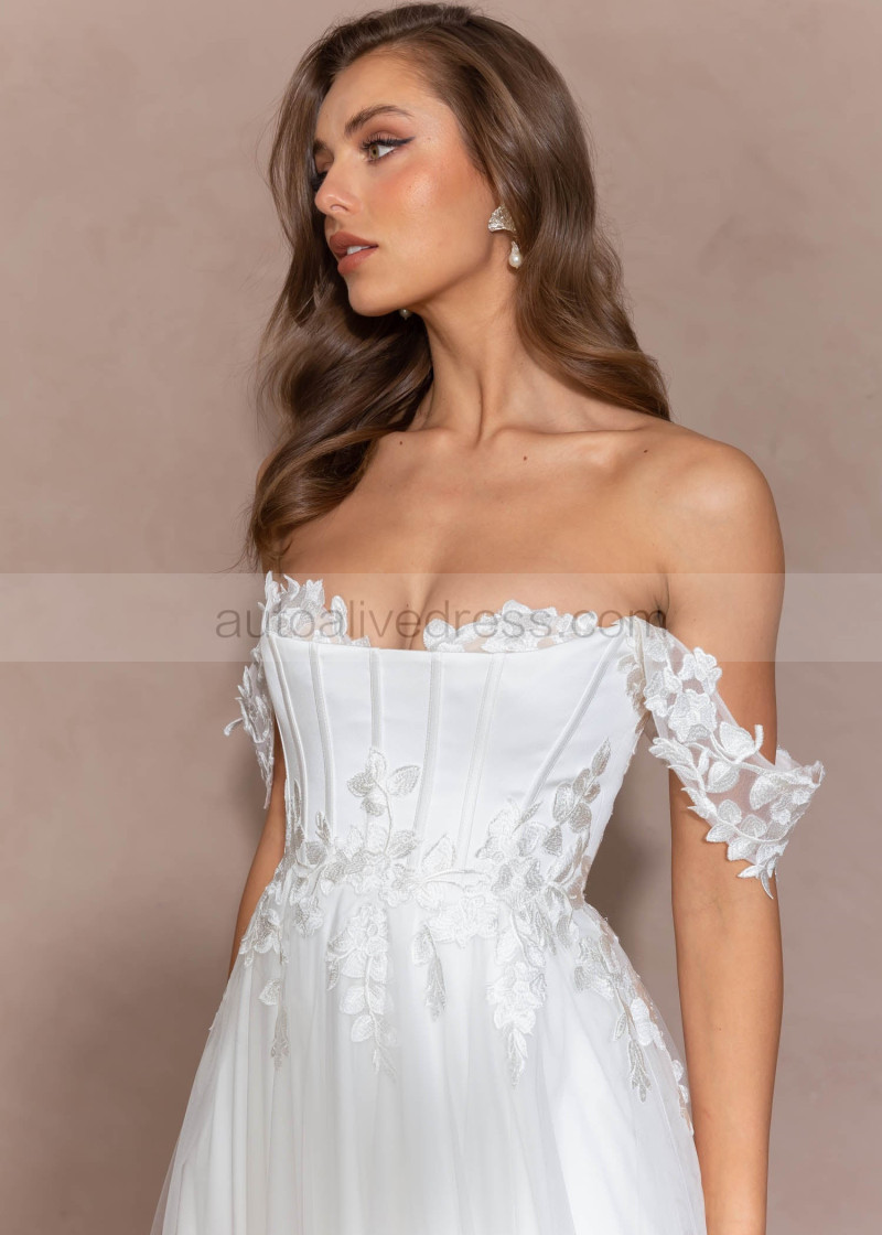 Ivory Lace Tulle Structured Wedding Dress With Detachable Straps