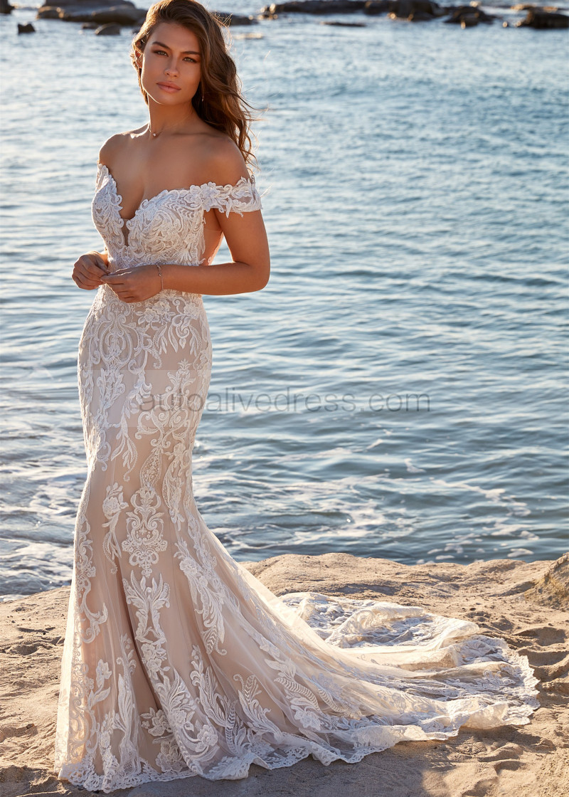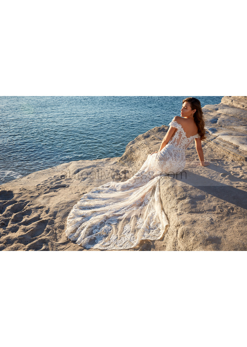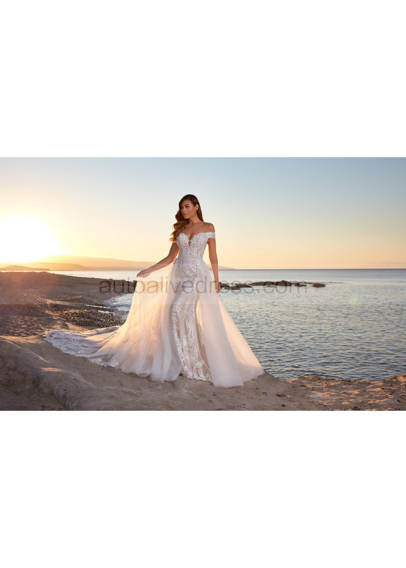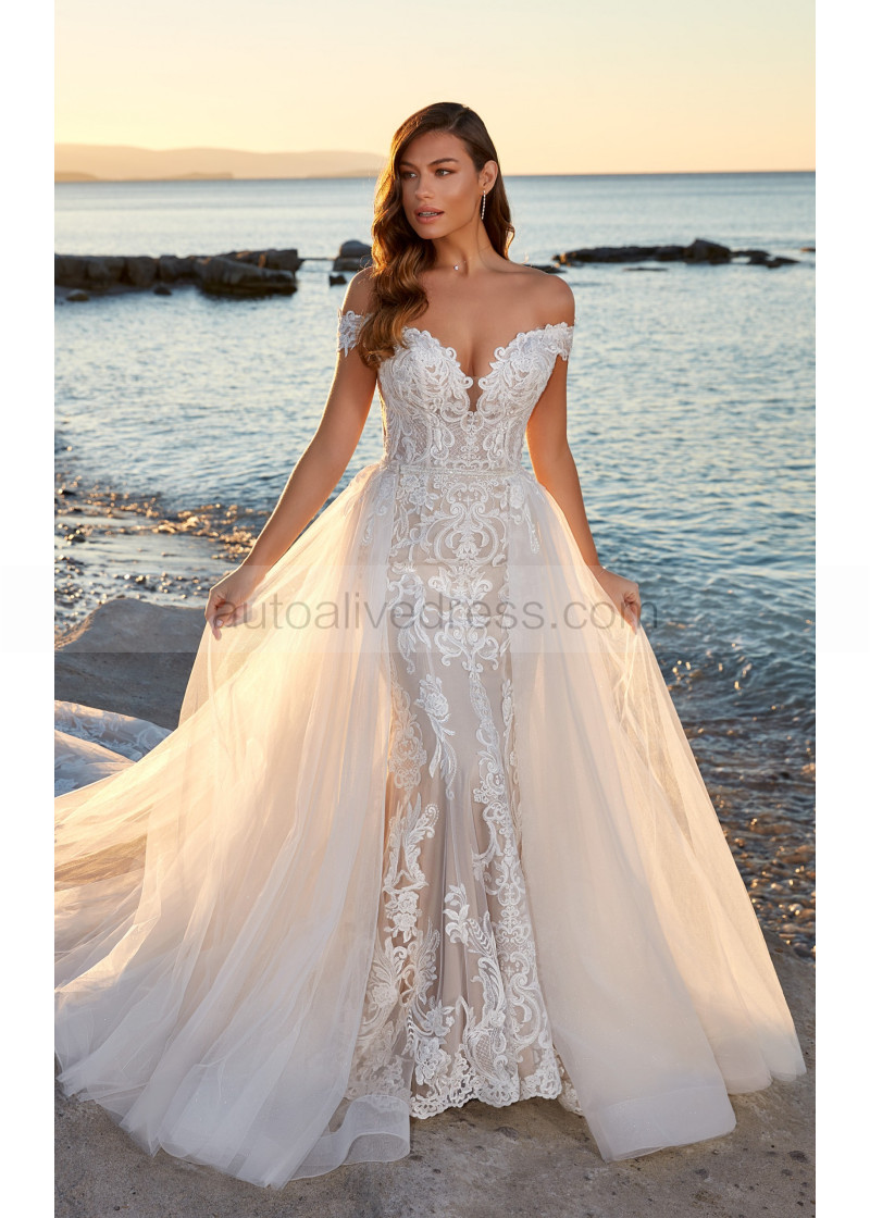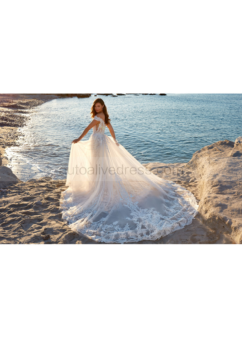 Ivory Lace Tulle Unusual Wedding Dress With Removable Train