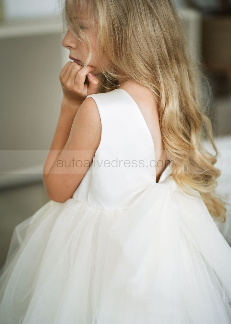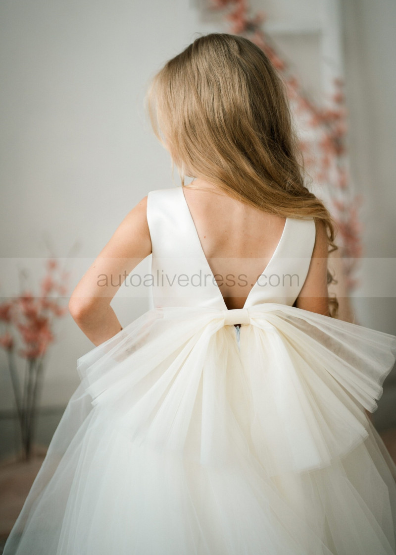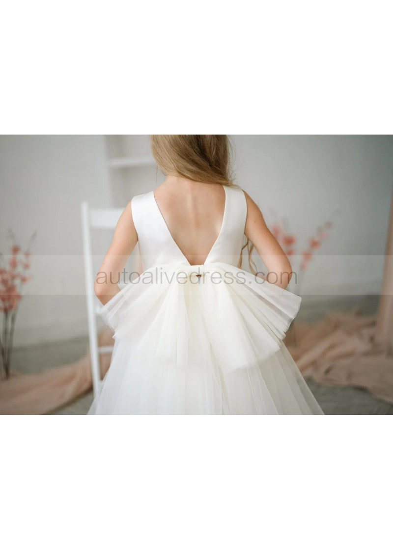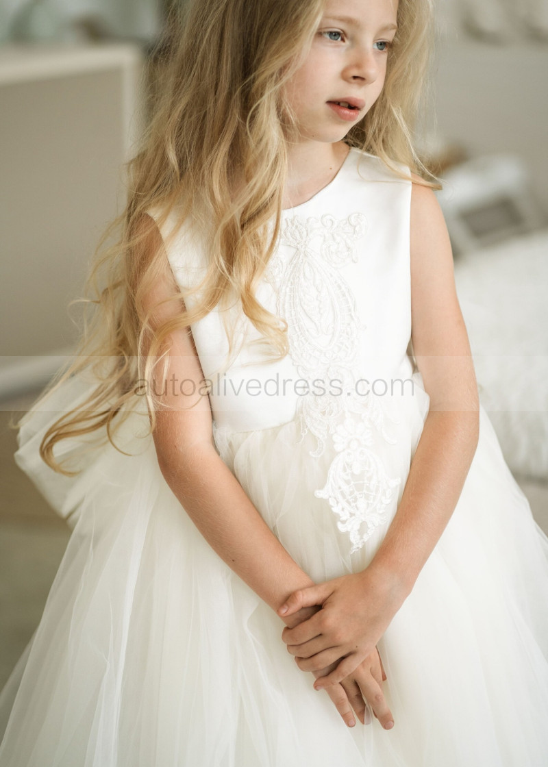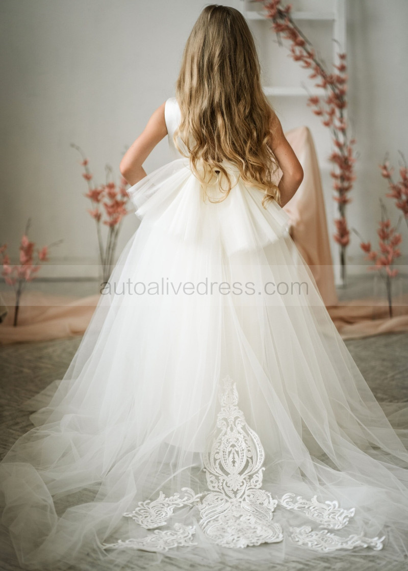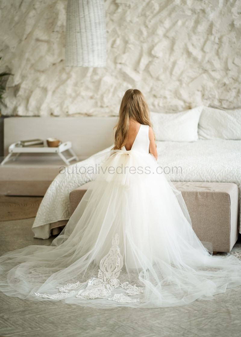 Ivory Lace Tulle V Back Flower Girl Dress With Detachable Train