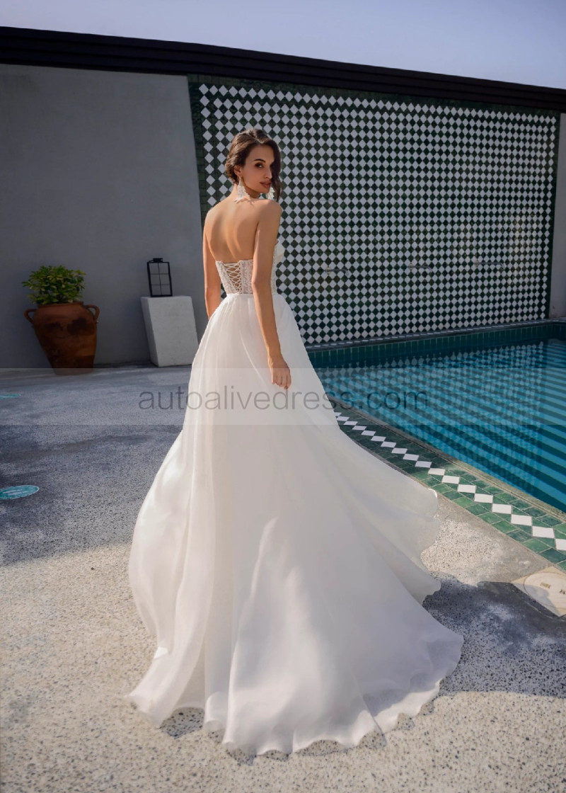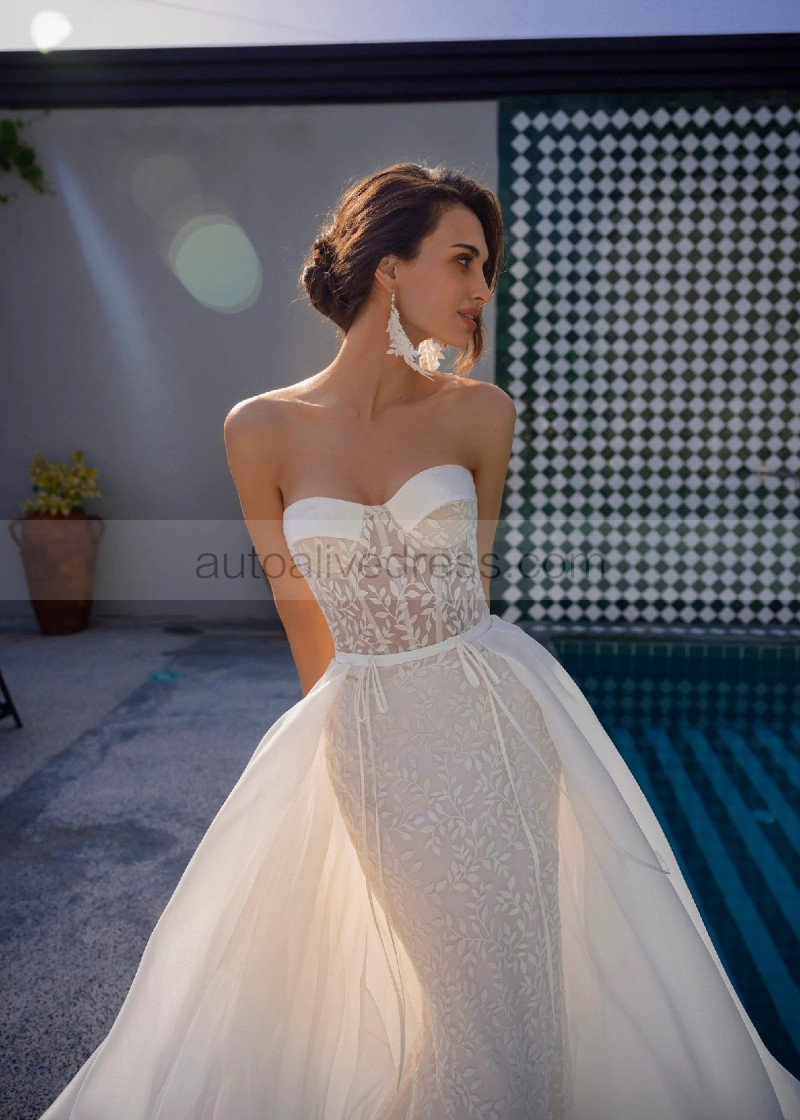 Ivory Lace Wedding Dress With Detachable Organza Train
