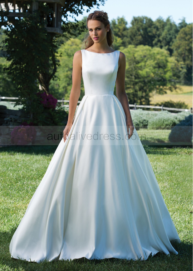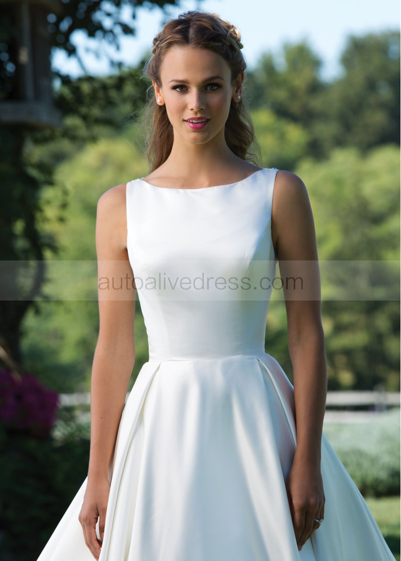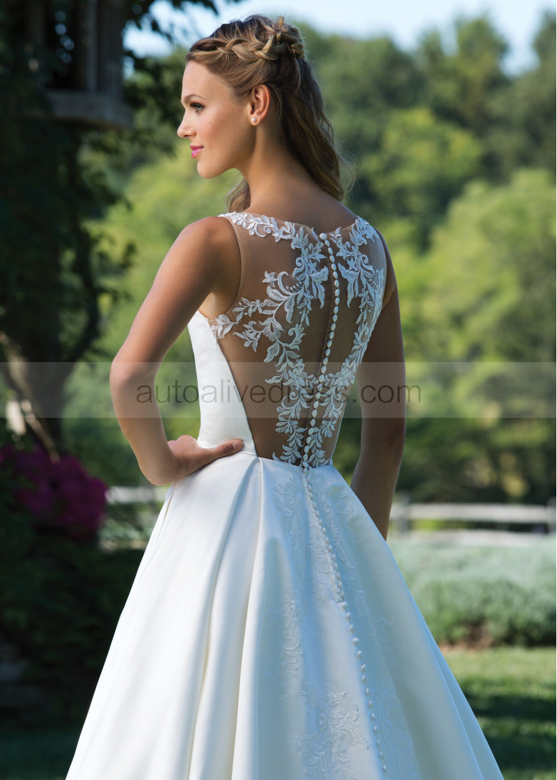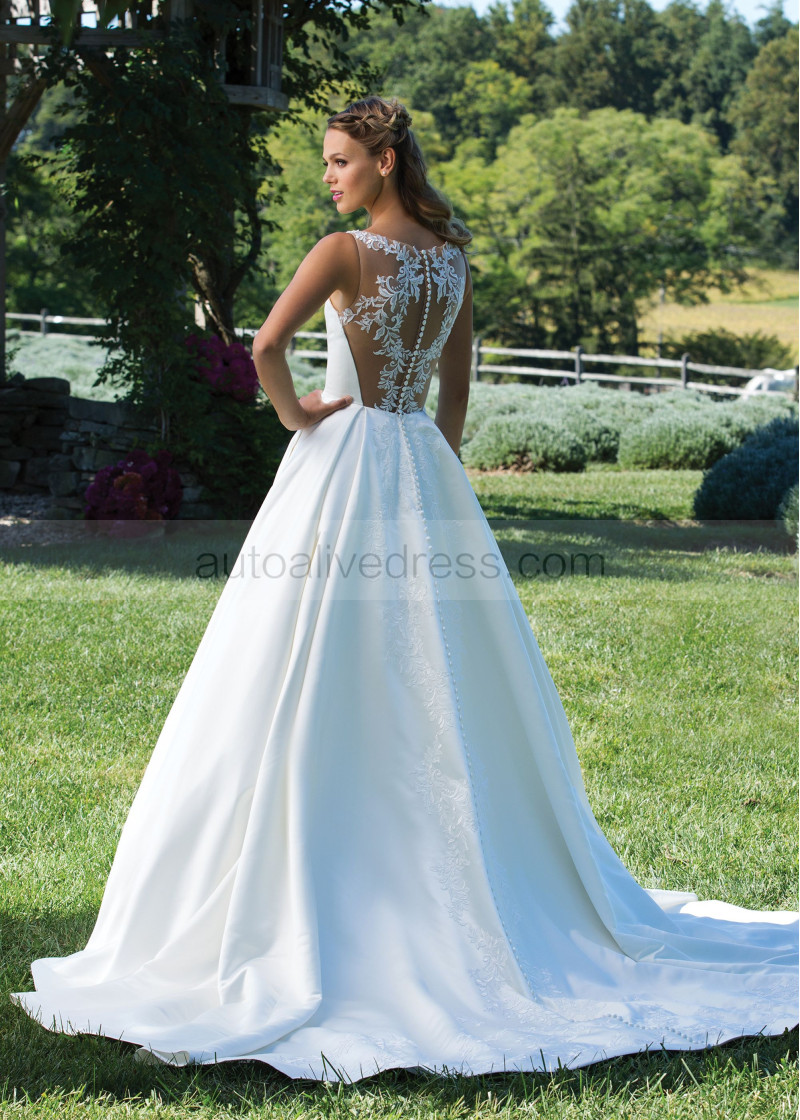 Ivory Matte Satin Lace Wedding Dress With Box Pleats
