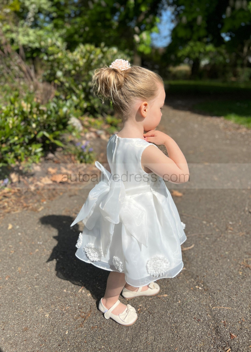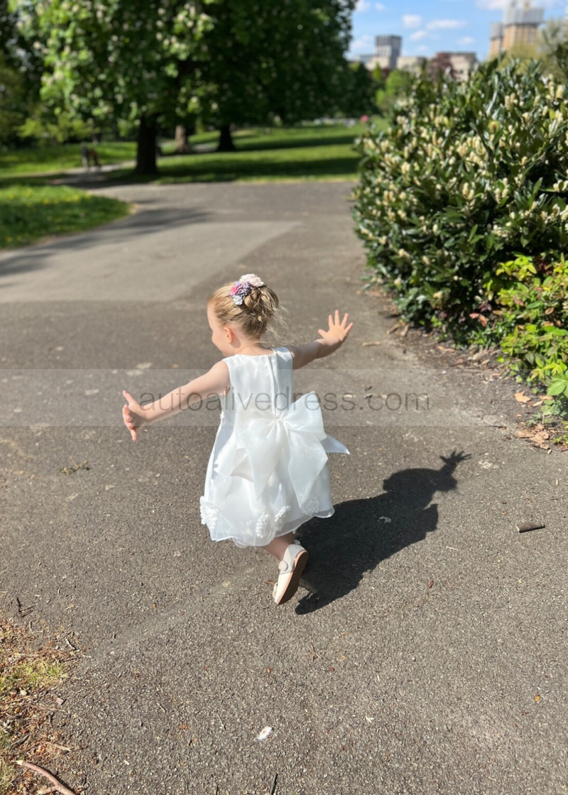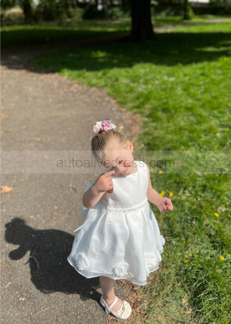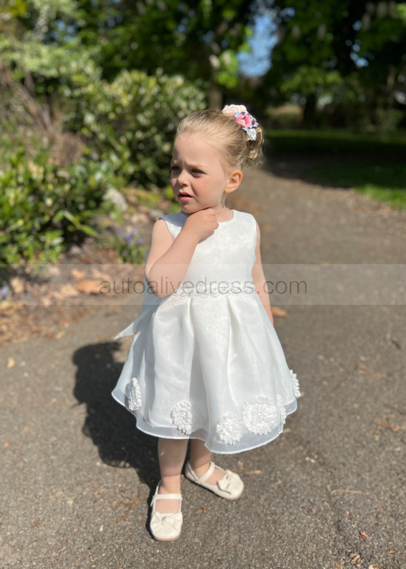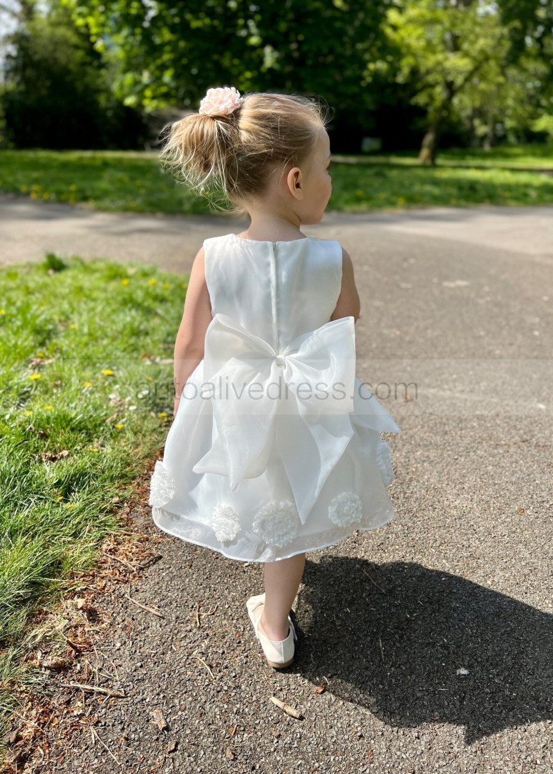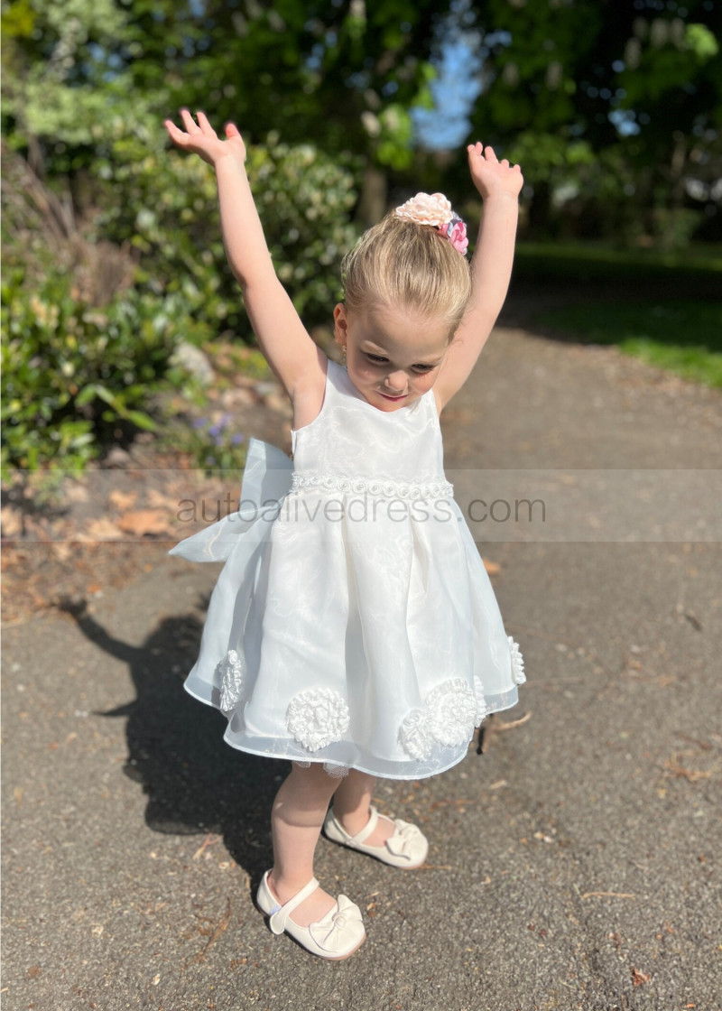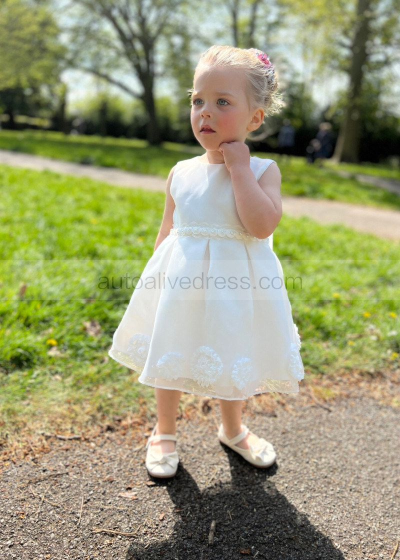 Ivory Organza Knee Length Cute Flower Girl Dress