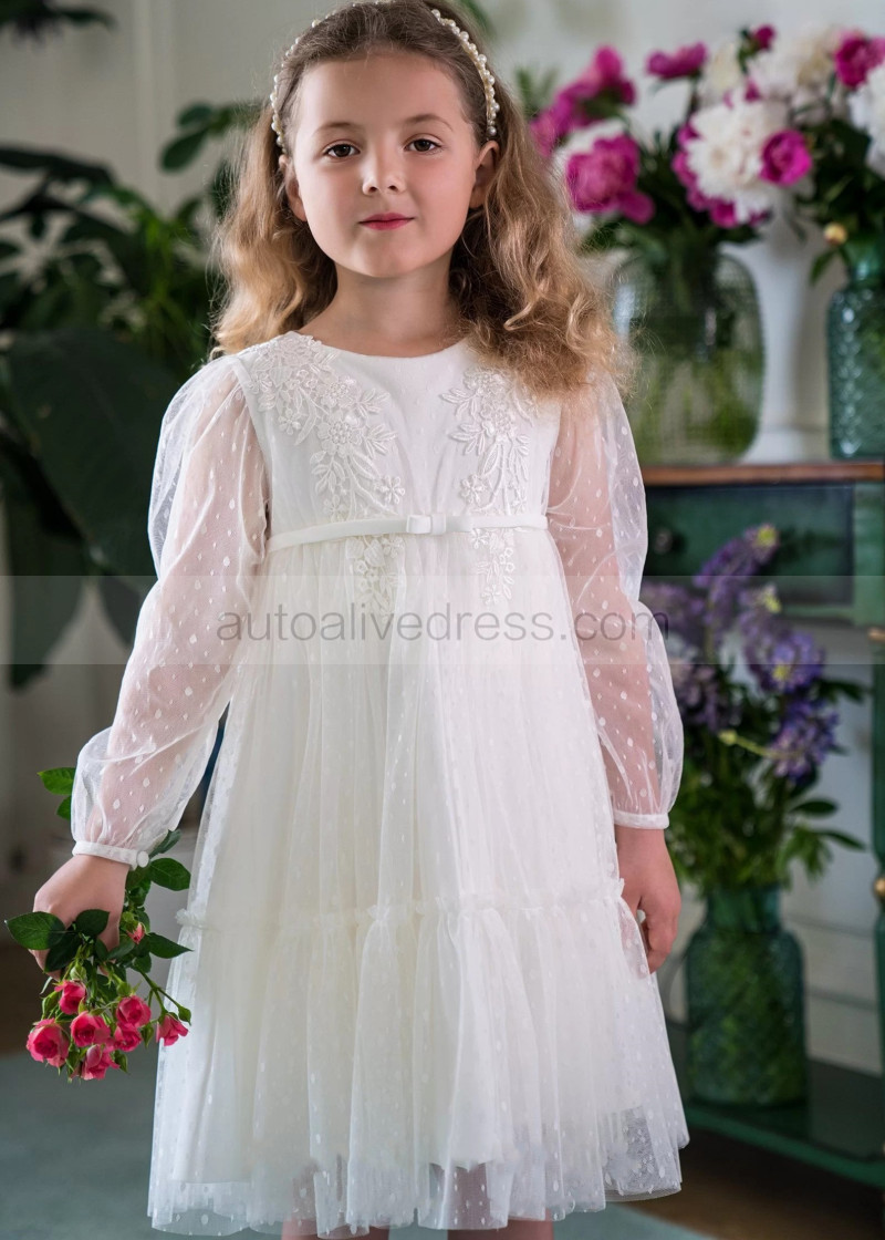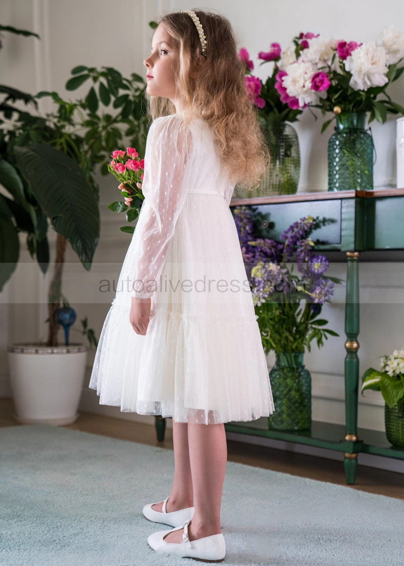 Ivory Polka Dots Tulle Lace Cute Flower Girl Dress