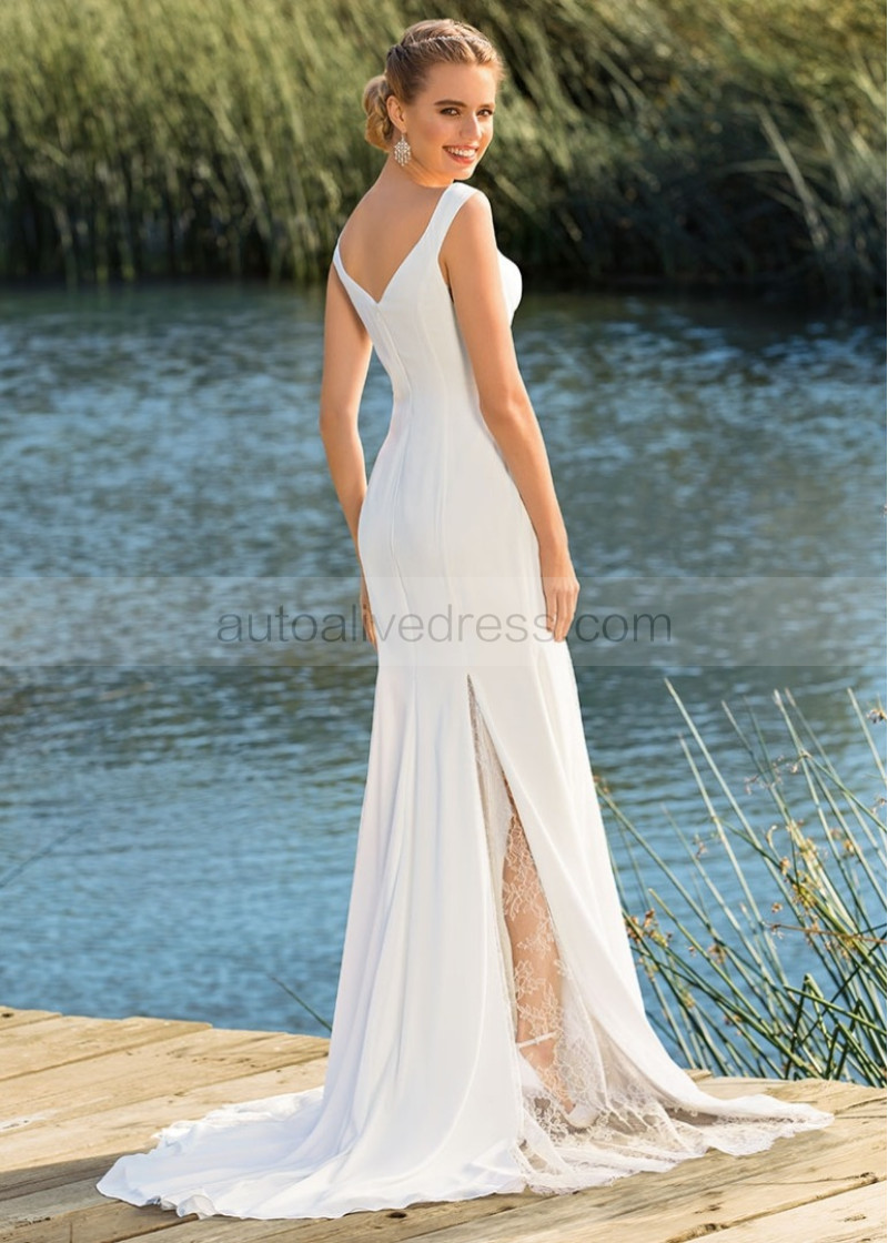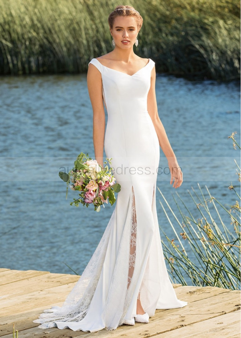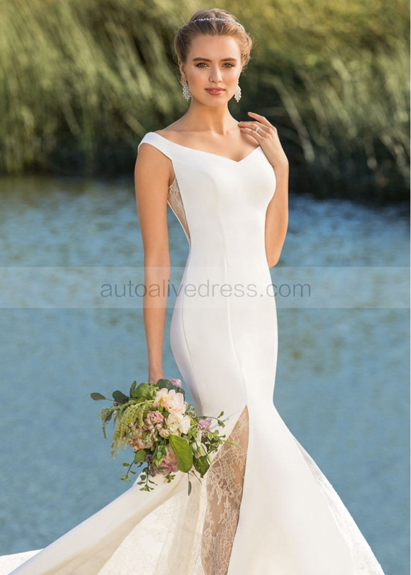 Ivory Satin Minimalist Wedding Dress With Lace Insert