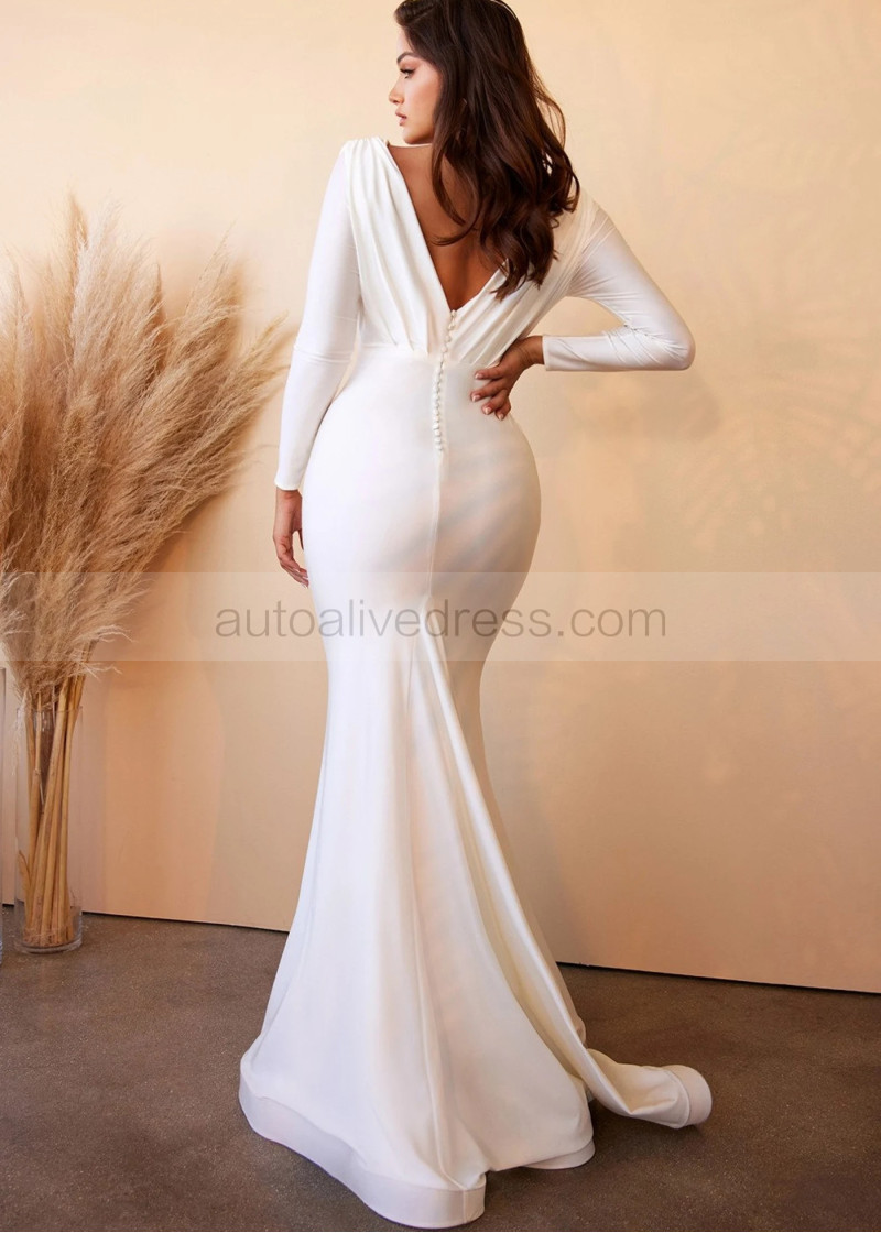 Ivory Satin Modest Wedding Dress With Horsehair Hem