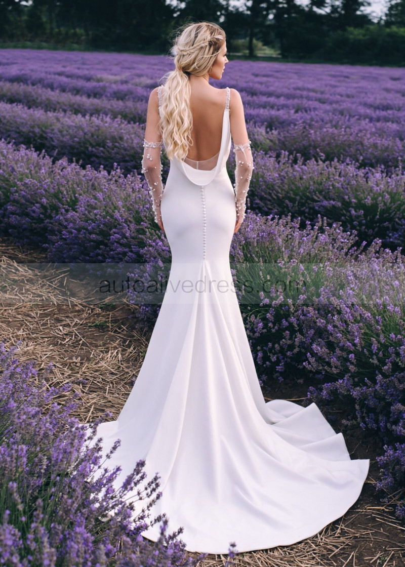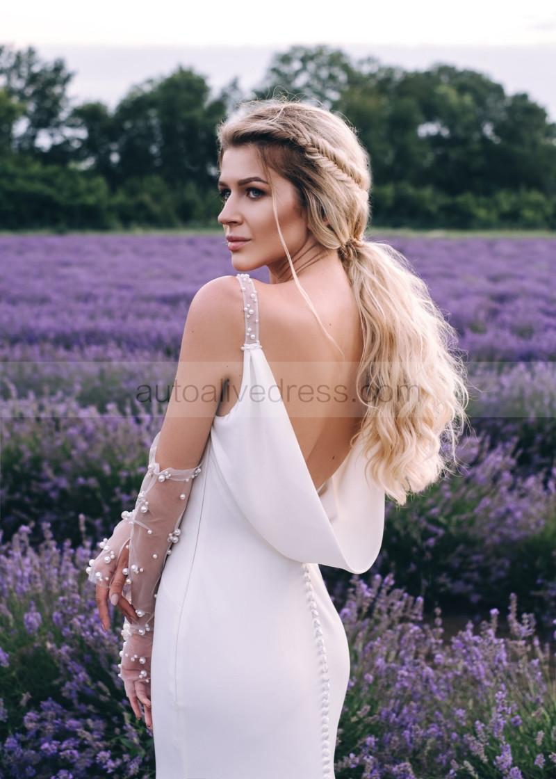 Ivory Satin Open Back Chic Wedding Dress With Sleeves