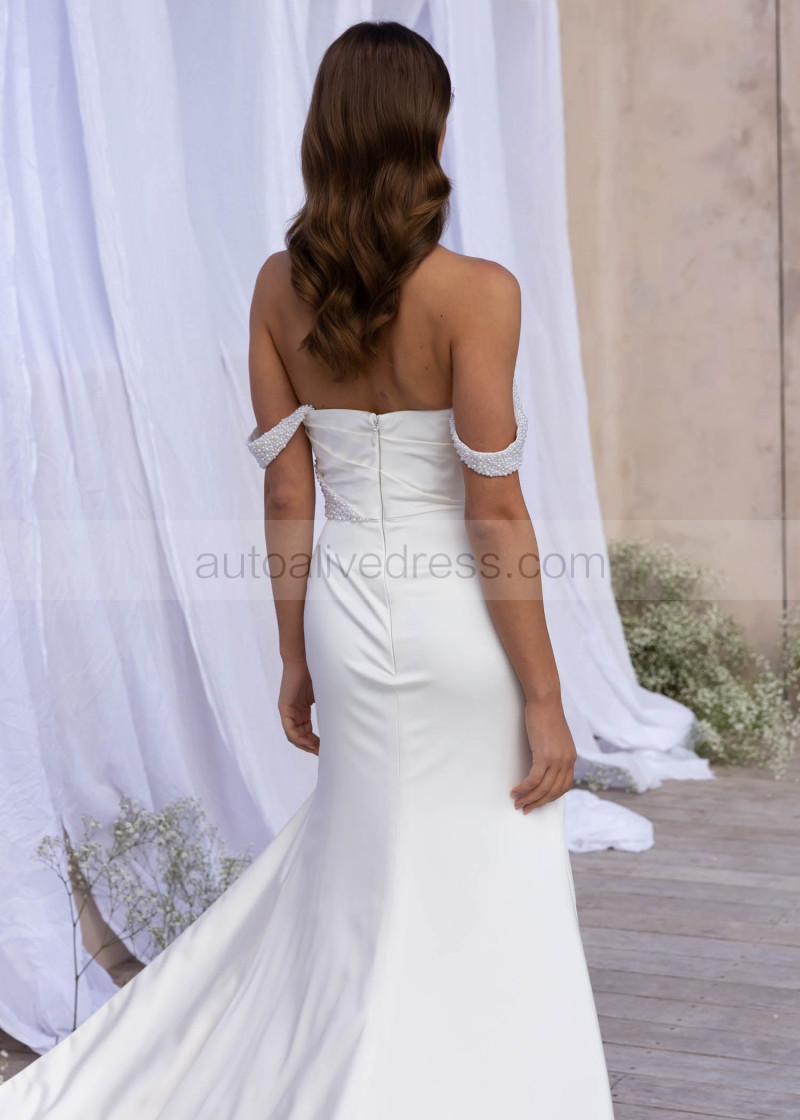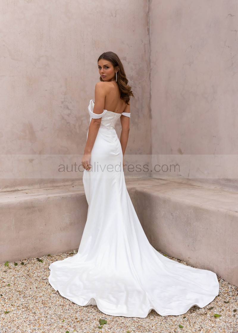 Ivory Satin Pearls Embellished Wedding Dress With Detachable Straps