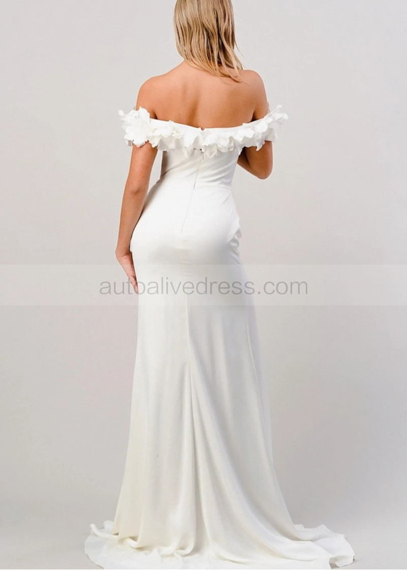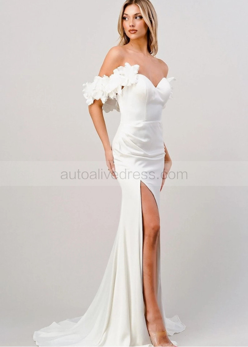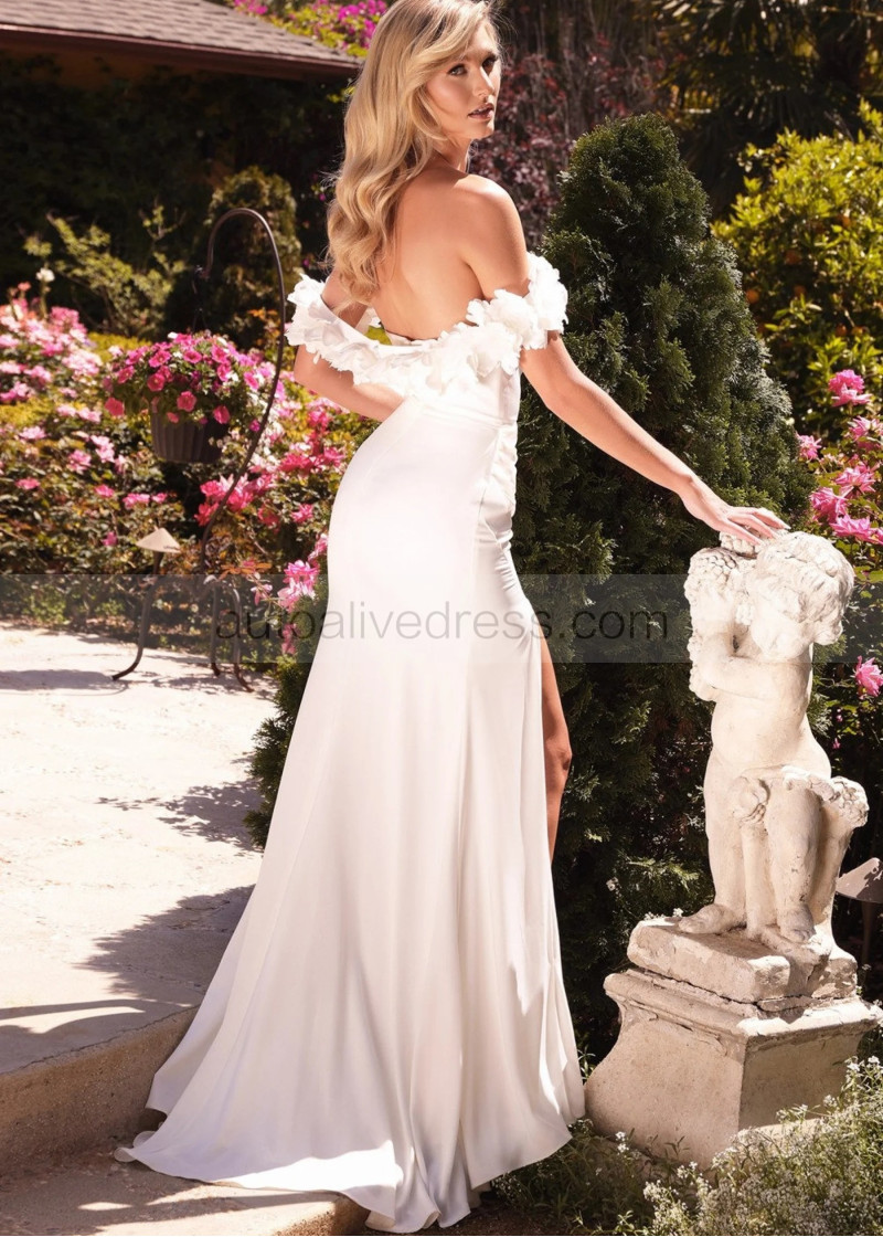 Ivory Satin Side Slit Elegant Wedding Dress